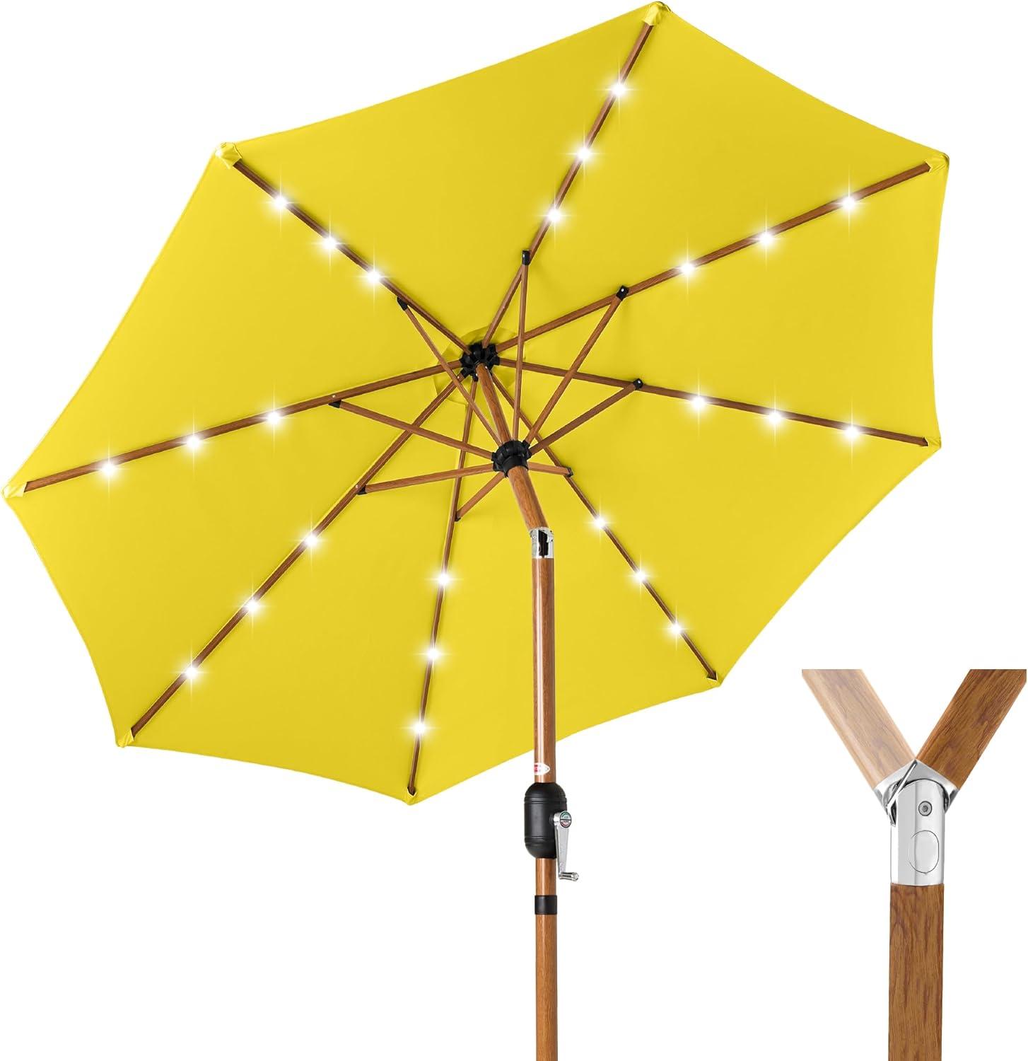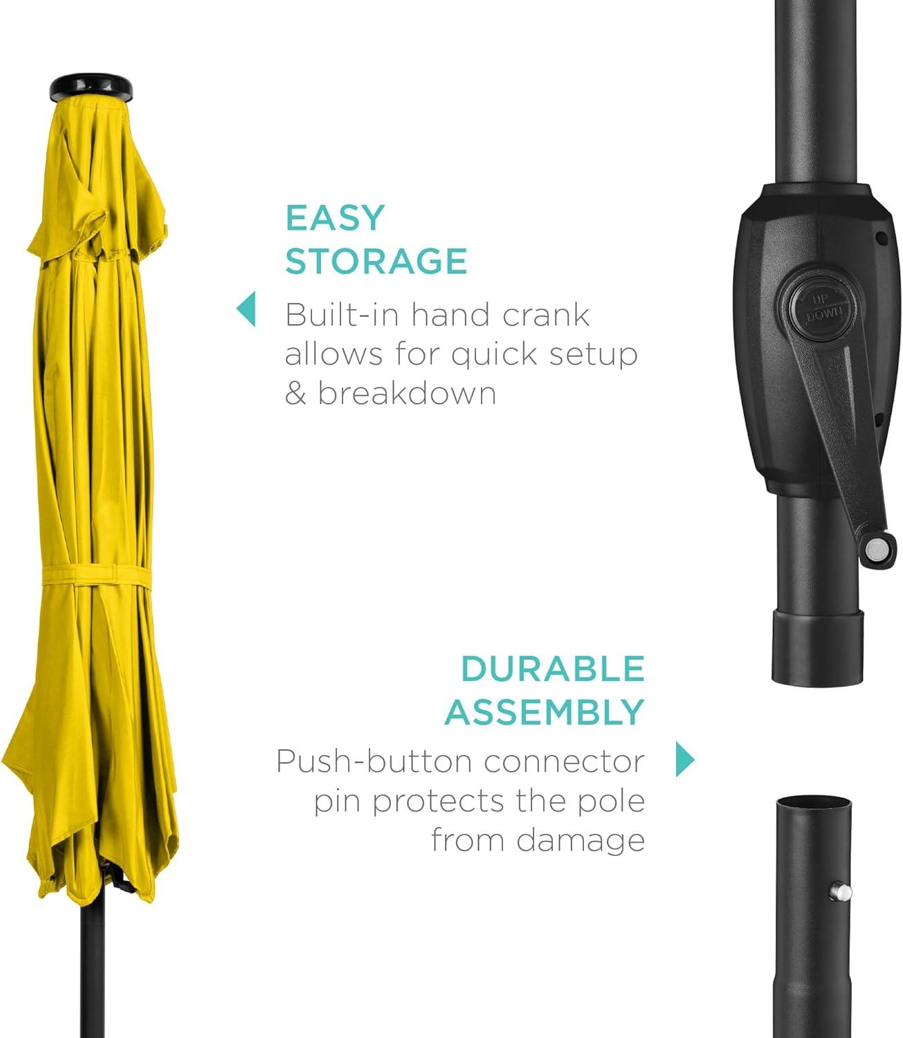 Best Choice Products 10ft Solar Polyester LED Lighted Patio Umbrella w/Tilt Adjustment and UV-Resistant Fabric – Tan(Yellow)