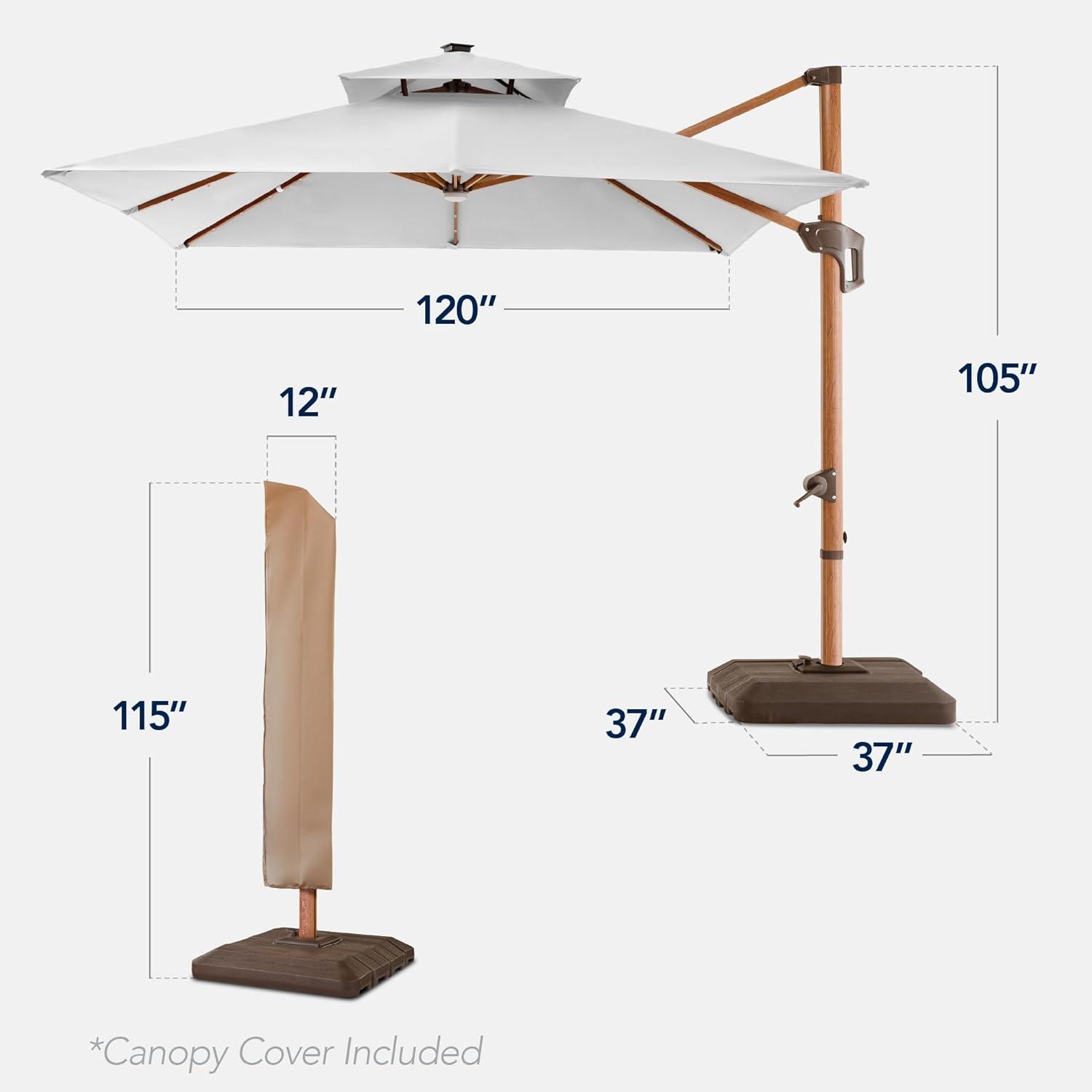 Best Choice Products 10ft Square Cantilever Patio Umbrella w/Base Included, Woodgrain Pattern Pole & Solar LED Lights, 360-Rotation, Offset Hanging Outdoor Shade – Sky Blue(Fog Gray)