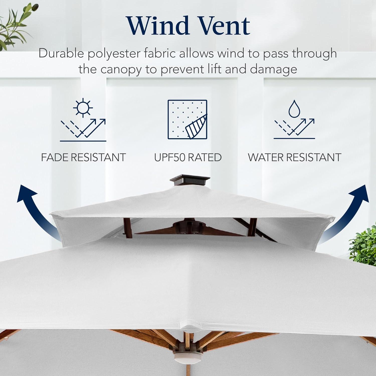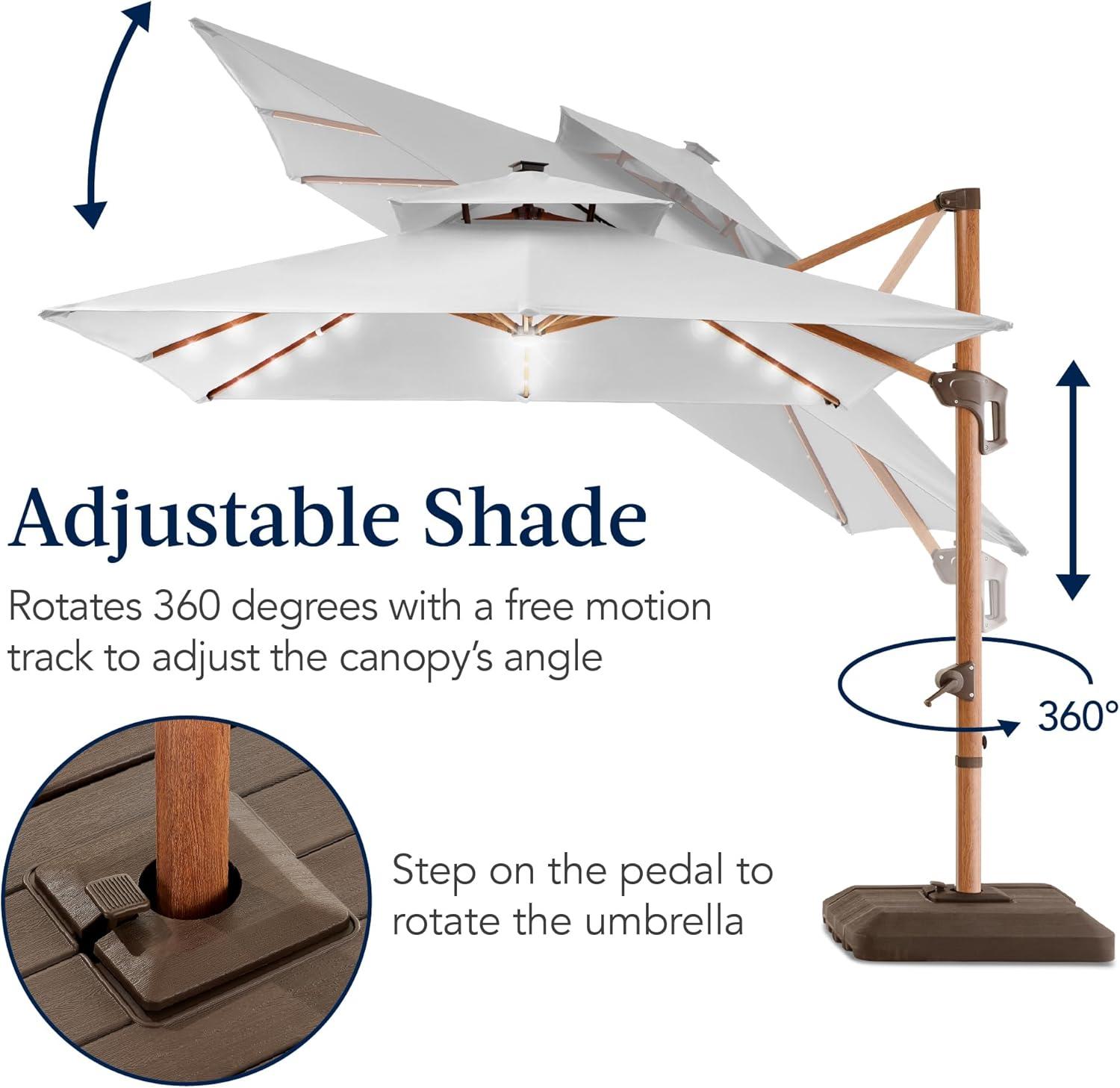 Best Choice Products 10ft Square Cantilever Patio Umbrella w/Base Included, Woodgrain Pattern Pole & Solar LED Lights, 360-Rotation, Offset Hanging Outdoor Shade - Sky Blue(Fog Gray)