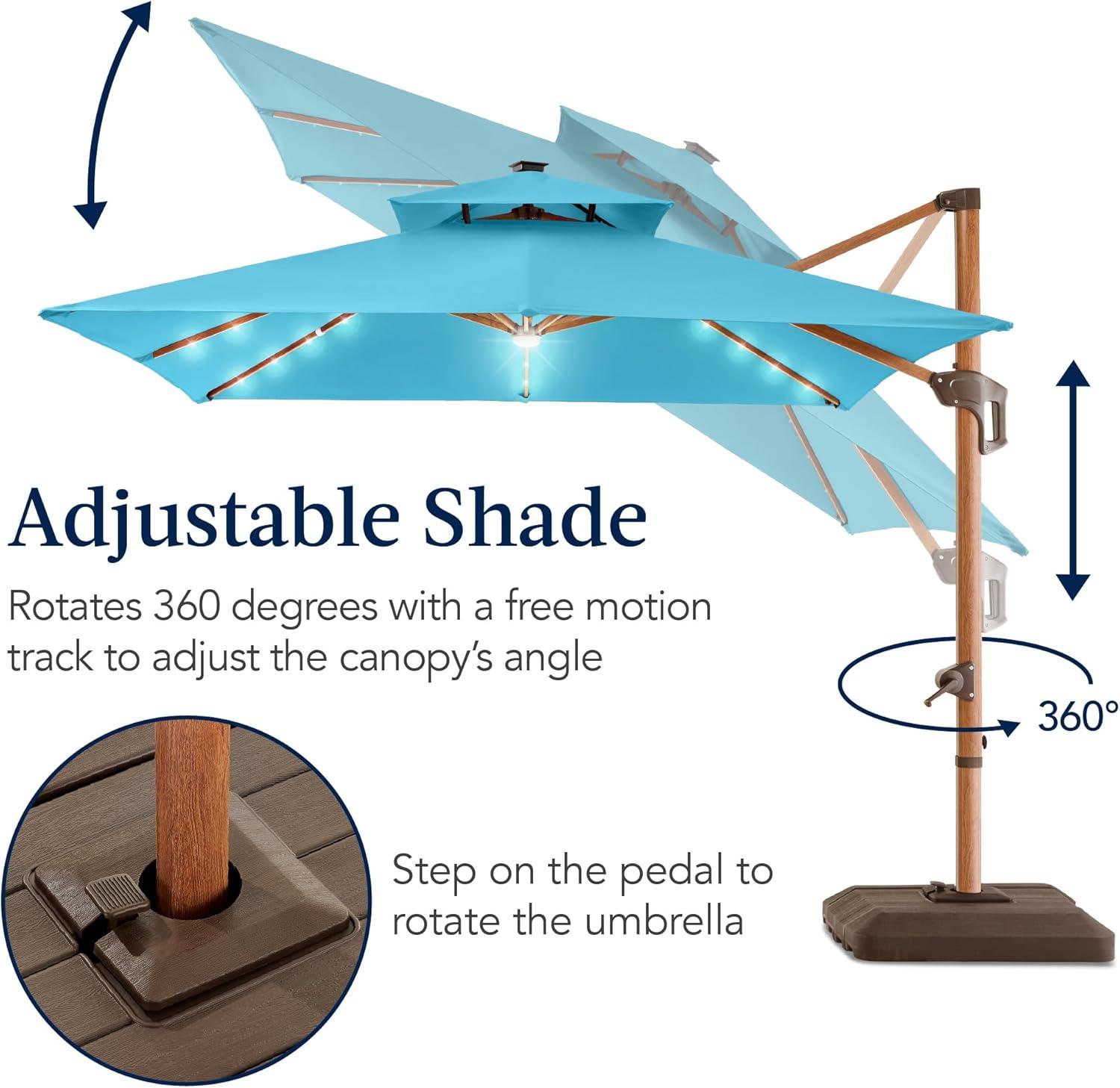 Best Choice Products 10ft Square Cantilever Patio Umbrella w/Base Included, Woodgrain Pattern Pole & Solar LED Lights, 360-Rotation, Offset Hanging Outdoor Shade - Sky Blue(Sky Blue)