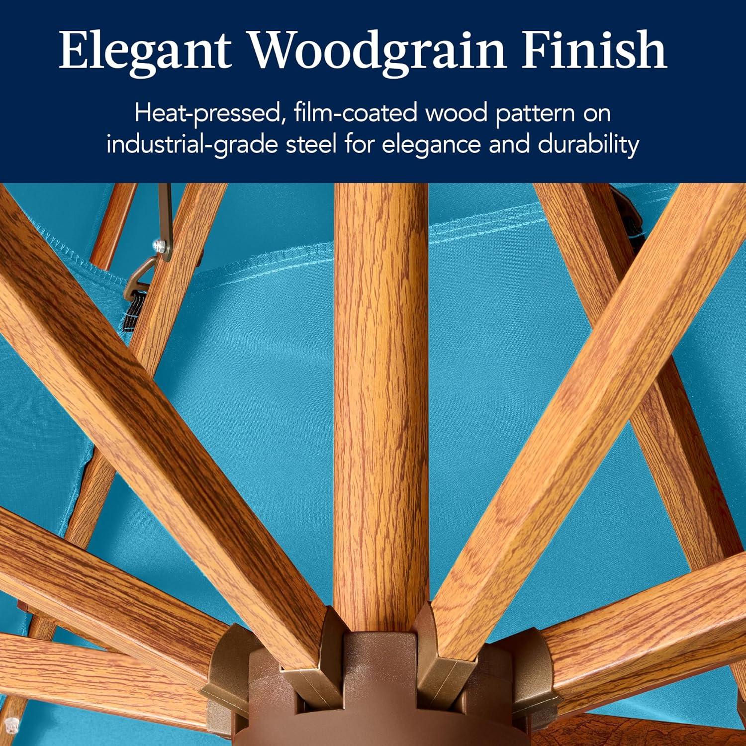 Best Choice Products 10ft Square Cantilever Patio Umbrella w/Base Included, Woodgrain Pattern Pole & Solar LED Lights, 360-Rotation, Offset Hanging Outdoor Shade – Sky Blue(Sky Blue)