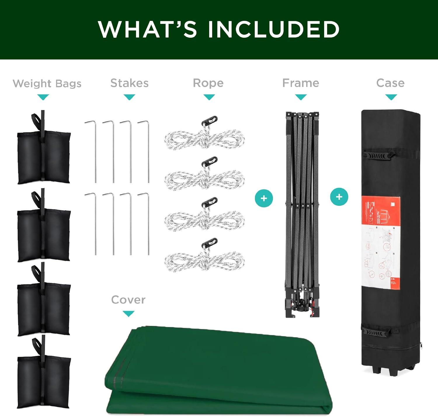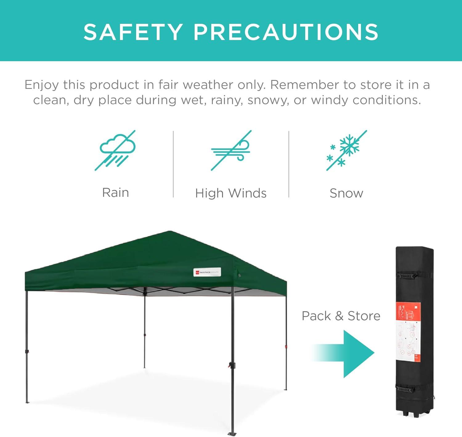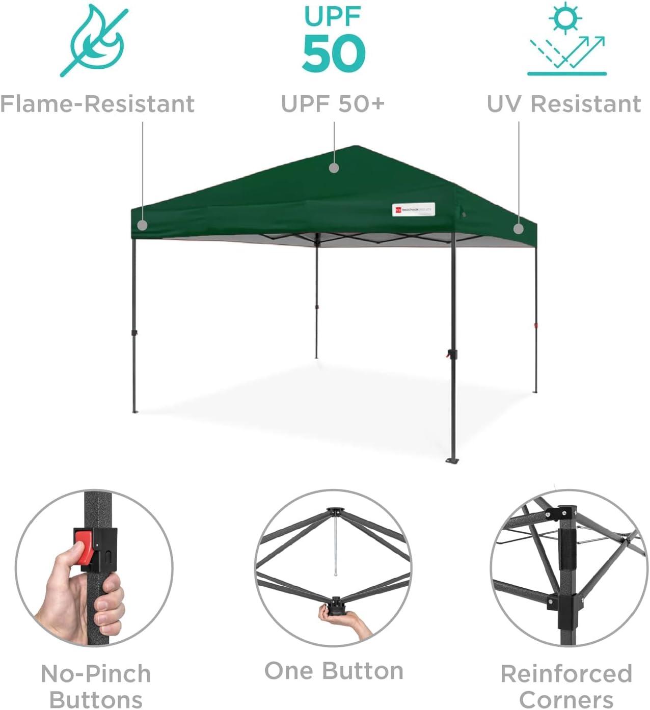 Best Choice Products 10x10ft 1-Person Setup Pop Up Canopy Tent Instant Portable Shelter w/ 1-Button Push, Case, 4 Weight Bags – Blue(Forest Green)