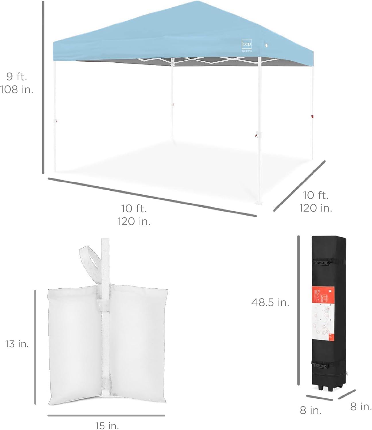 IDEAL SHADE SOLUTION: A straight leg design provides 100 square feet of shade while easy-adjusting sliders give you access to four preset heights, and four optional weight bags provide up to 112lbs of extra support