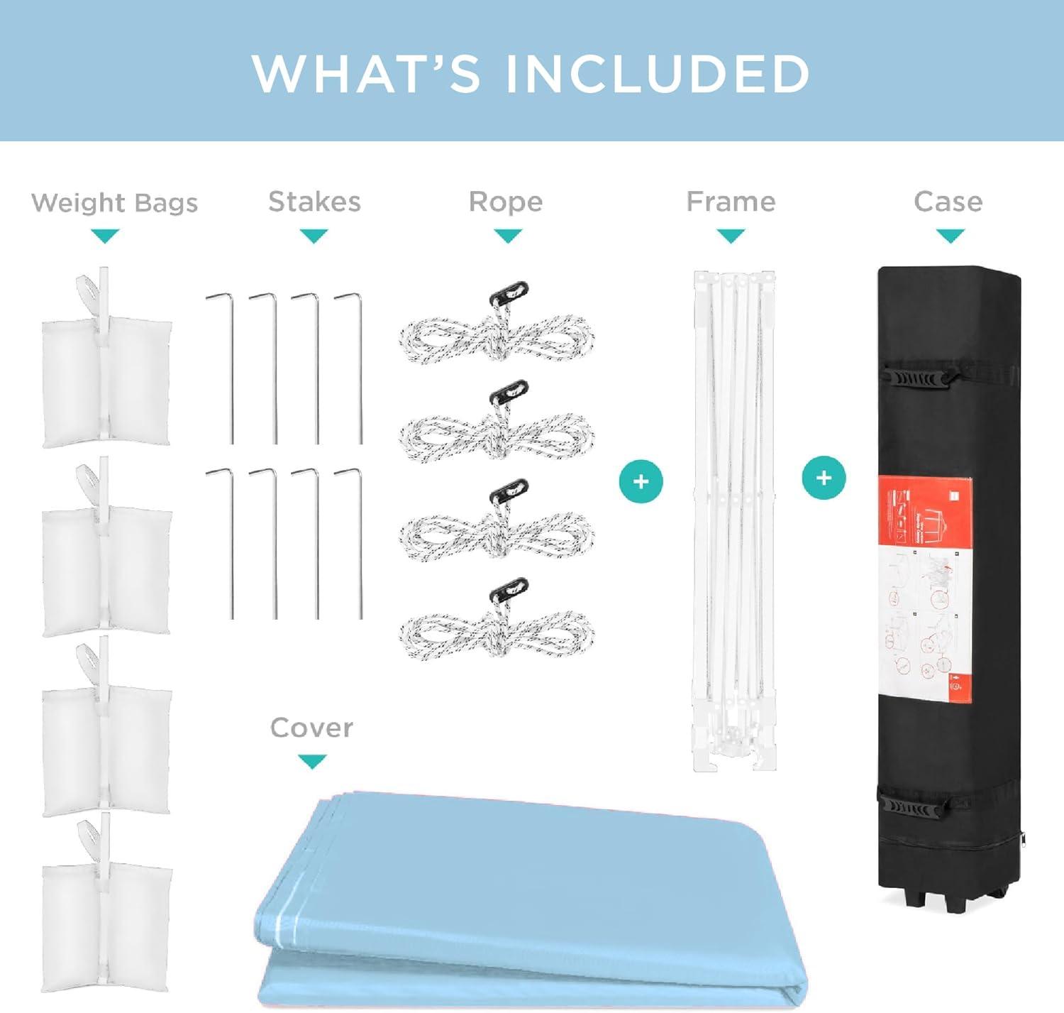 ROLLING STORAGE CASE: Compact your canopy with a few clicks of the button and slide it into the zip-up carrying case! Features a set of wheels and a rugged handle to move from party to party