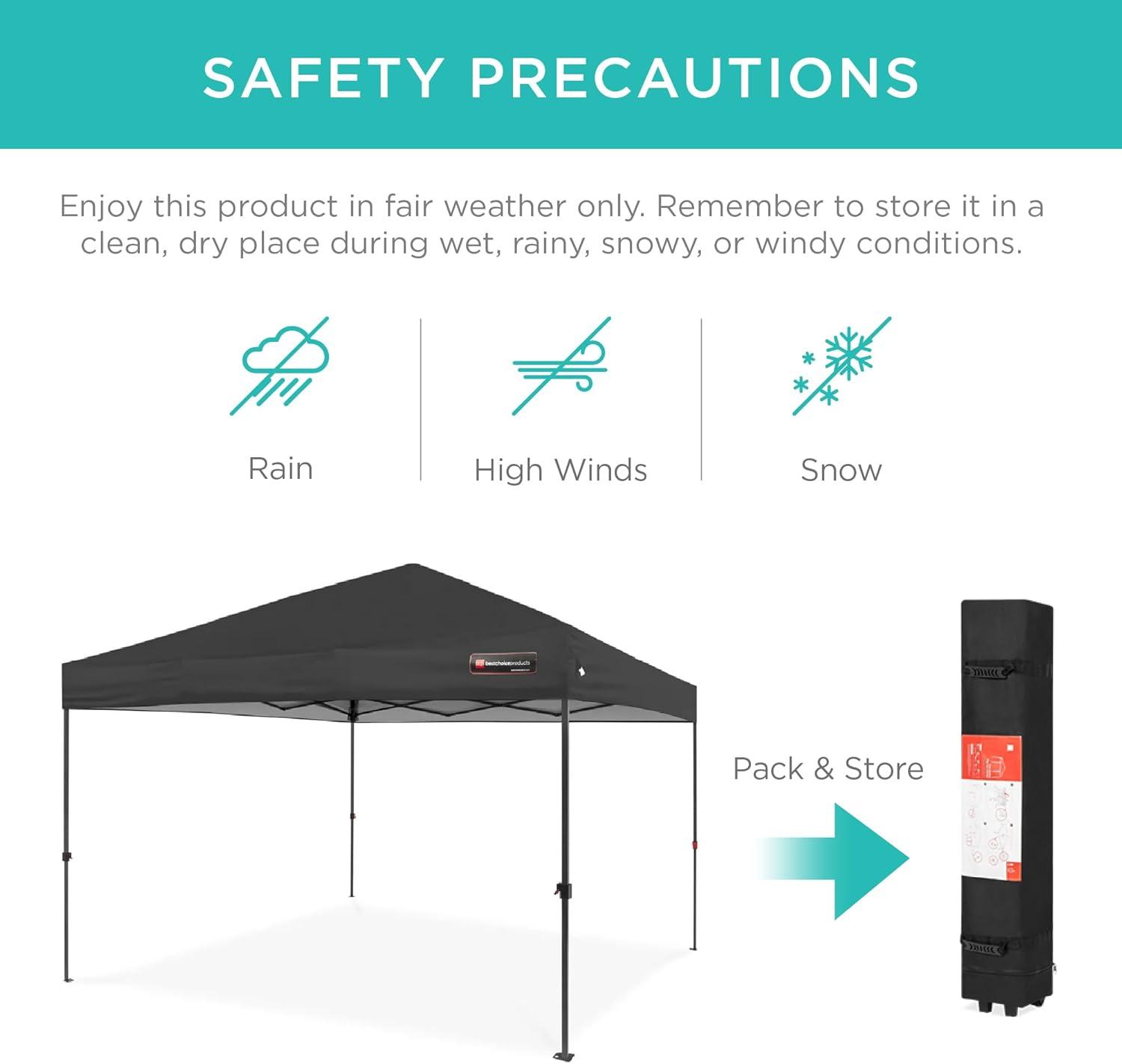 Be the first to review “Best Choice Products 10x10ft 1-Person Setup Pop Up Canopy Tent Instant Portable Shelter w/ 1-Button Push, Case, 4 Weight Bags – Blue(Gray)”
