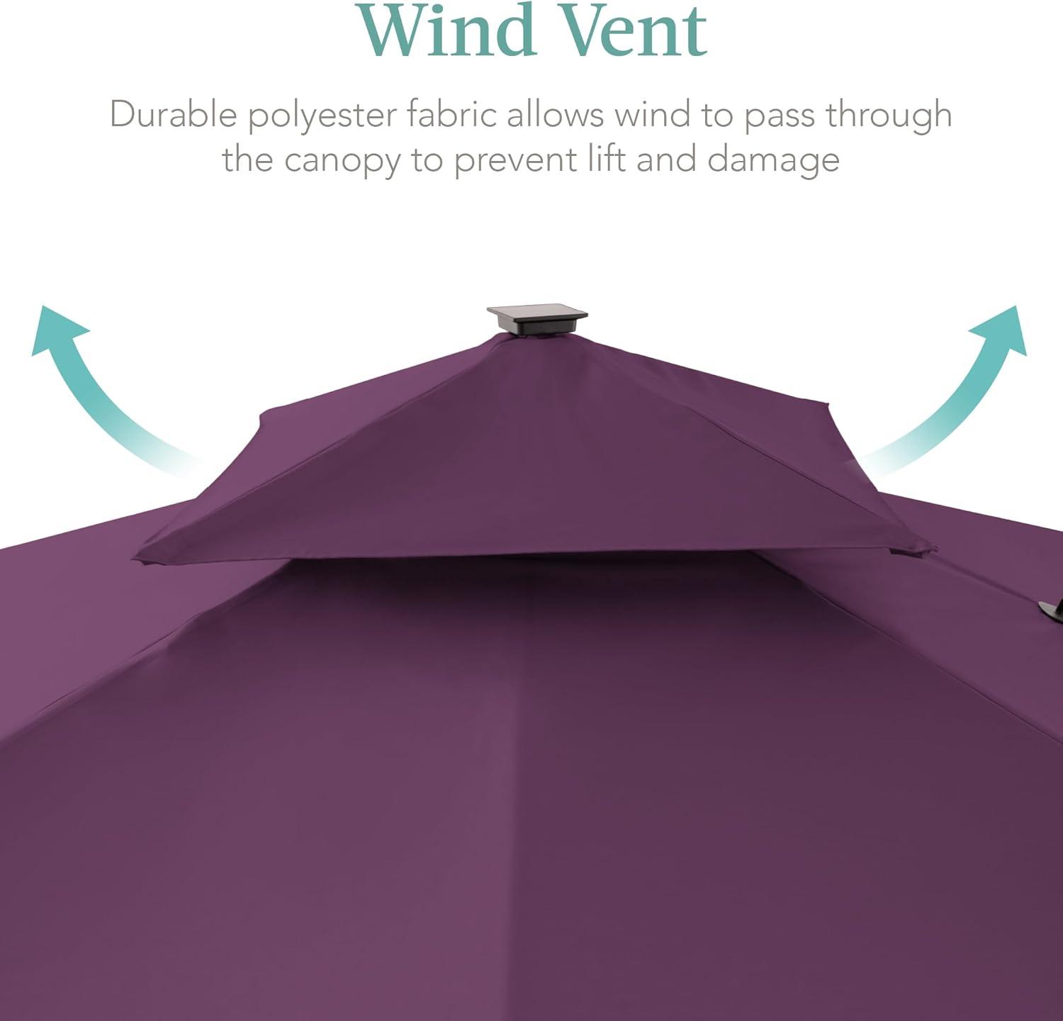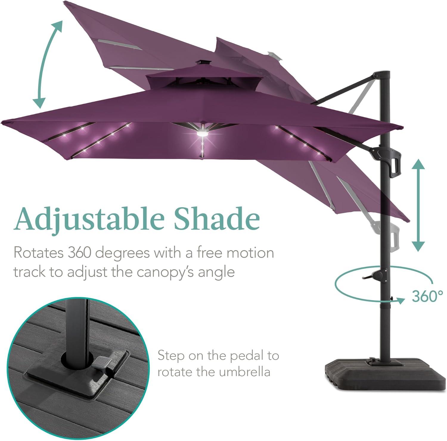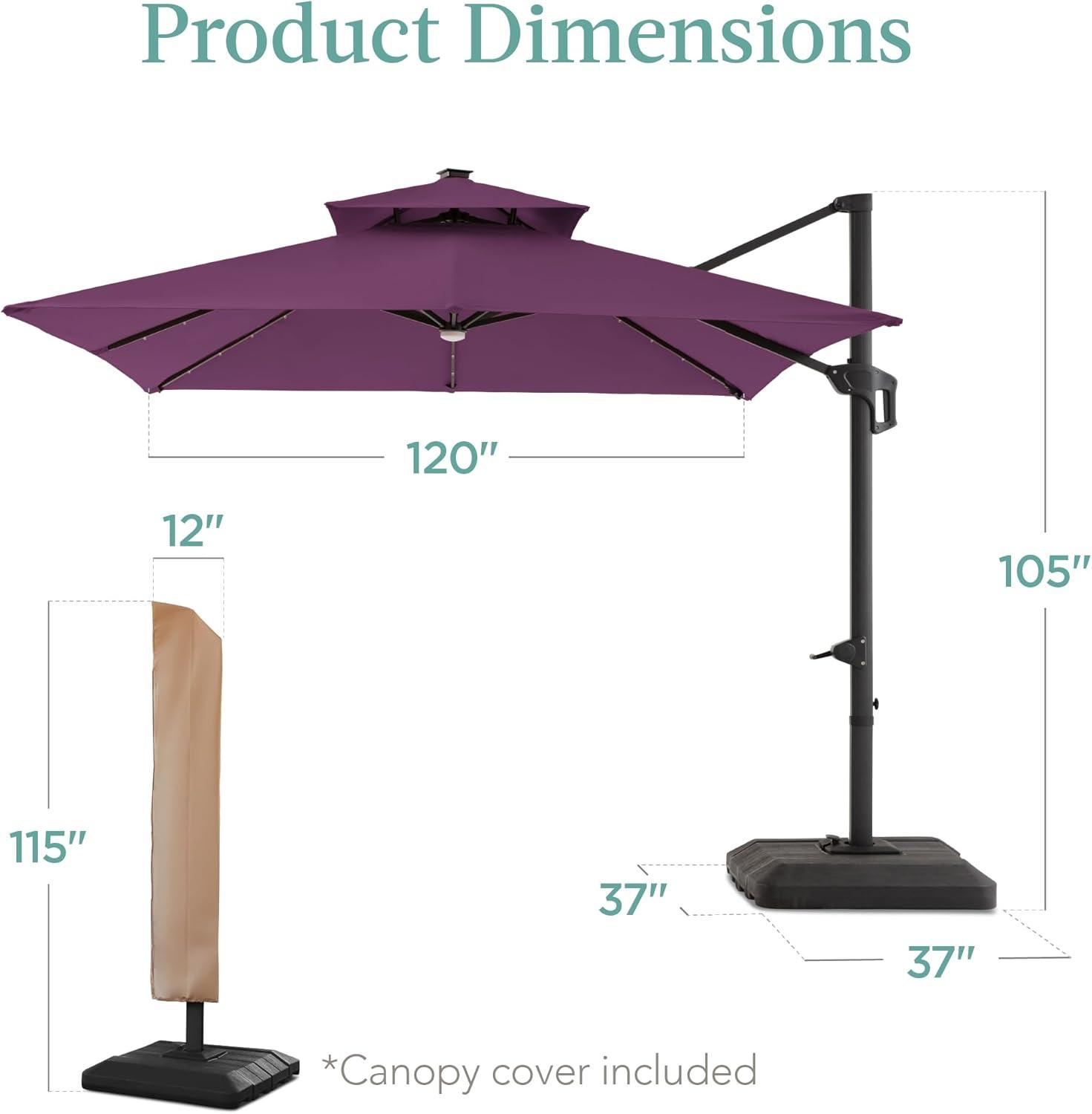 Best Choice Products 10x10ft Cantilever Patio Umbrella w/Base Included, Solar LED Lights 360 Rotation Large Offset Hanging Outdoor Shade for Deck Pool Backyard w/Stand – Burgundy(Amethyst Purple)