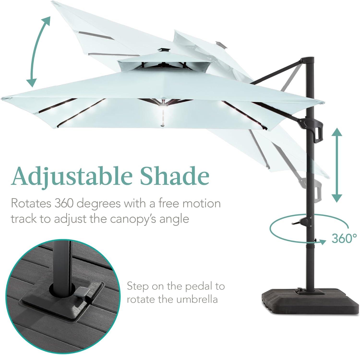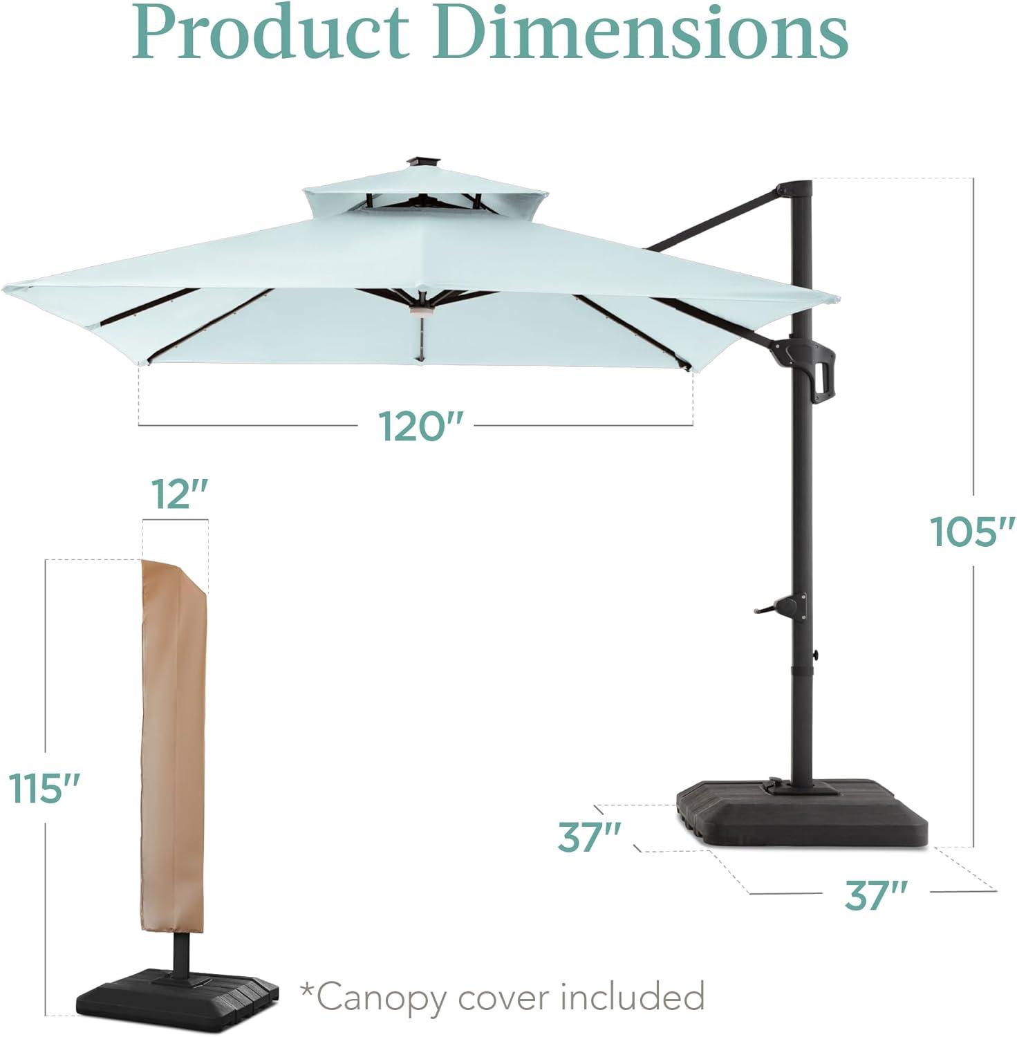 Best Choice Products 10x10ft Cantilever Patio Umbrella w/Base Included, Solar LED Lights 360 Rotation Large Offset Hanging Outdoor Shade for Deck Pool Backyard w/Stand – Burgundy(Baby Blue)