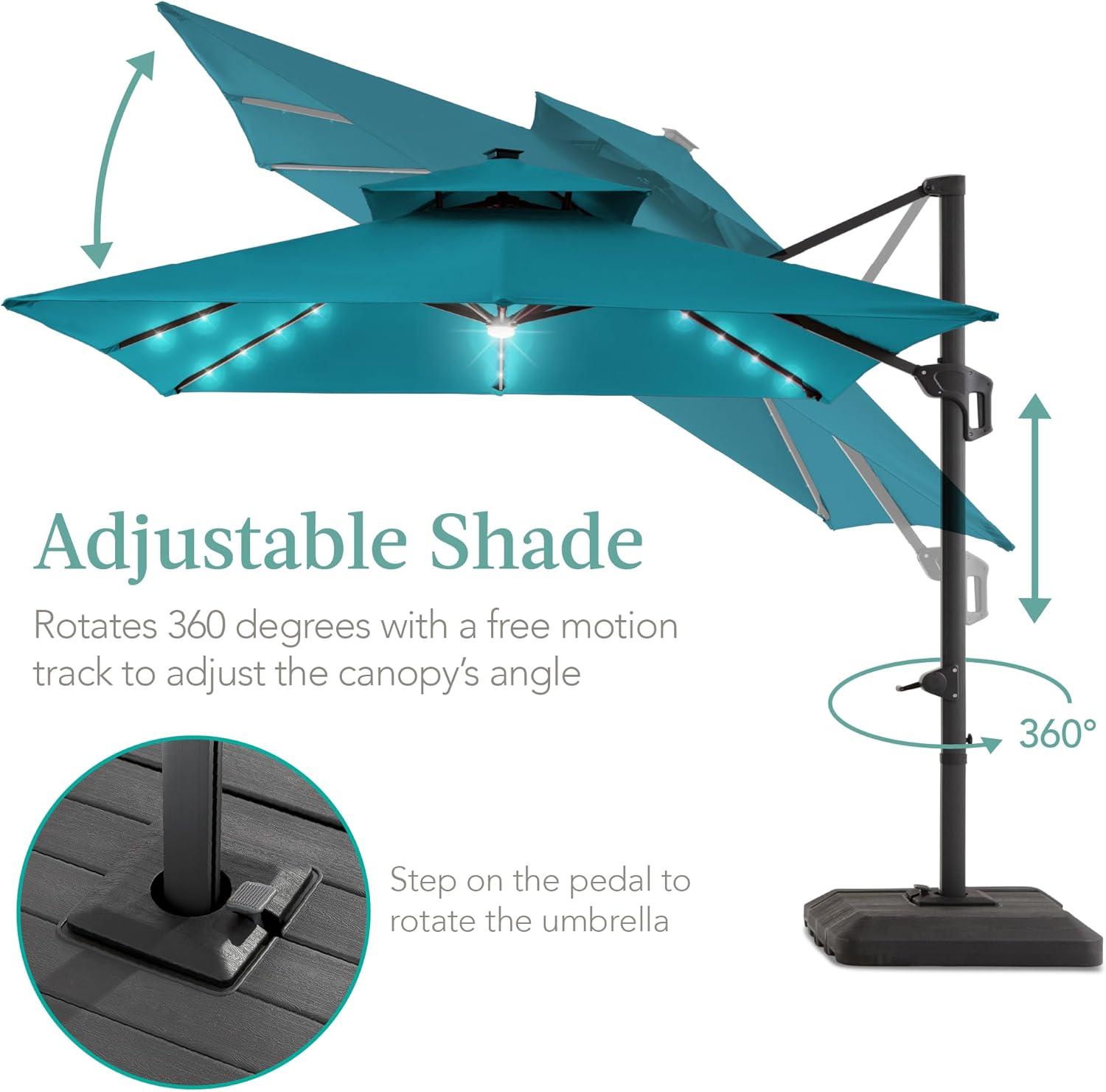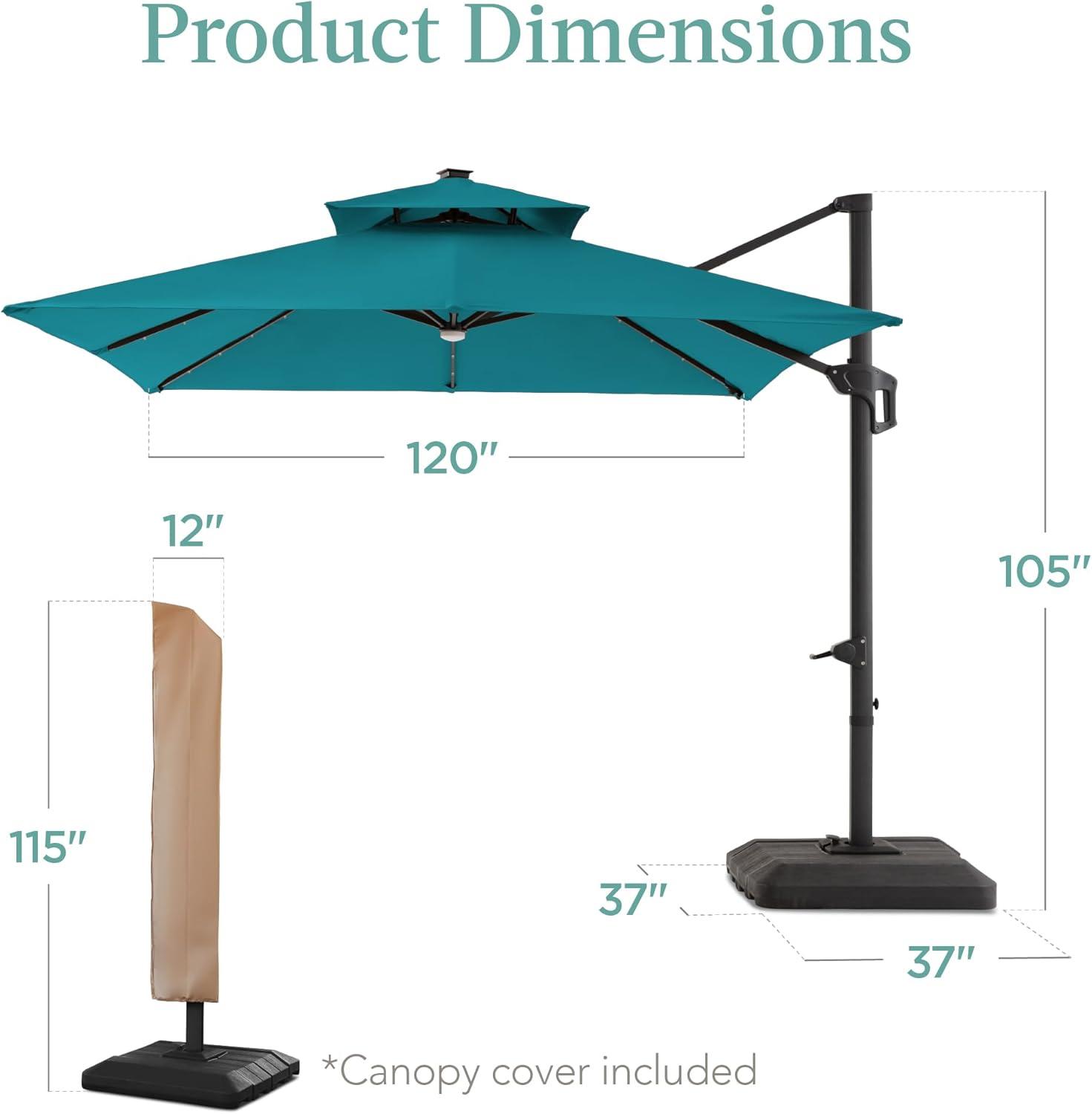 Best Choice Products 10x10ft Cantilever Patio Umbrella w/Base Included, Solar LED Lights 360 Rotation Large Offset Hanging Outdoor Shade for Deck Pool Backyard w/Stand – Burgundy(Cerulean)