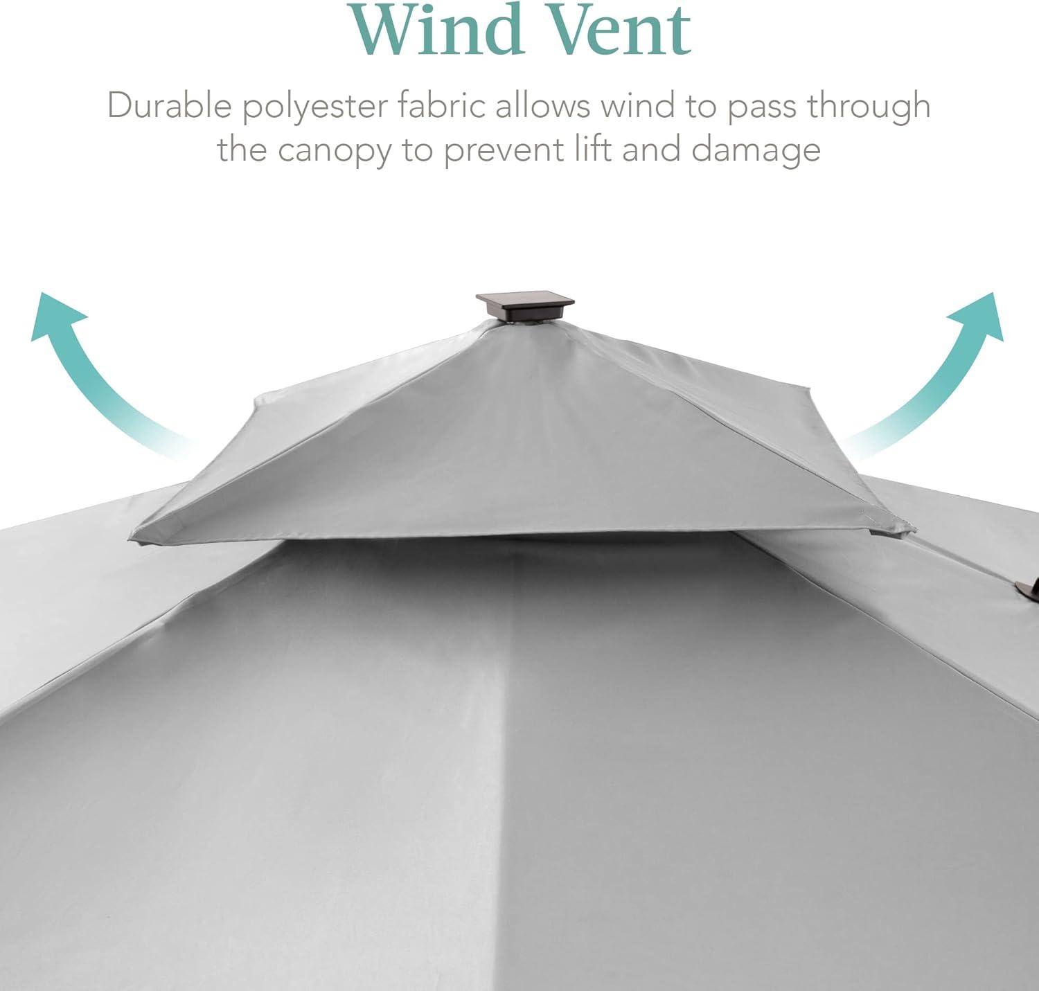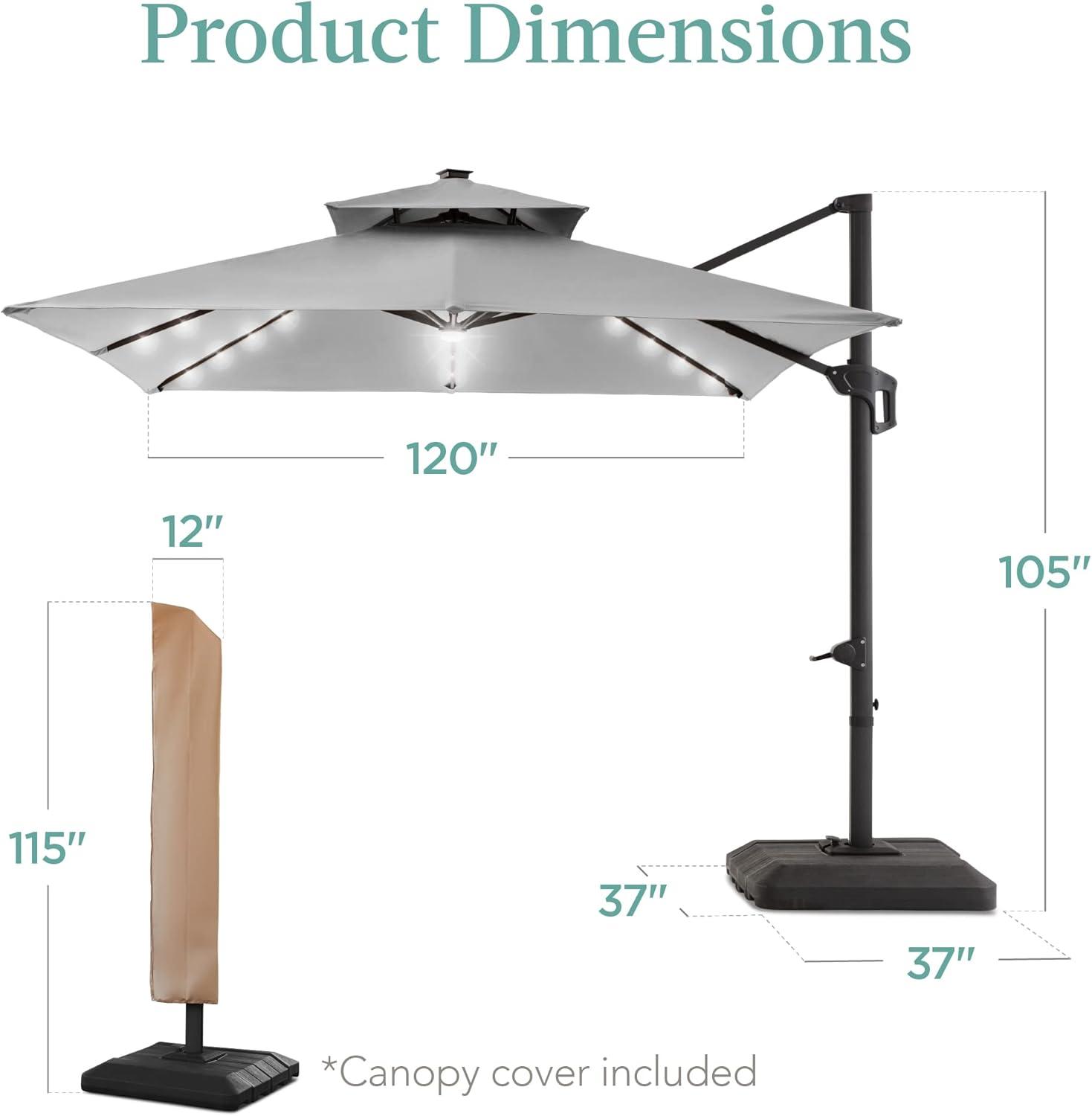 Best Choice Products 10x10ft Cantilever Patio Umbrella w/Base Included, Solar LED Lights 360 Rotation Large Offset Hanging Outdoor Shade for Deck Pool Backyard w/Stand – Burgundy(Fog Gray)