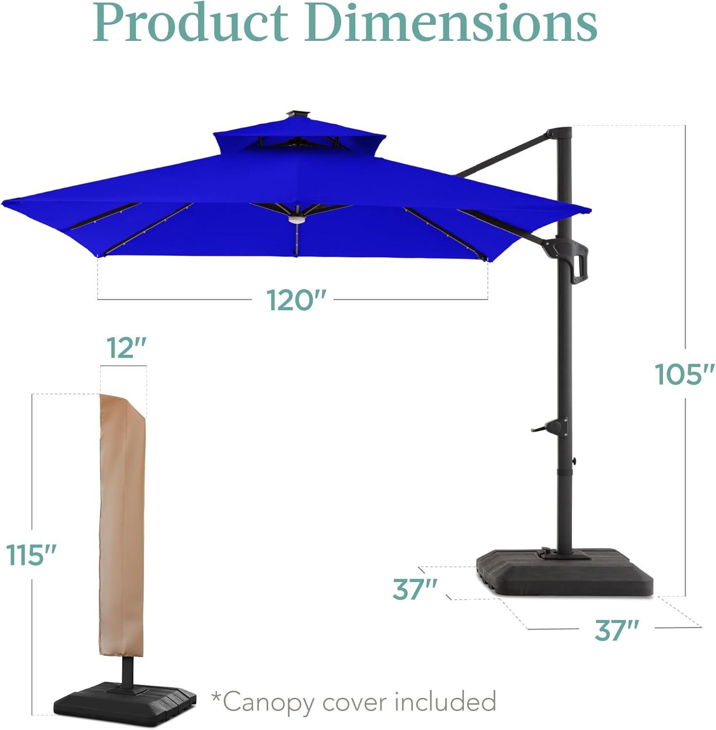 Best Choice Products 10x10ft Cantilever Patio Umbrella w/Base Included, Solar LED Lights 360 Rotation Large Offset Hanging Outdoor Shade for Deck Pool Backyard w/Stand – Burgundy(Resort Blue)