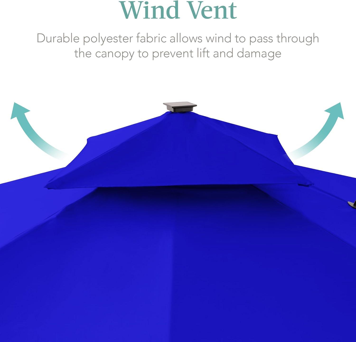 WIND VENT: Durable polyester fabric resists damage from the elements while the vent promotes airflow, cooling your guests while adding stability; OVERALL DIMENSIONS: 120″(L) x 120″(W) x 105″(H); Canopy cover included