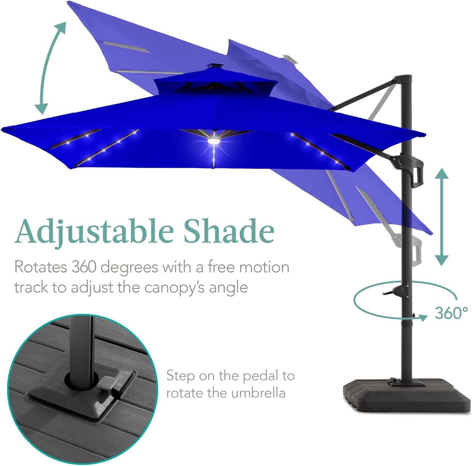 imageBest Choice Products 10x10ft Cantilever Patio Umbrella wBase Included Solar LED Lights 360 Rotation Large Offset Hanging Outdoor Shade for Deck Pool Backyard wStand  BurgundyResort Blue