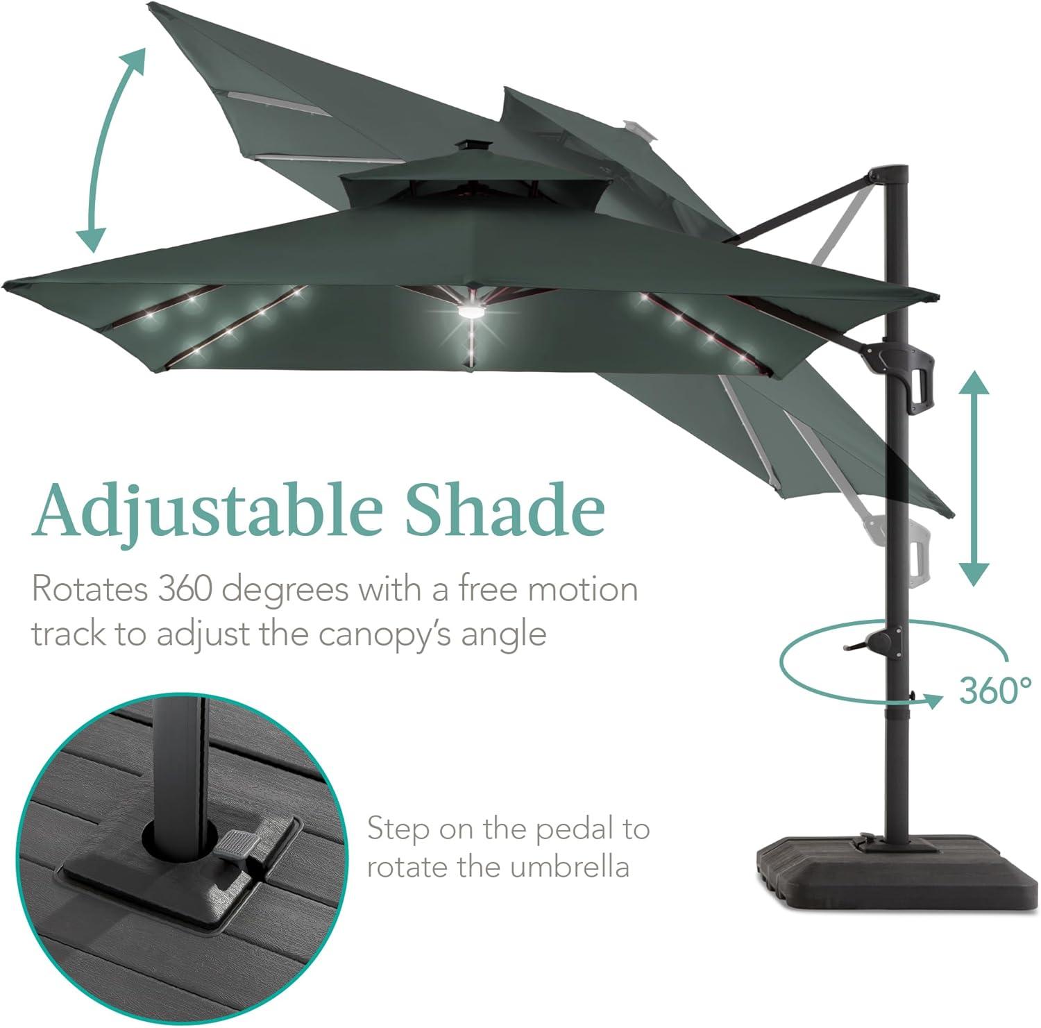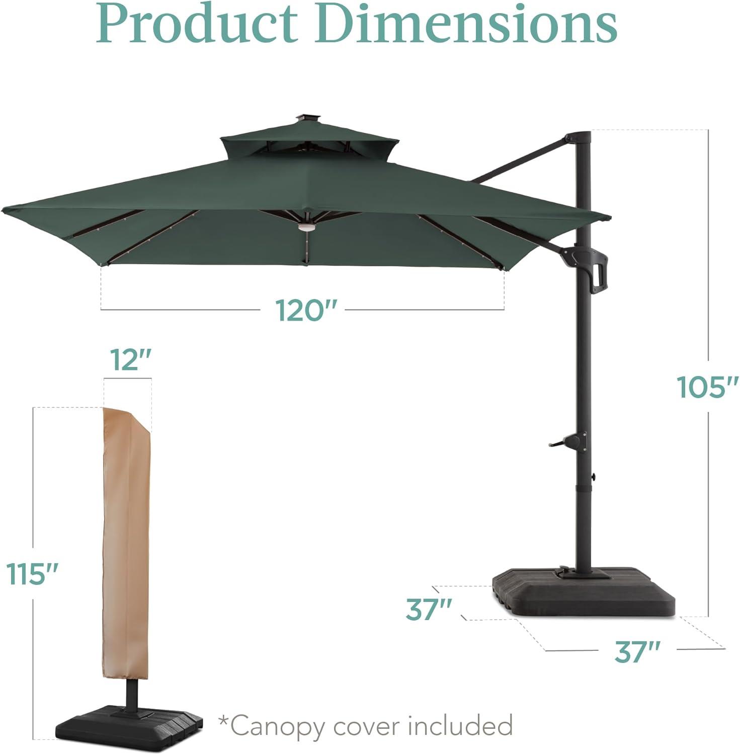 Best Choice Products 10x10ft Cantilever Patio Umbrella w/Base Included, Solar LED Lights 360 Rotation Large Offset Hanging Outdoor Shade for Deck Pool Backyard w/Stand – Burgundy(Tan)