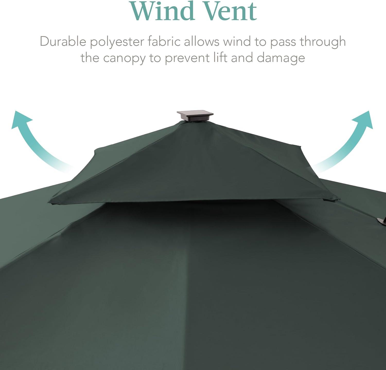 WIND VENT: Durable polyester fabric resists damage from the elements while the vent promotes airflow, cooling your guests while adding stability; OVERALL DIMENSIONS: 120″(L) x 120″(W) x 105″(H); Canopy cover included
