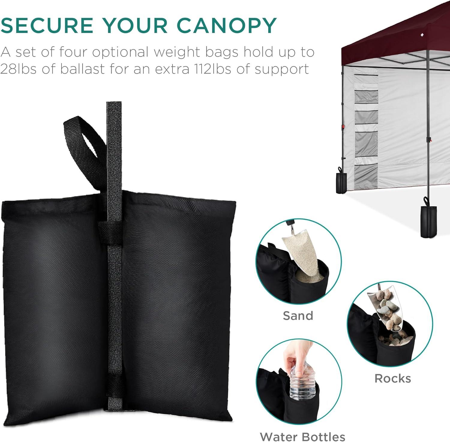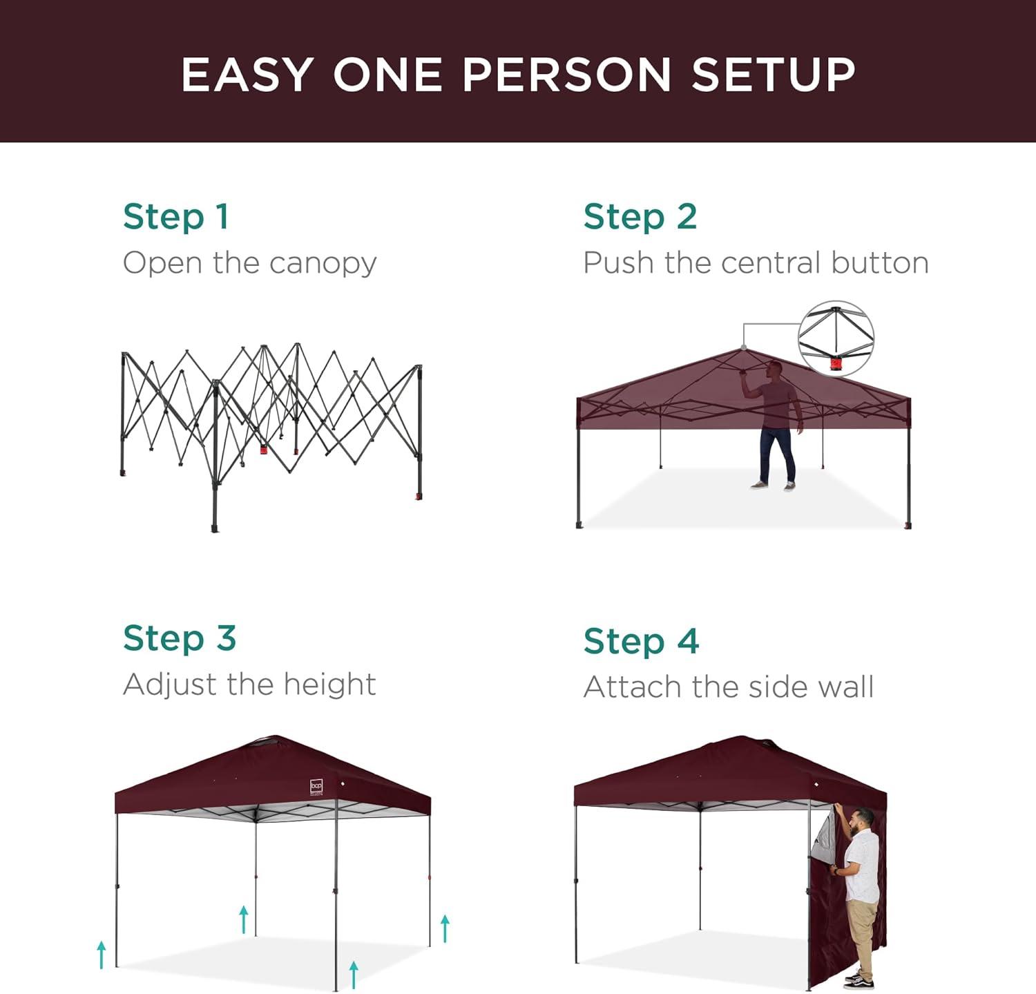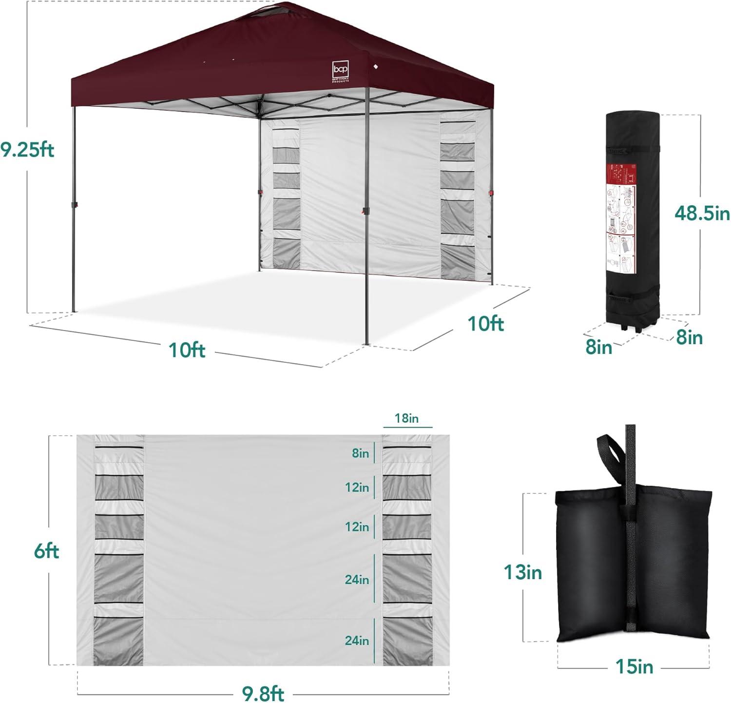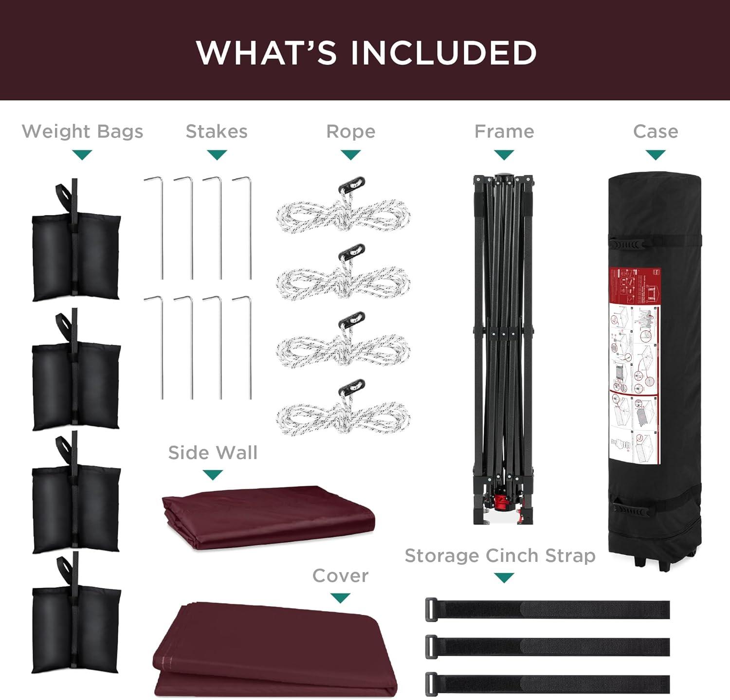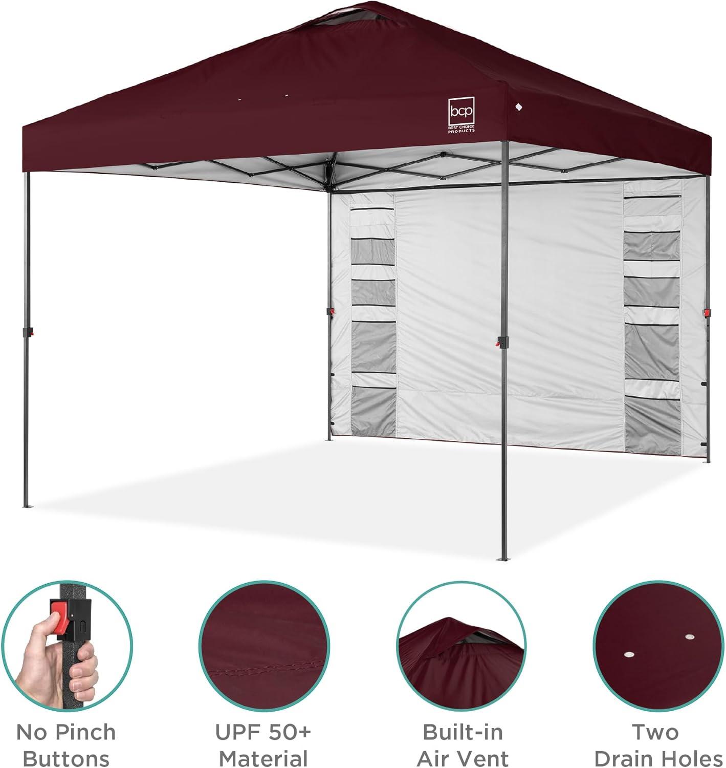 Best Choice Products 10x10ft Easy Pop Up Canopy w/Side Wall, 10 Pockets, Portable Carrying Case, 1-Button Setup, 4 Weight Bags – Sand(Burgundy)