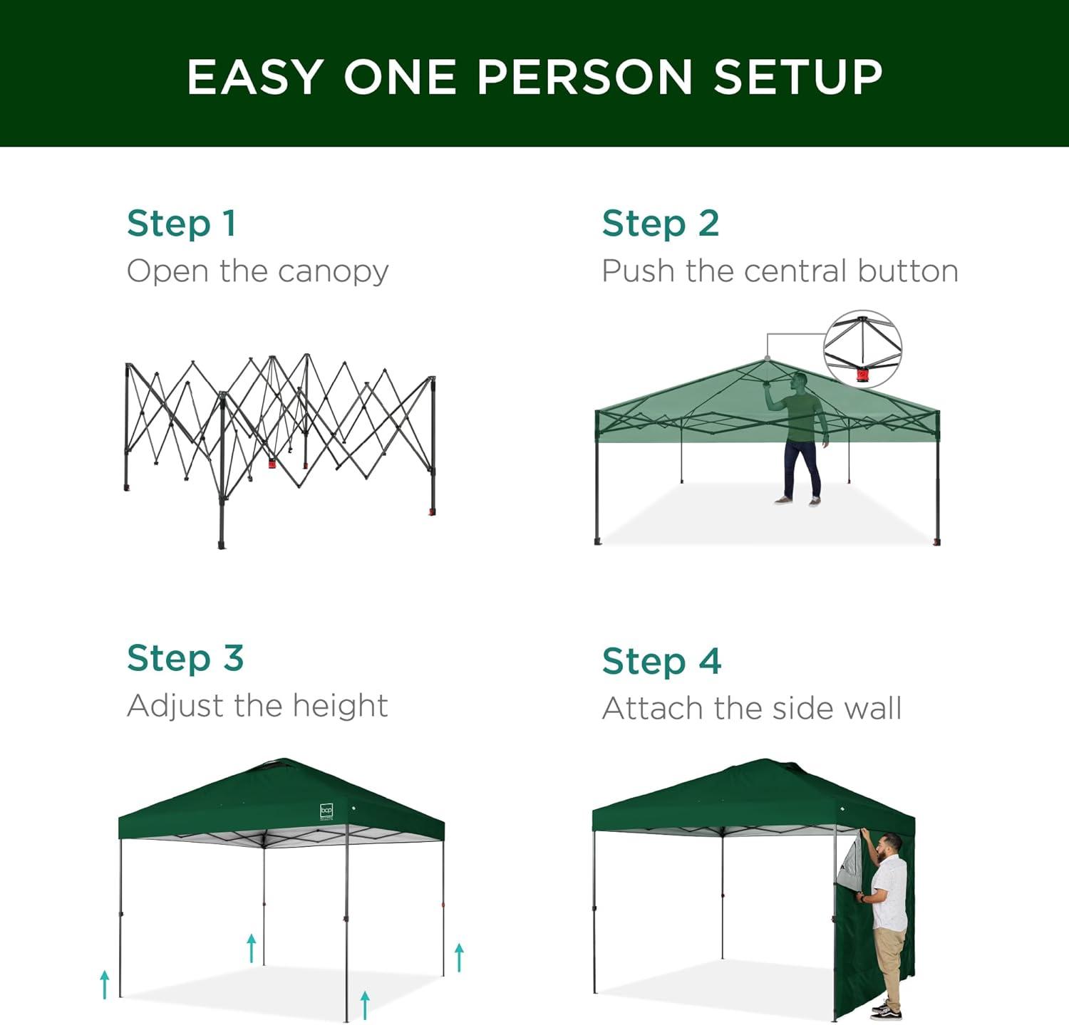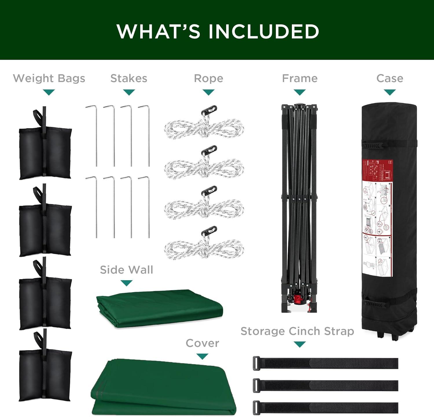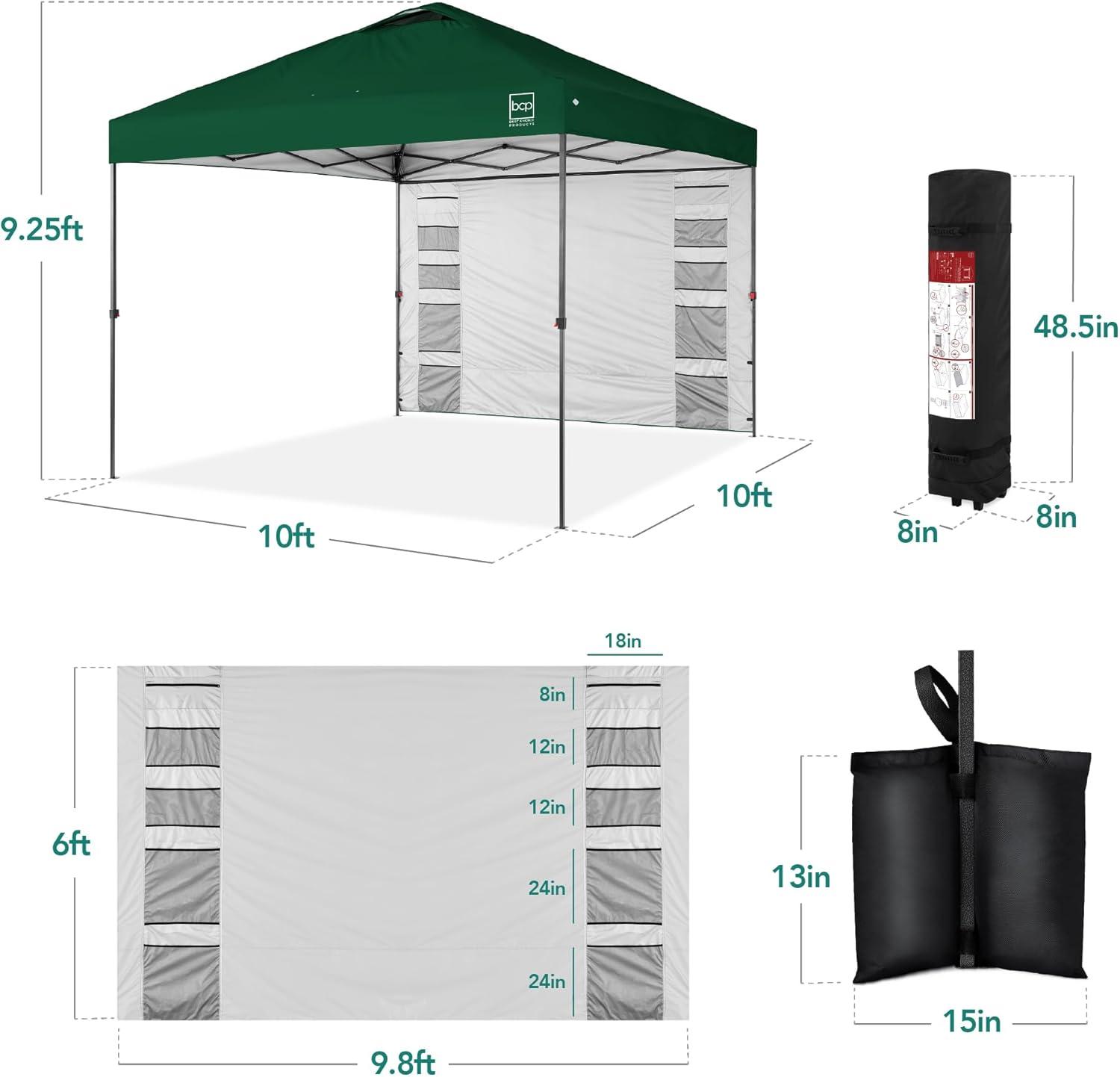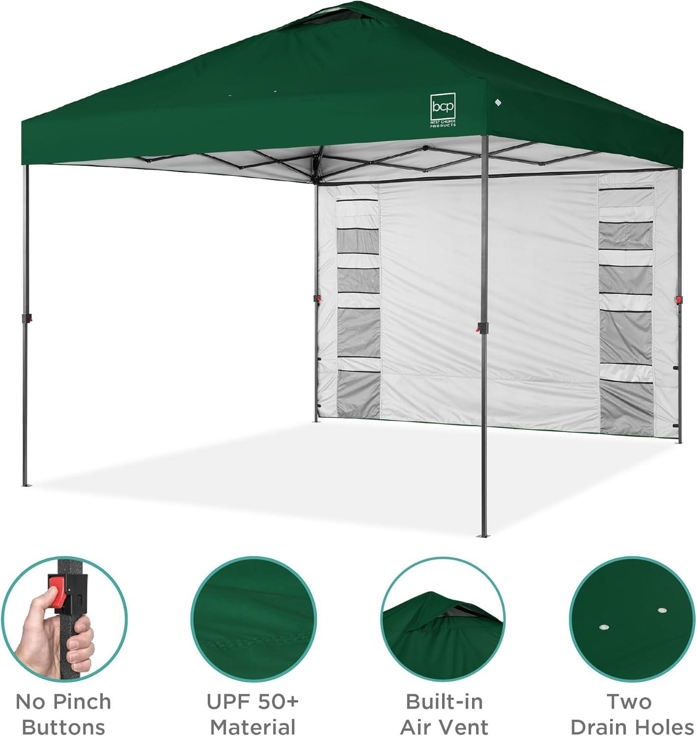 Best Choice Products 10x10ft Easy Pop Up Canopy w/Side Wall, 10 Pockets, Portable Carrying Case, 1-Button Setup, 4 Weight Bags – Sand(Forest Green)
