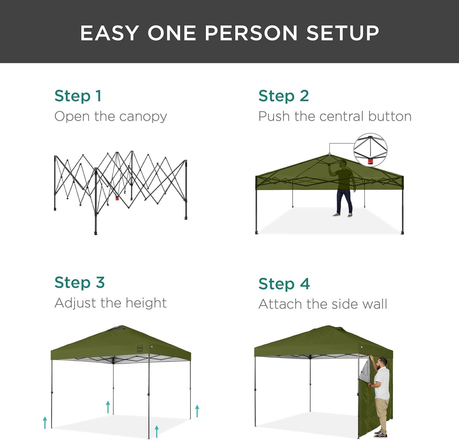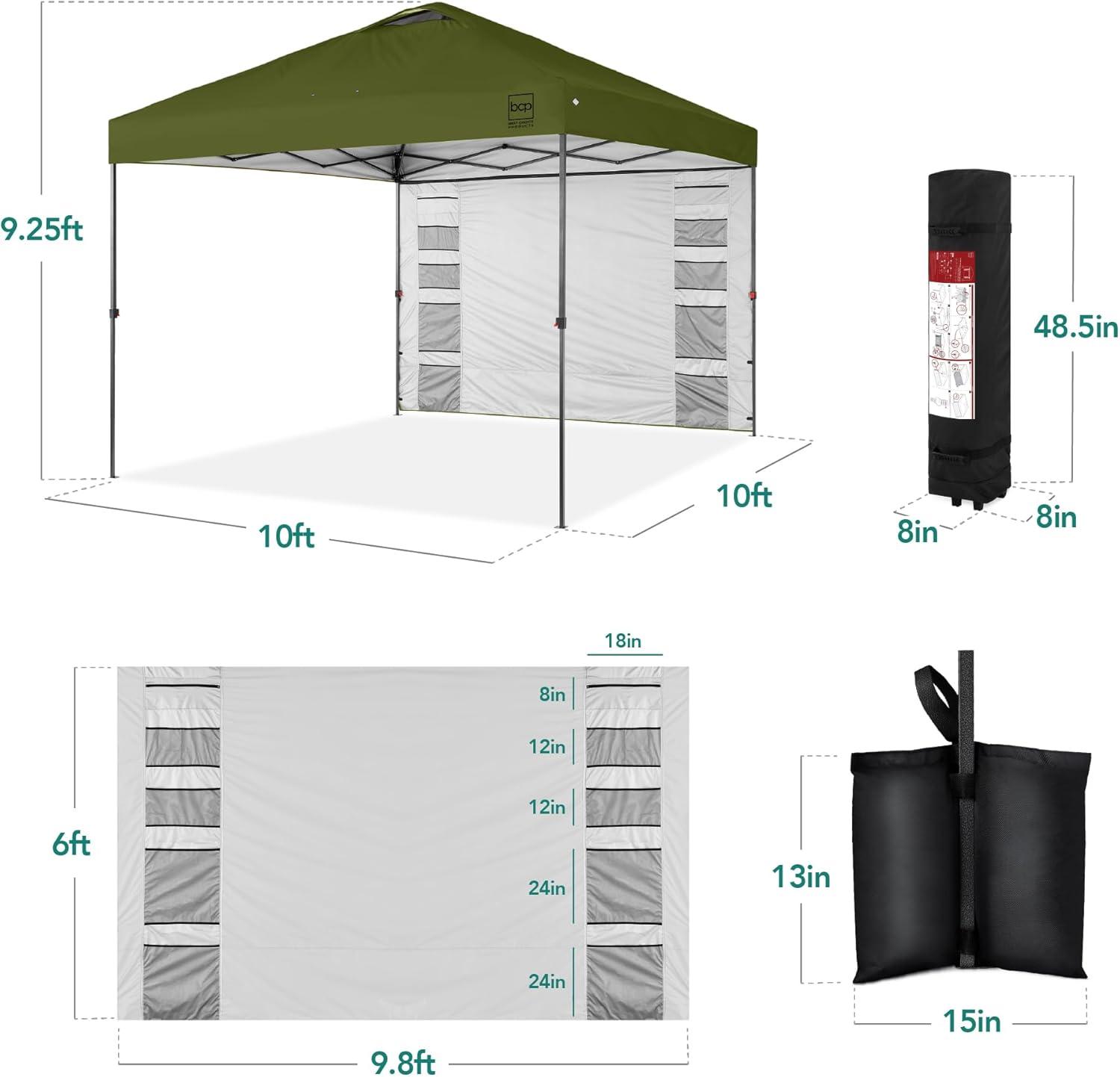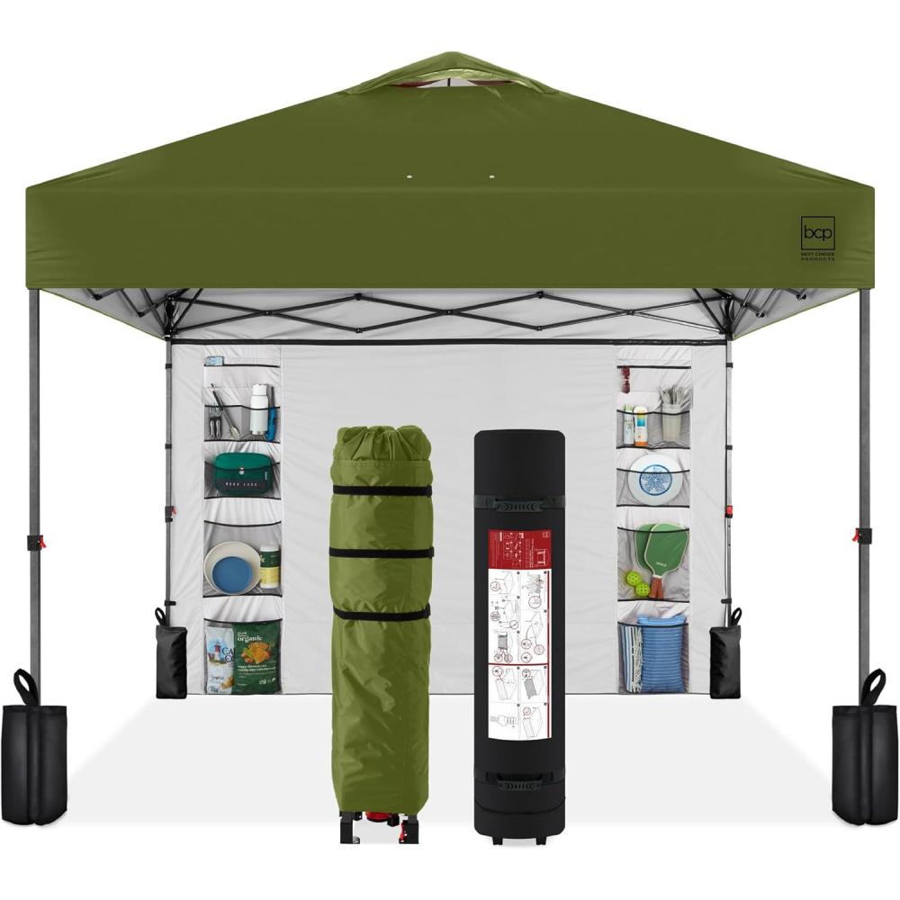 Best Choice Products 10x10ft Easy Pop Up Canopy w/Side Wall, 10 Pockets, Portable Carrying Case, 1-Button Setup, 4 Weight Bags – Sand(Olive Green)