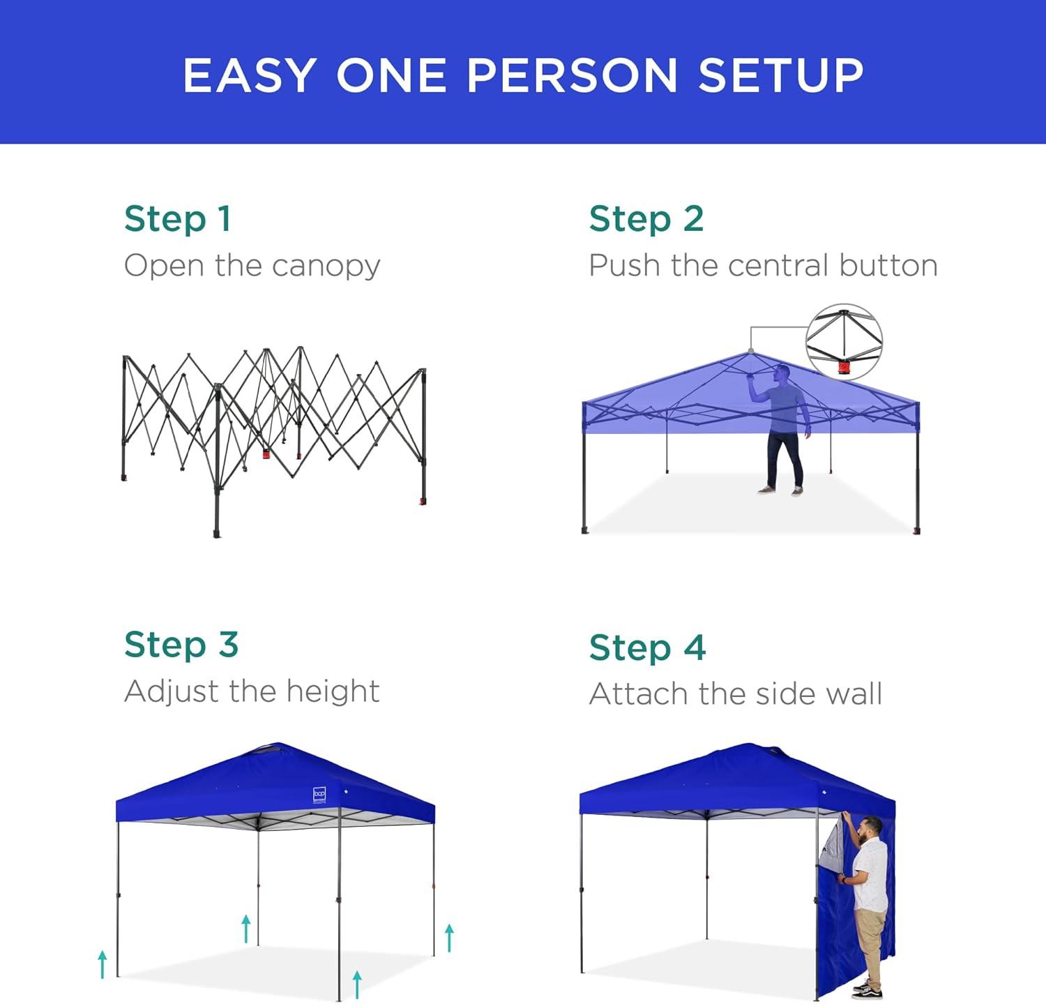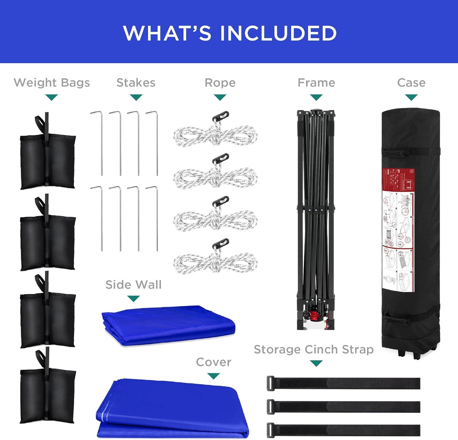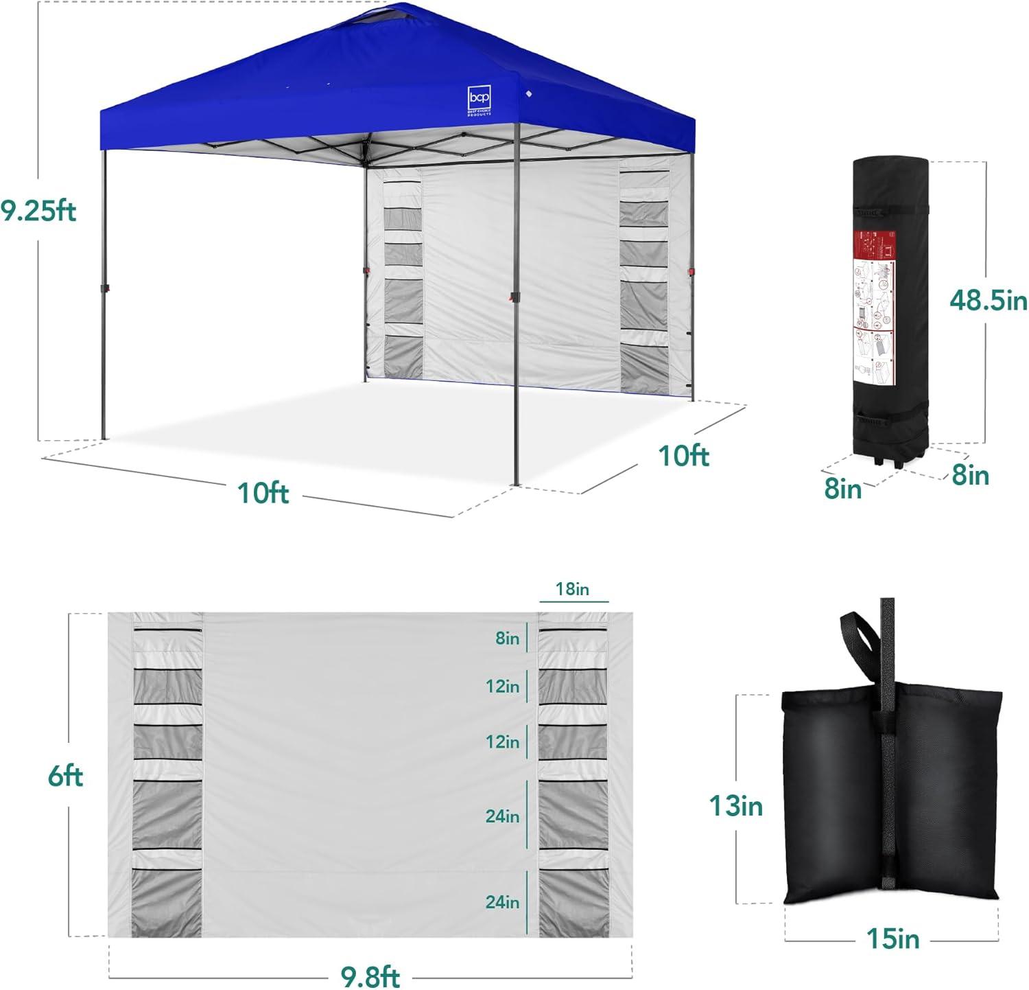 Best Choice Products 10x10ft Easy Pop Up Canopy w/Side Wall, 10 Pockets, Portable Carrying Case, 1-Button Setup, 4 Weight Bags – Sand(Resort Blue)
