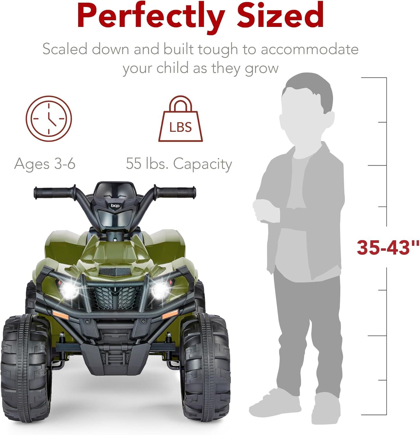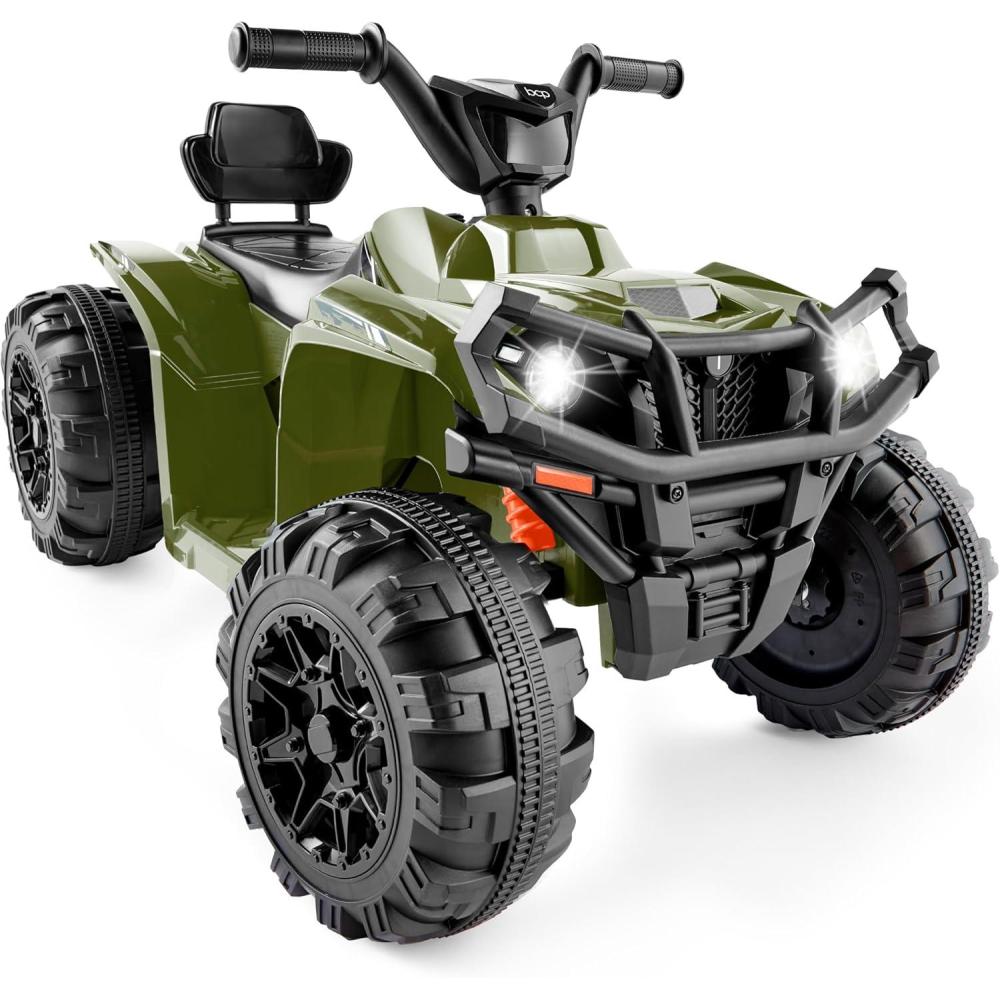 imageBest Choice Products 12V Kids RideOn Electric ATV 4Wheeler Quad Car Toy wBluetooth Audio 24mph Max Speed Treaded Tires LED Headlights Radio  BlueArmy Green