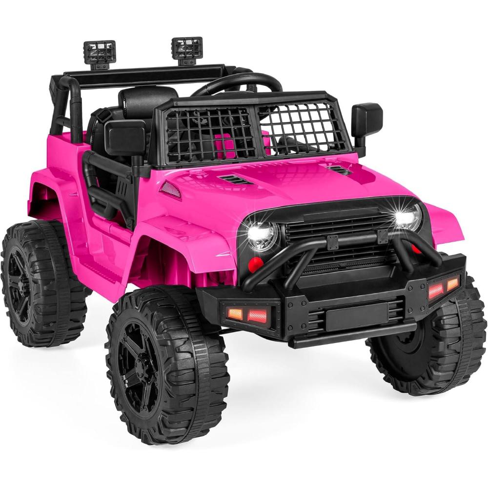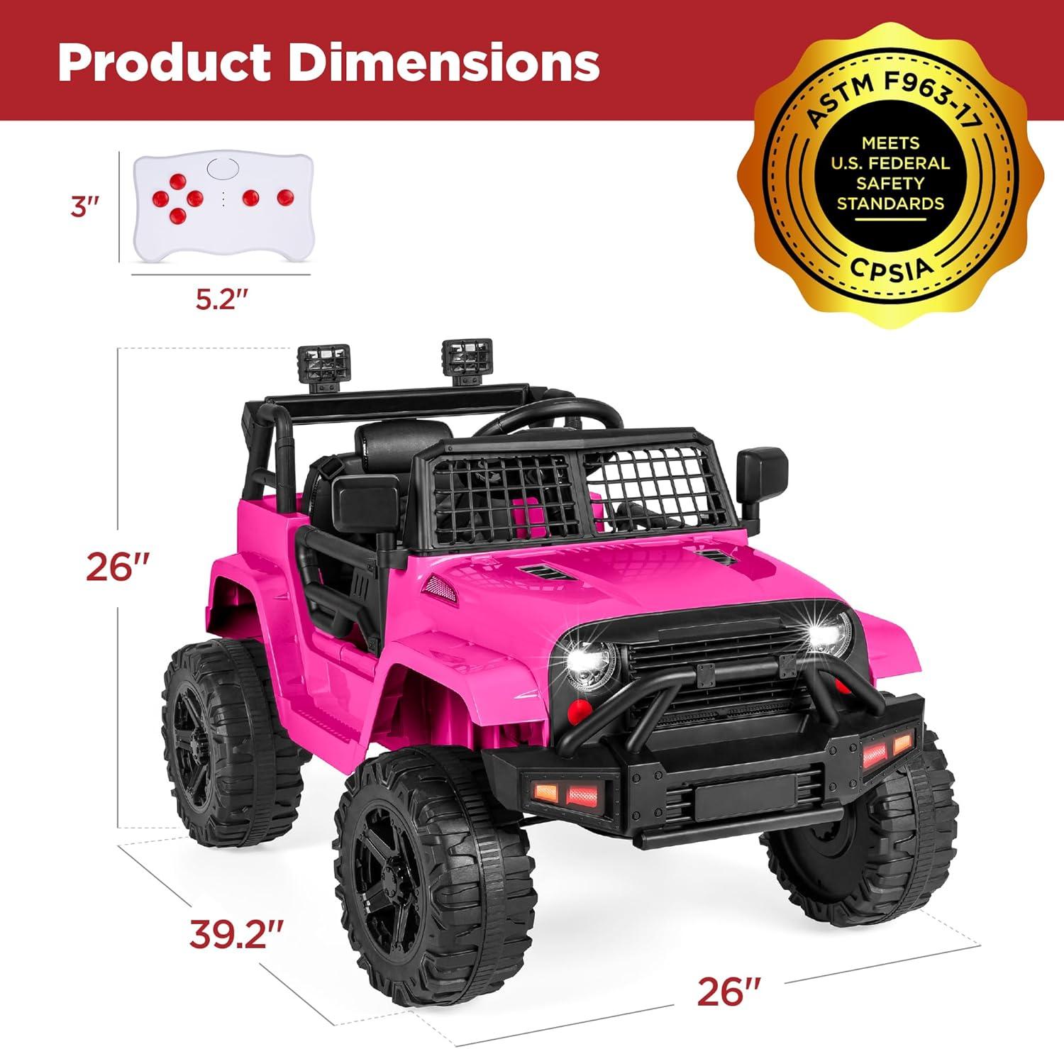 Best Choice Products 12V Kids Ride On Truck Car w/Parent Remote Control, Spring Suspension, LED Lights, AUX Port – Green(Hot Pink)