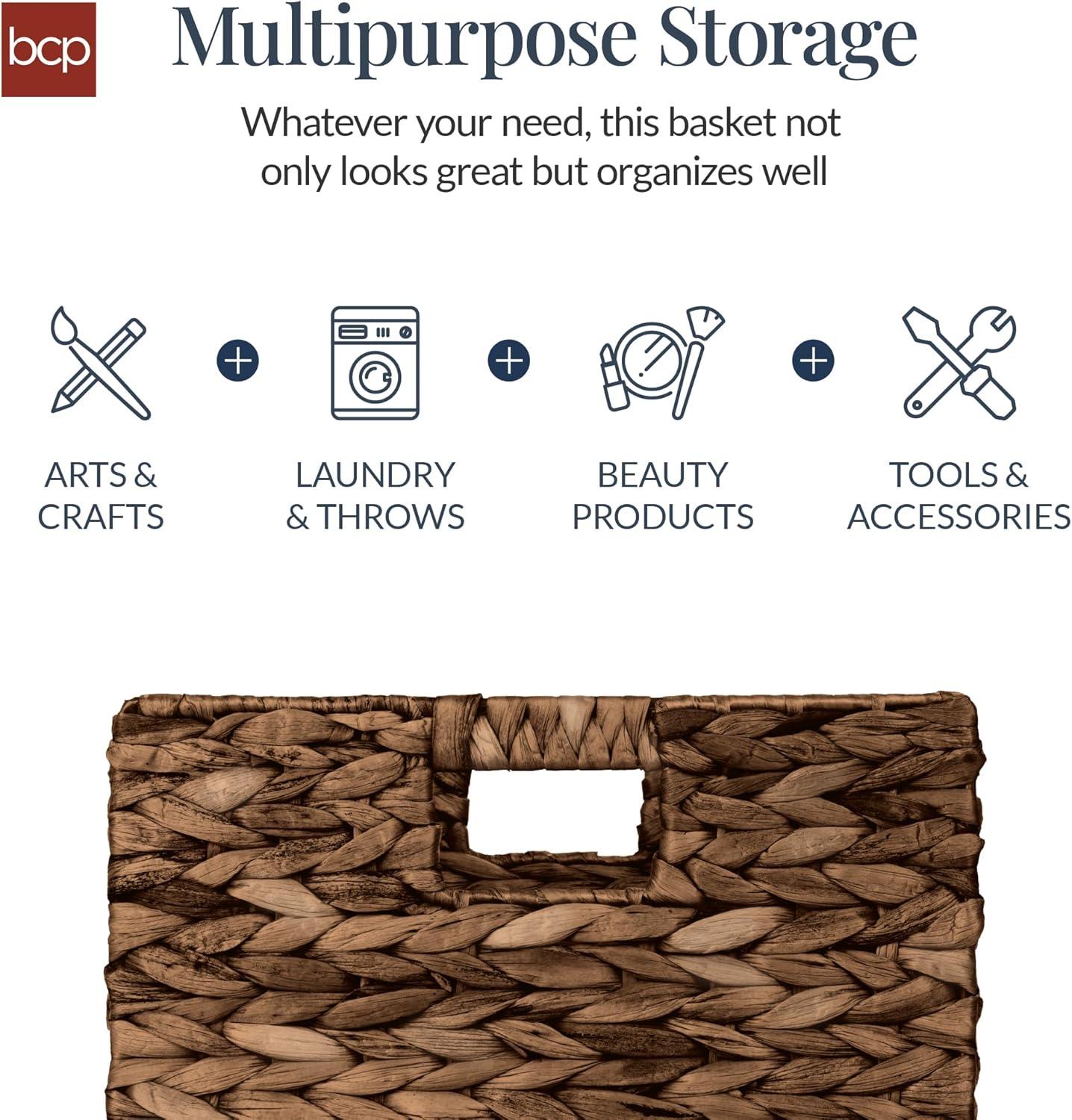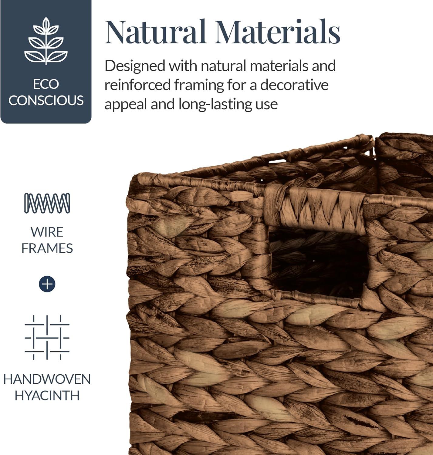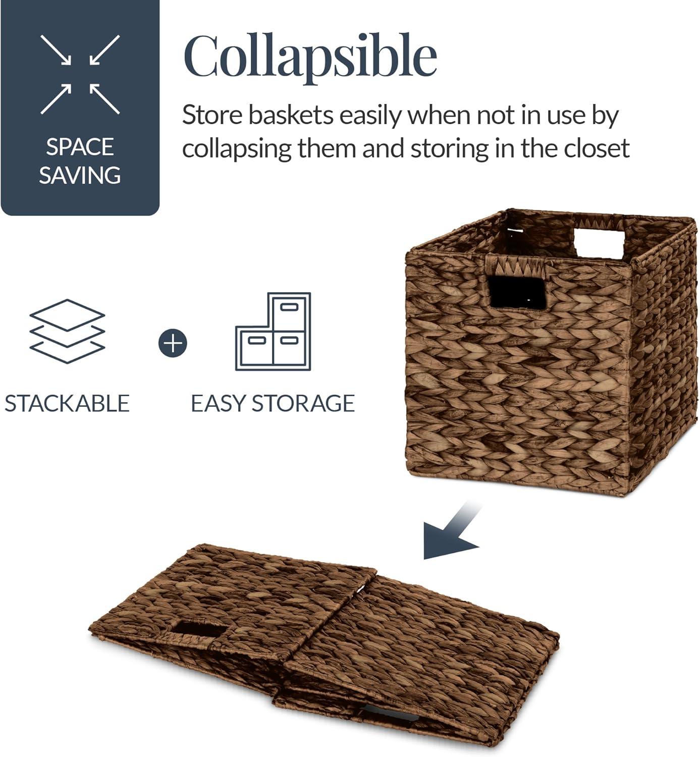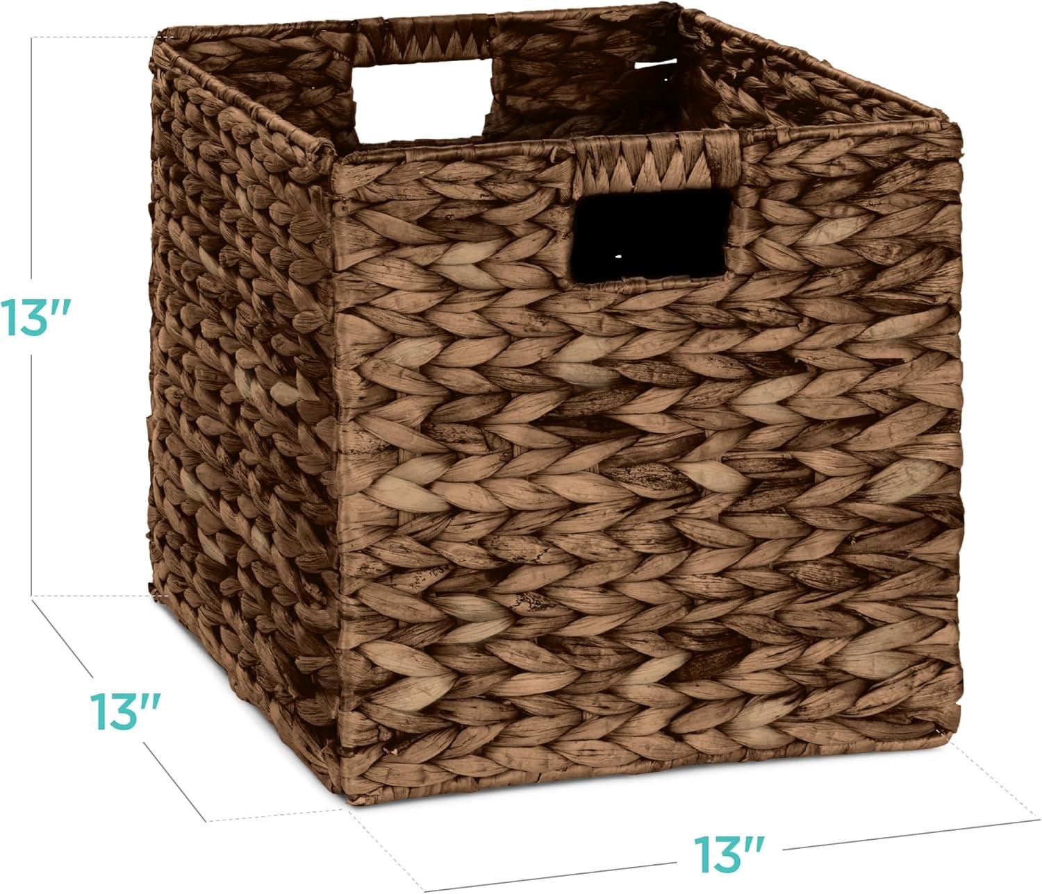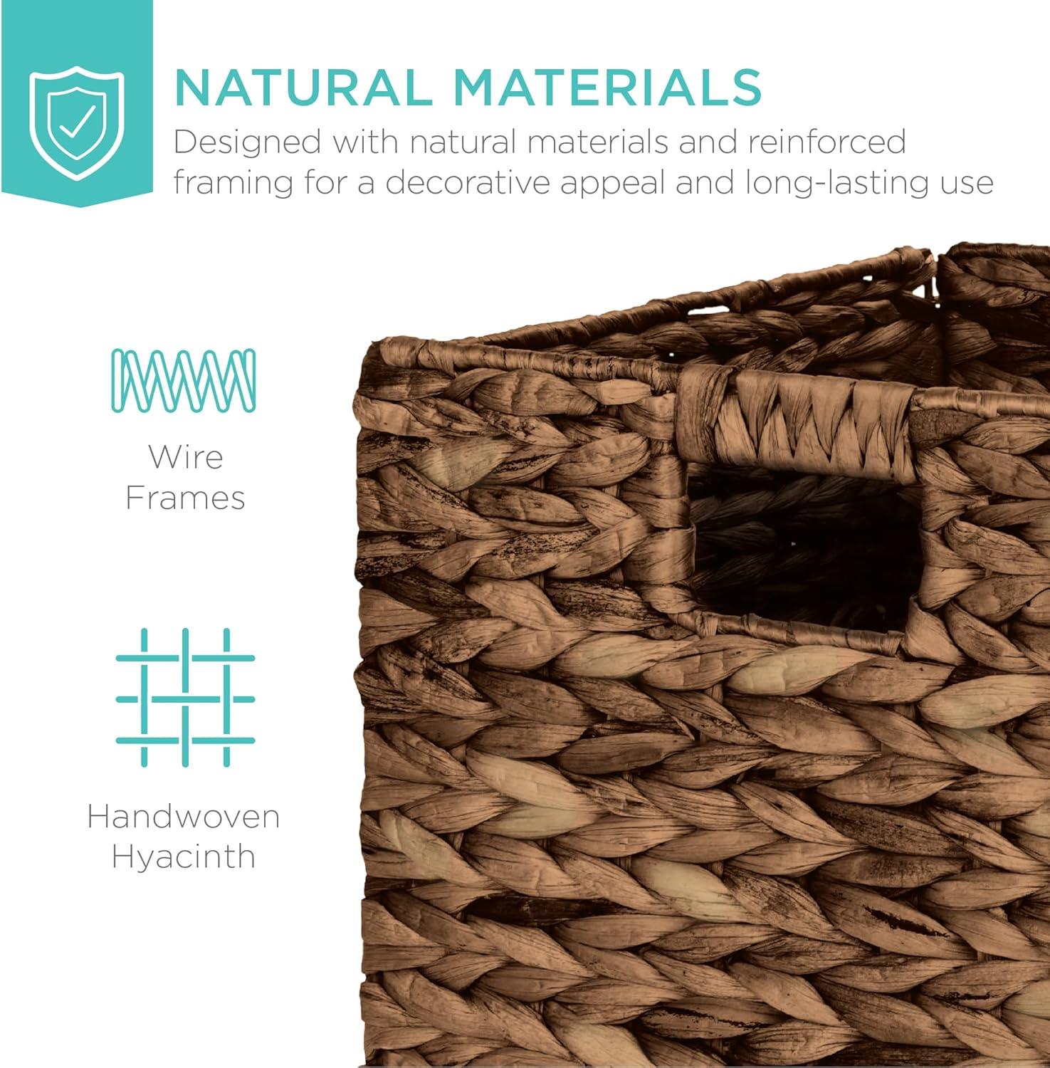 Best Choice Products 12x12in Hyacinth Baskets, Rustic Set Of 5 Multipurpose Collapsible Storage Organizer, Handwoven Laundry Totes for Bedroom, Living Room, Shelves w/Inserts – Brown(Chestnut)