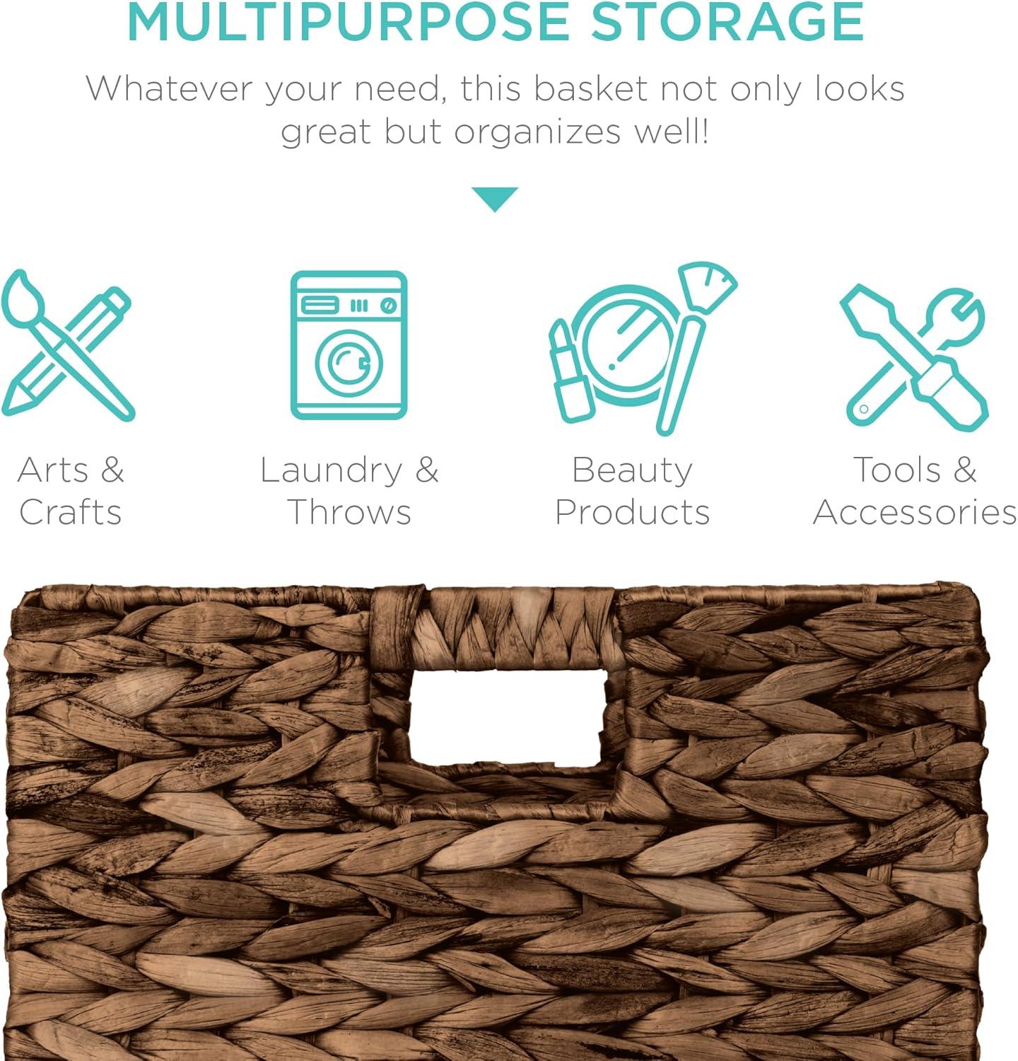 Best Choice Products 12x12in Hyacinth Baskets, Rustic Set Of 5 Multipurpose Collapsible Storage Organizer, Handwoven Laundry Totes for Bedroom, Living Room, Shelves w/Inserts – Brown(Brown)