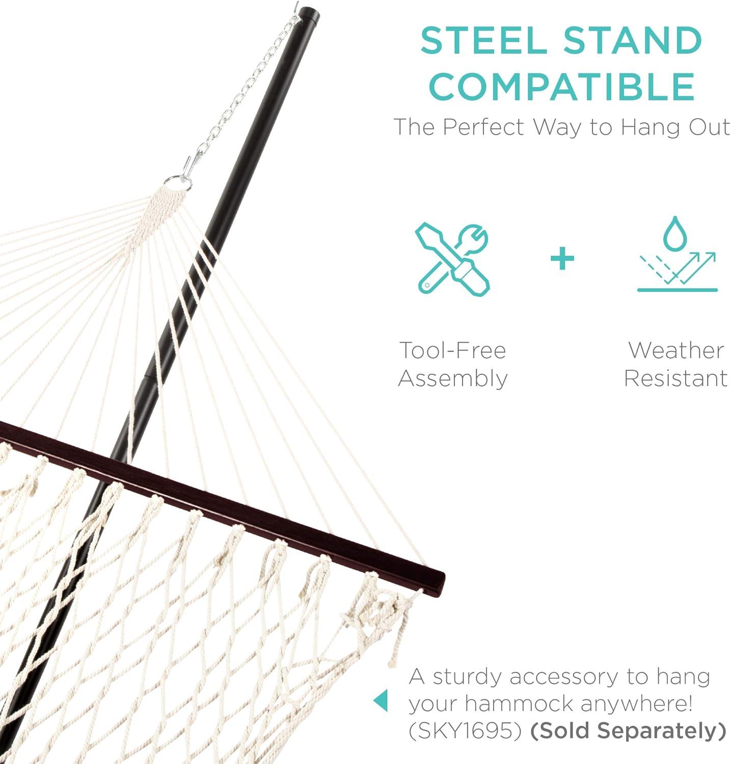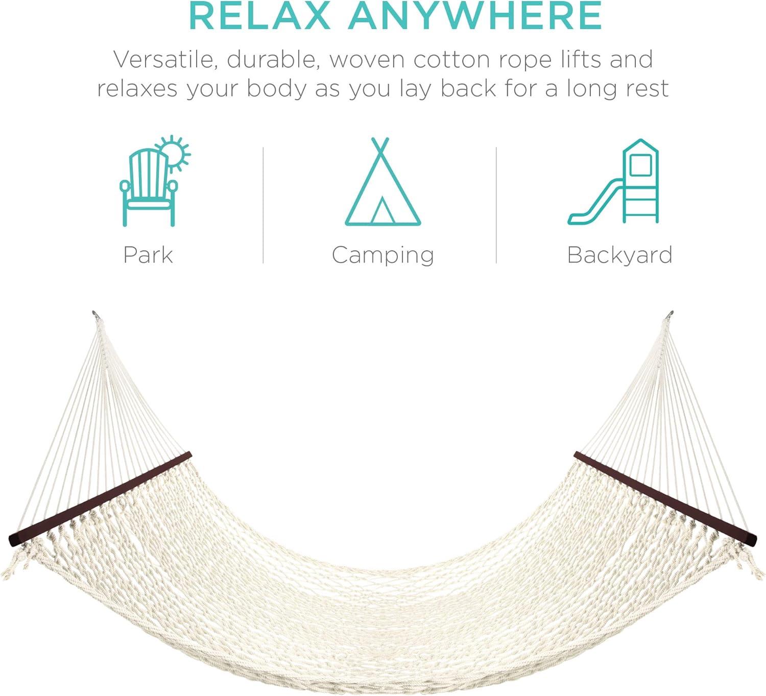 DURABLE COMFORT: 900 feet of extra thick, twisted cotton, with finished hardwood spreader bars, and reinforced metal rings make for a relaxation solution that's built-to-last