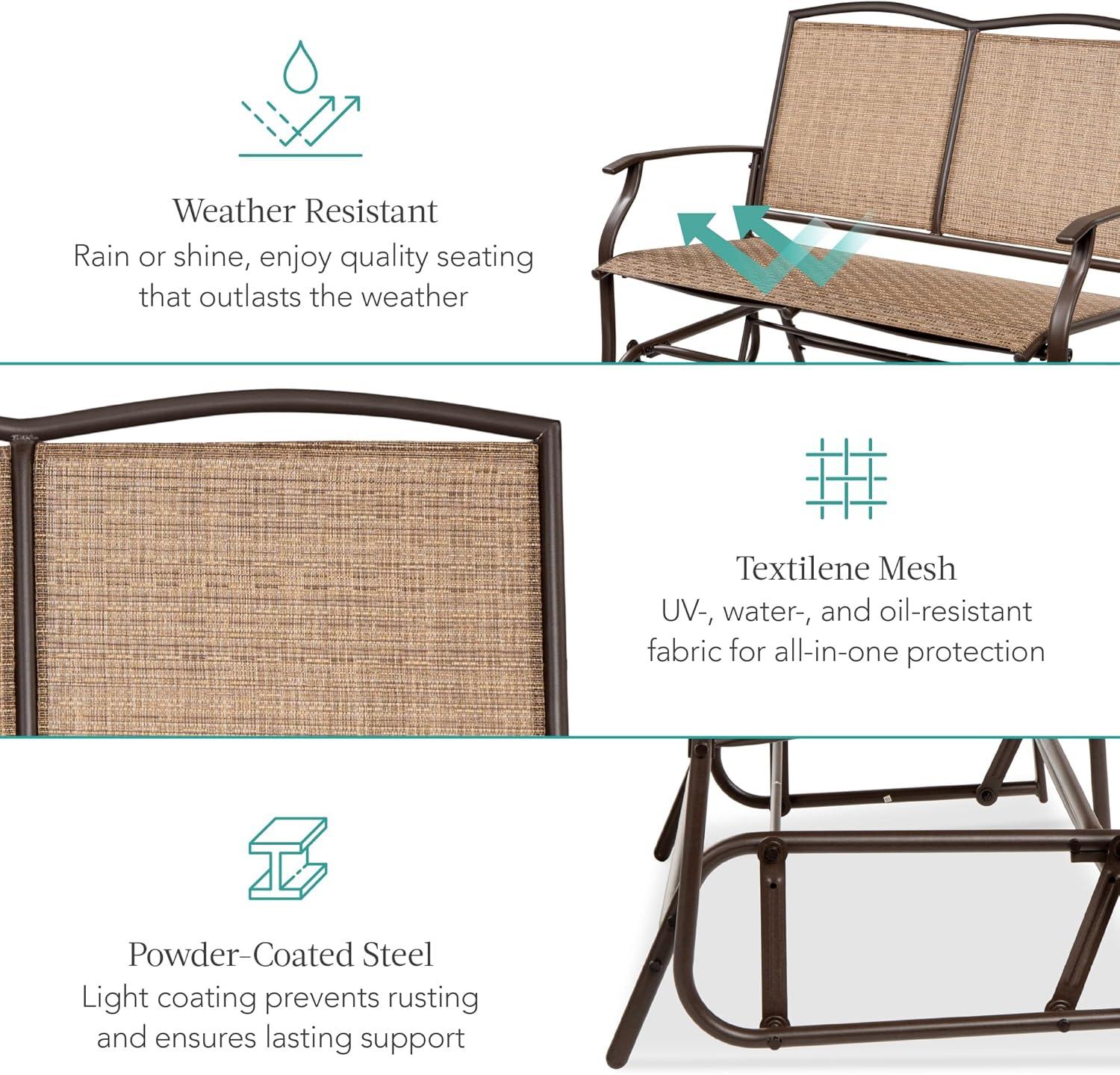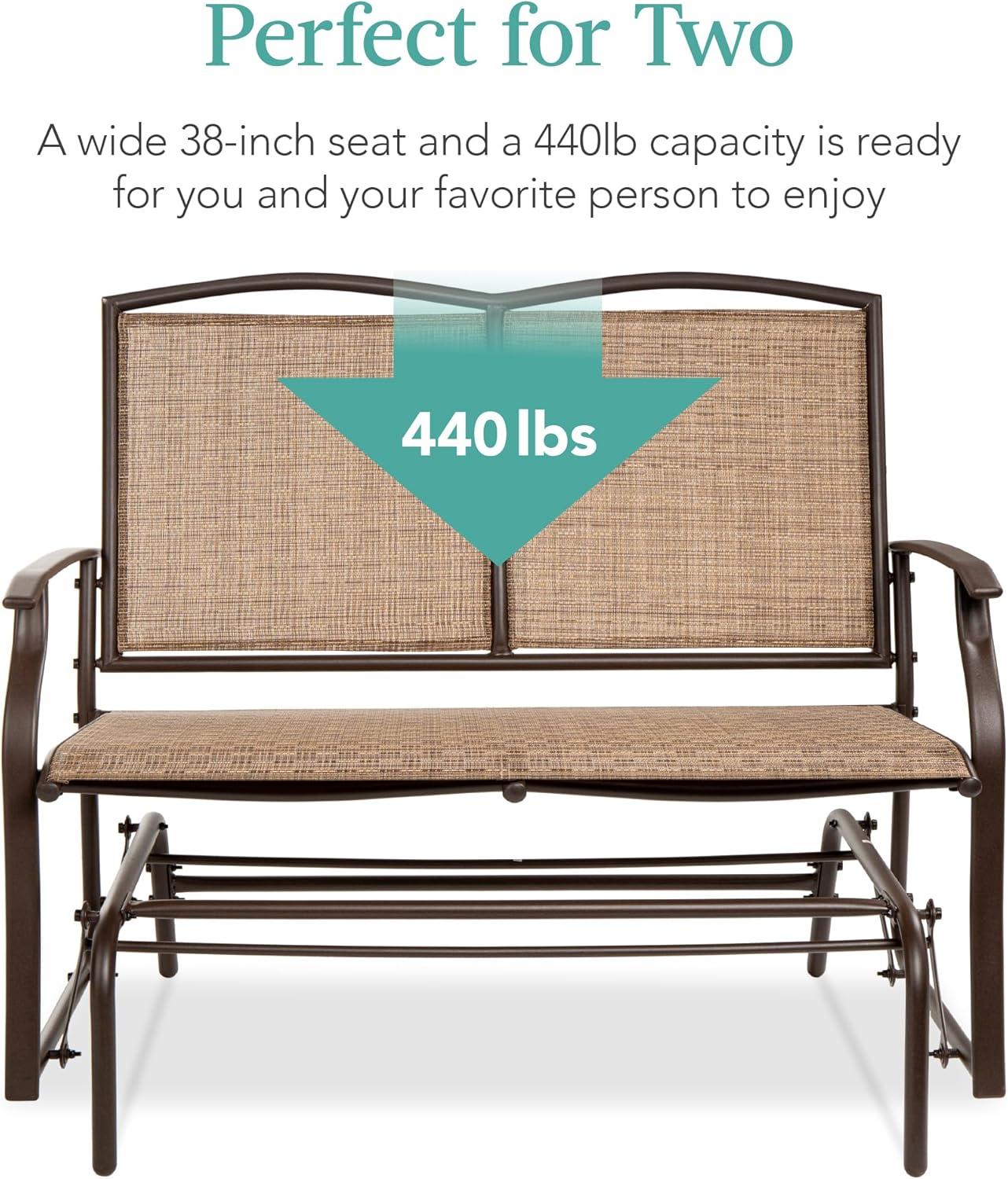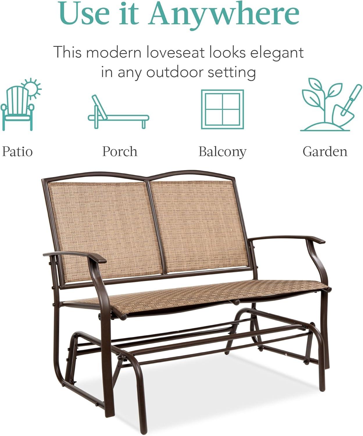 Best Choice Products 2-Person Outdoor Patio Swing Glider Steel Bench Loveseat Rocker for Deck, Porch w/Textilene Fabric, Steel Frame - Brown(Brown)