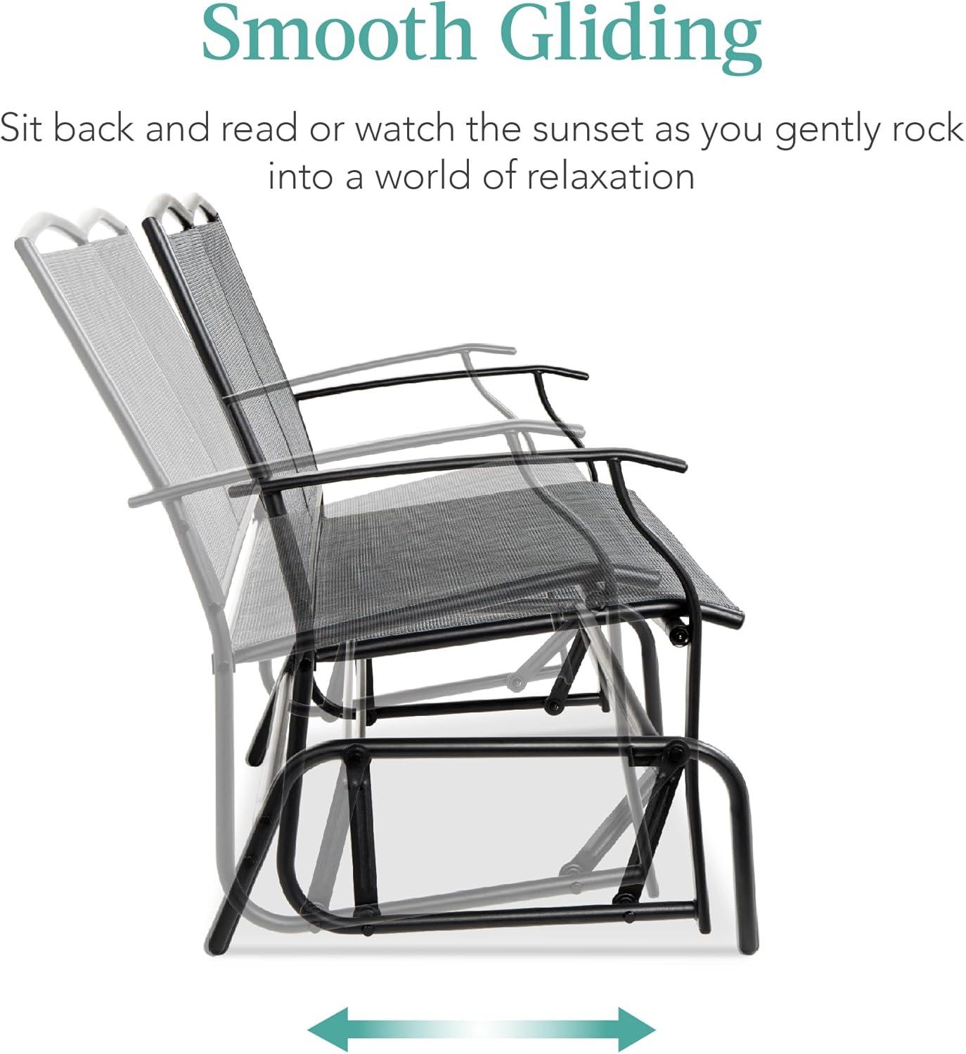 Best Choice Products 2-Person Outdoor Patio Swing Glider Steel Bench Loveseat Rocker for Deck, Porch w/Textilene Fabric, Steel Frame – Brown(Grey)