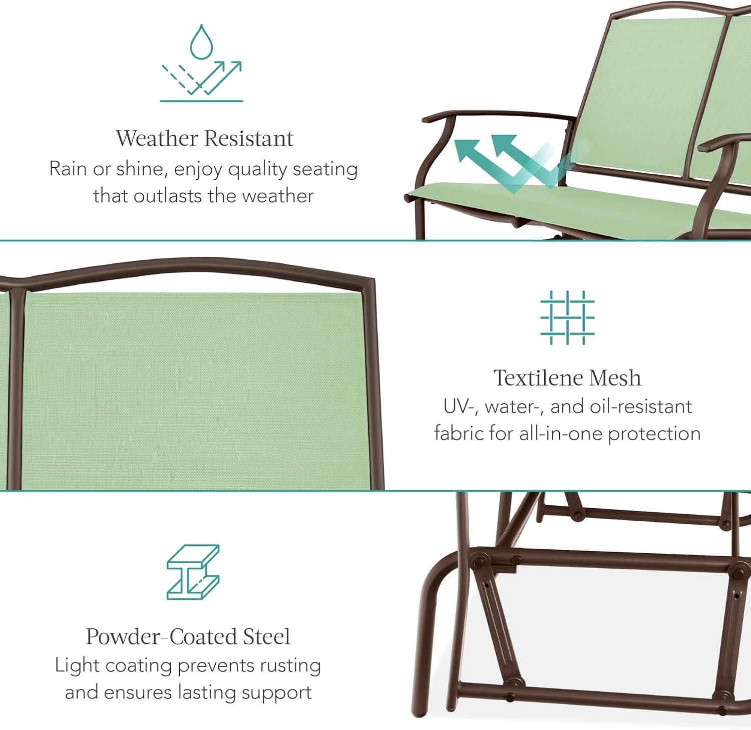 Best Choice Products 2-Person Outdoor Patio Swing Glider Steel Bench Loveseat Rocker for Deck, Porch w/Textilene Fabric, Steel Frame - Brown(Sage Green/Brown)