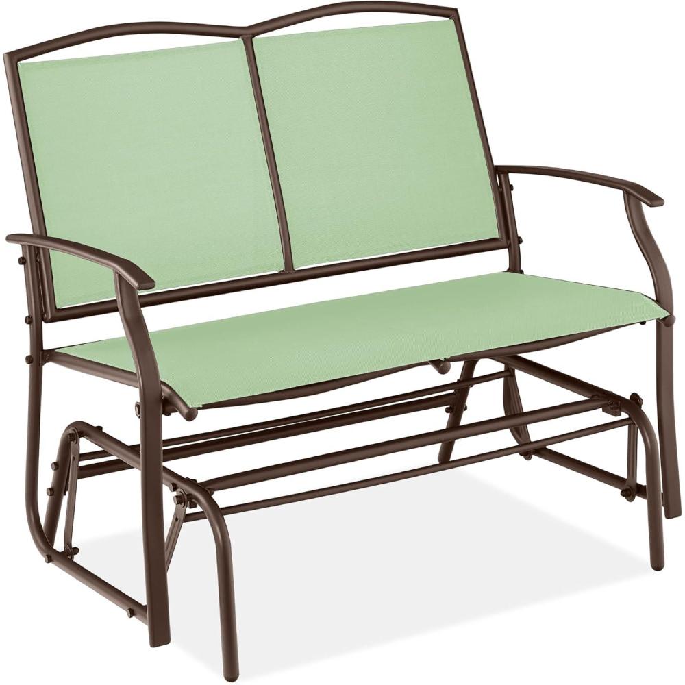 Best Choice Products 2-Person Outdoor Patio Swing Glider Steel Bench Loveseat Rocker for Deck, Porch w/Textilene Fabric, Steel Frame – Brown(Sage Green/Brown)