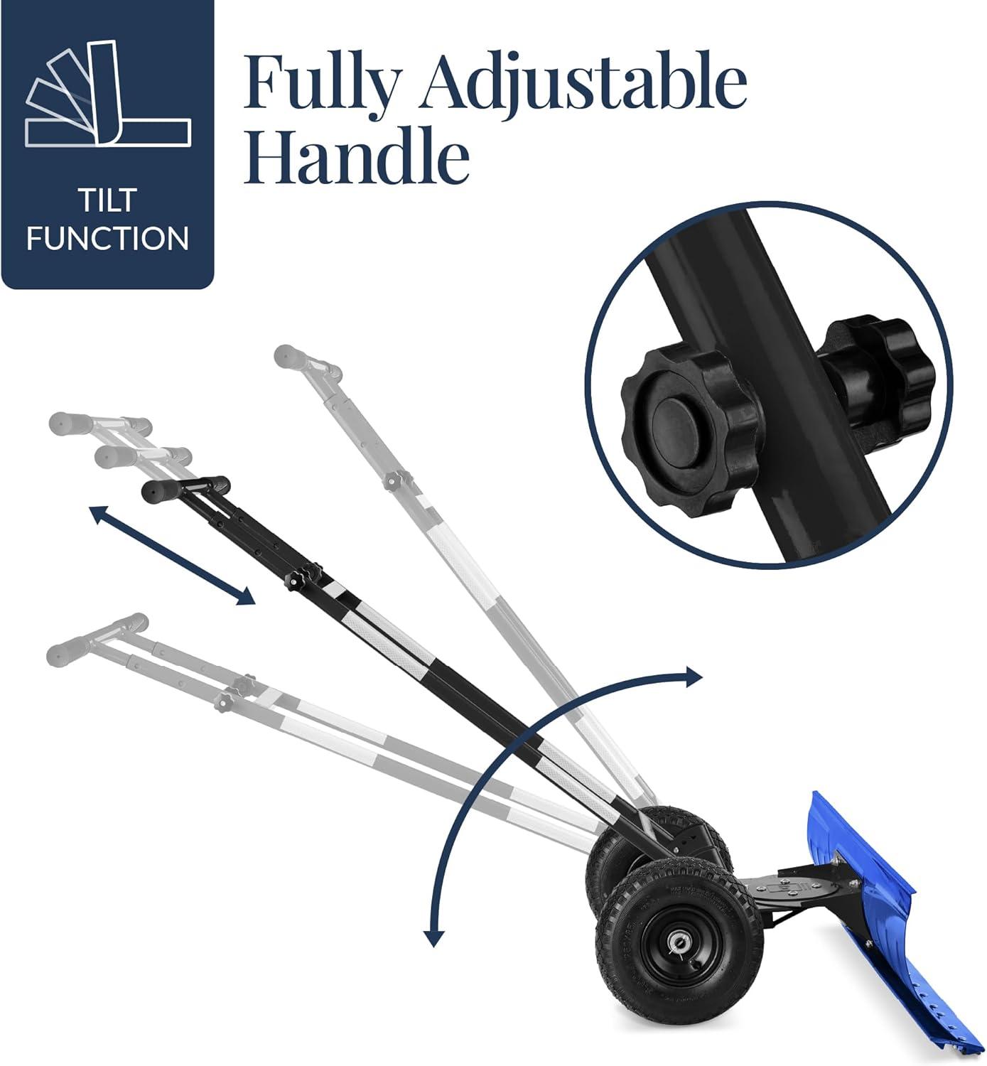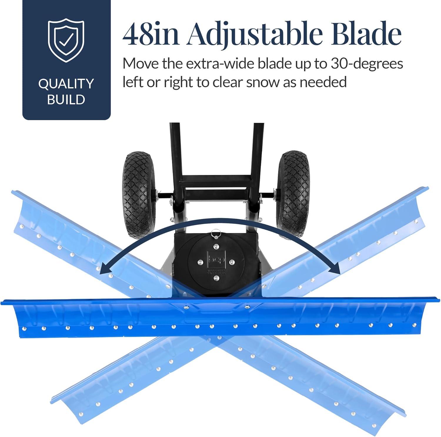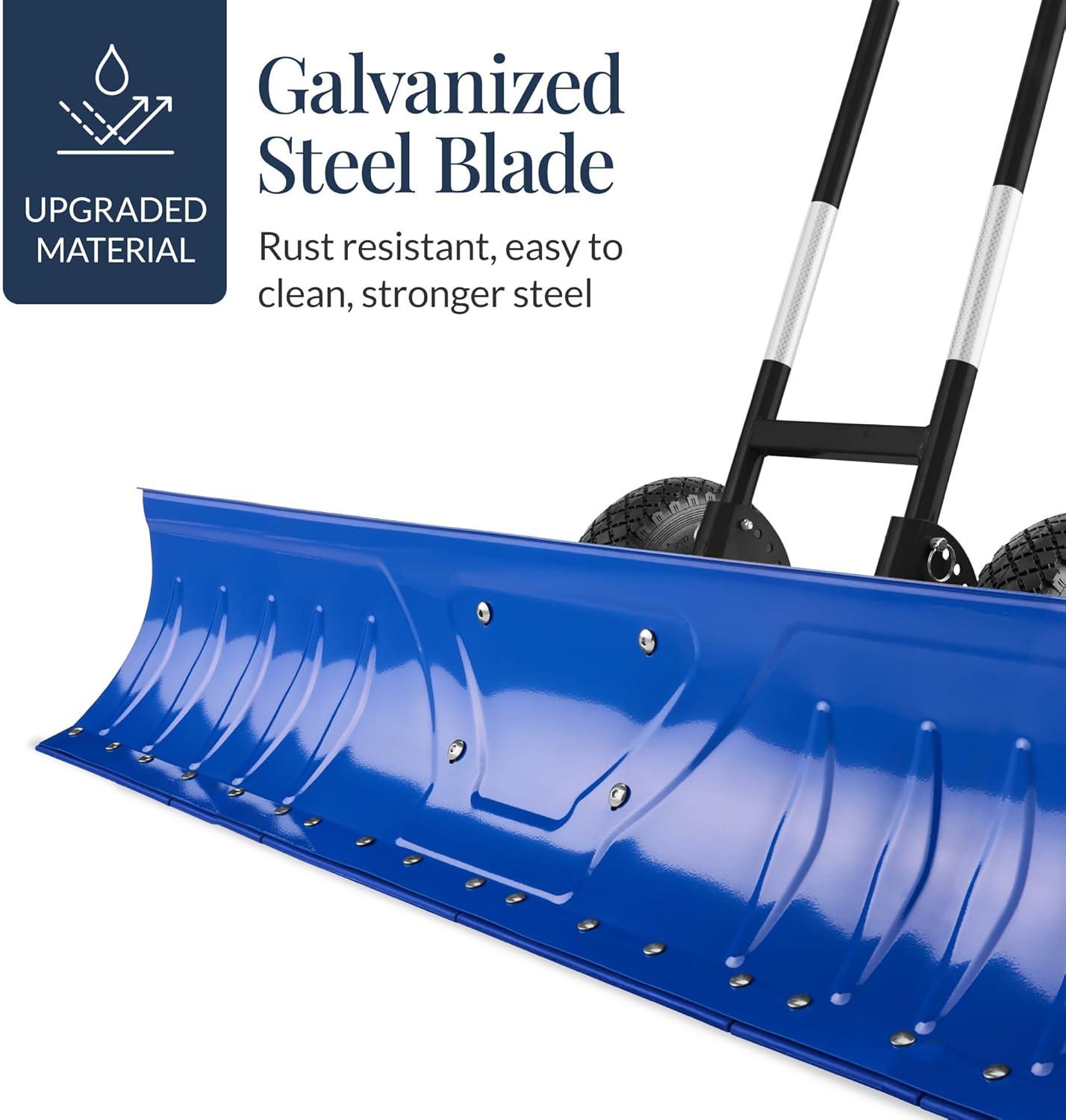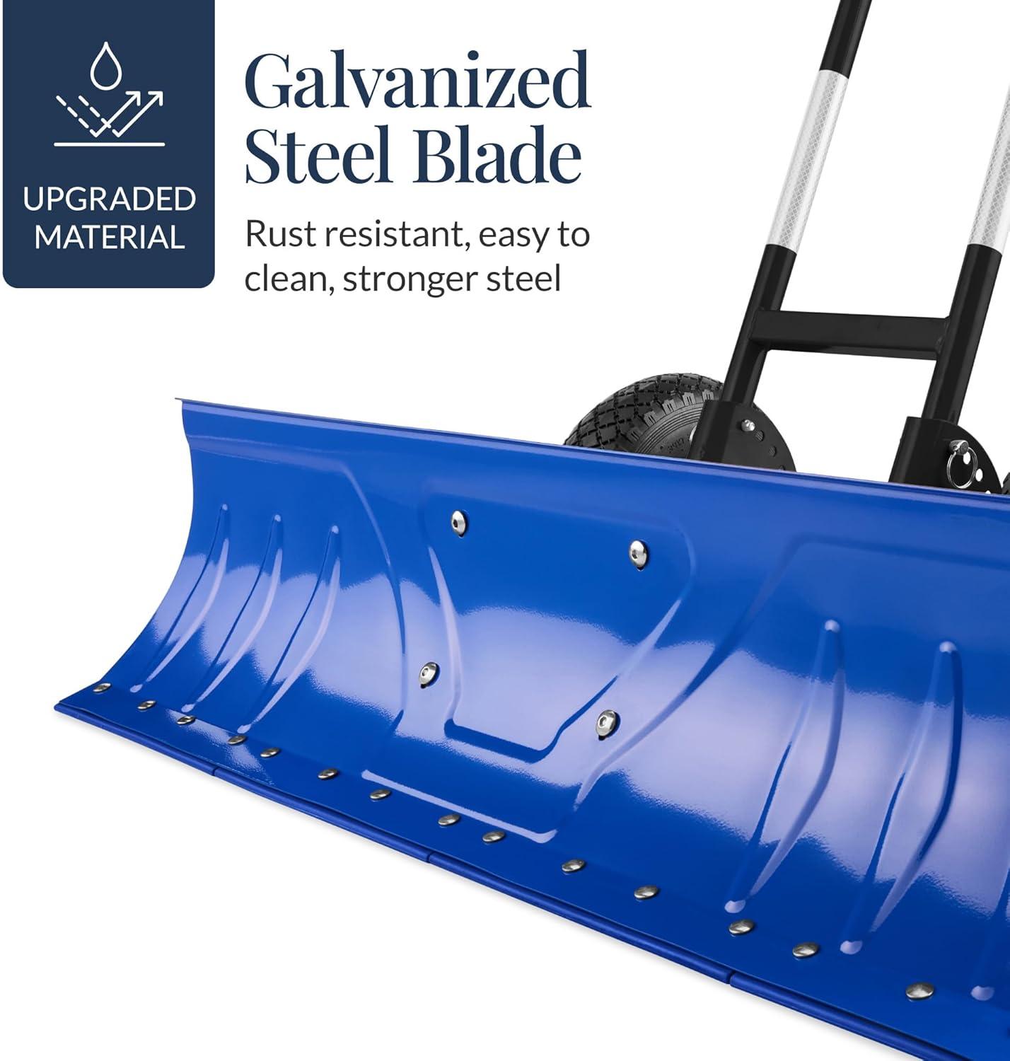 Best Choice Products 24in Heavy-Duty Snow Pusher Hand Plow for Snow Removal, Ergonomic Handle, Easy Storage – Black(Blue)