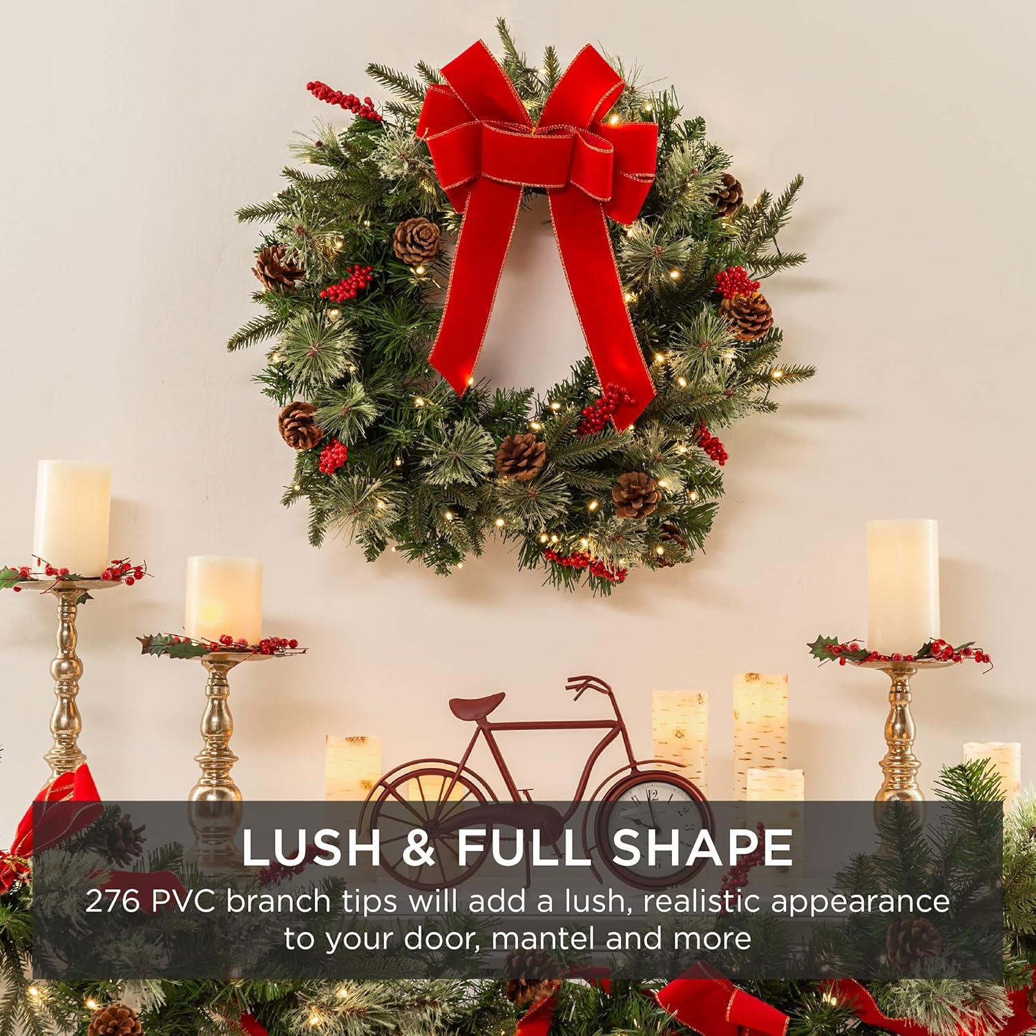 CONVENIENT SETUP: Arrives fully assembled to give you a festive accent in as little as 10 minutes; unpack the wreath, install the batteries, fluff, and enjoy!