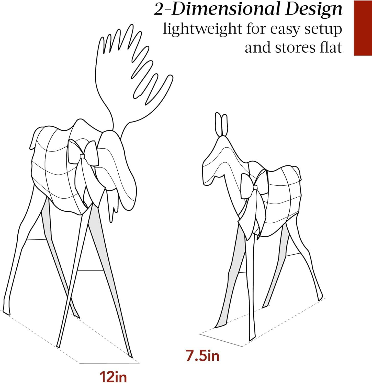 ELEGANT DETAILS: Celebrate the season with a heartwarming snapshot of a moose family, intricately designed with their matching, shimmering bows and fabric; BULL DIMENSIONS: 40″(L) x 12″(W) x 48″(H); CALF DIMENSIONS: 22.5″(L) x 7.5″(W) x 24″(H); STORAGE BAG: 27″(L) x 15″(W)