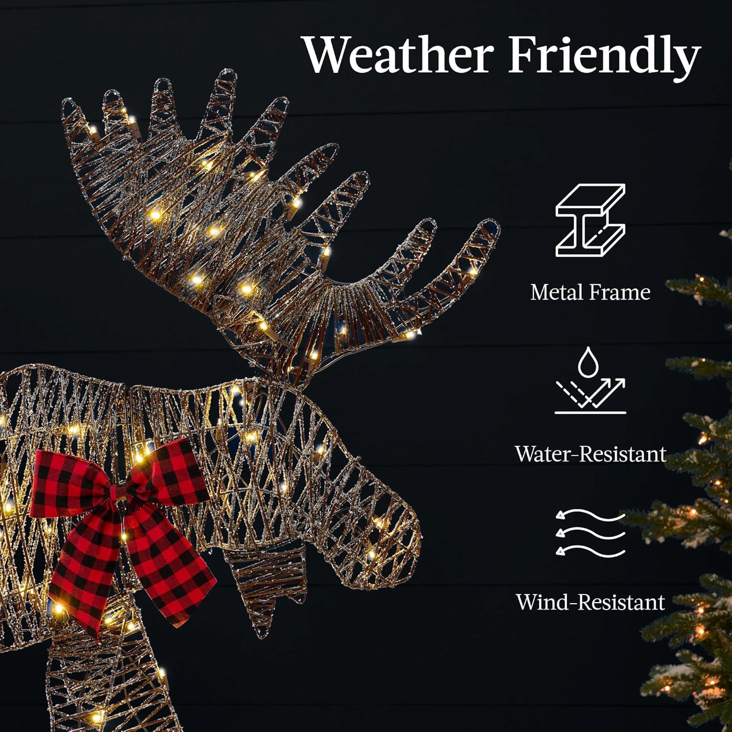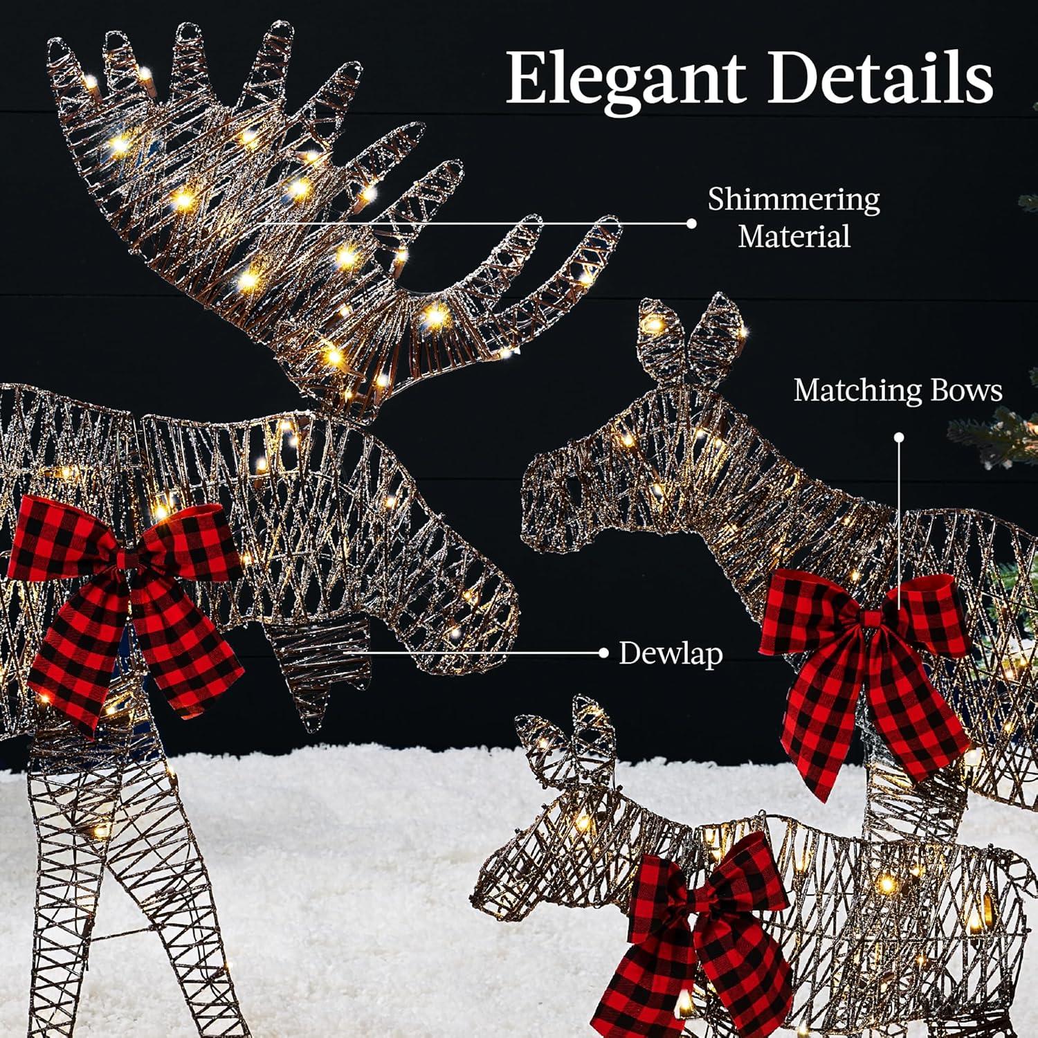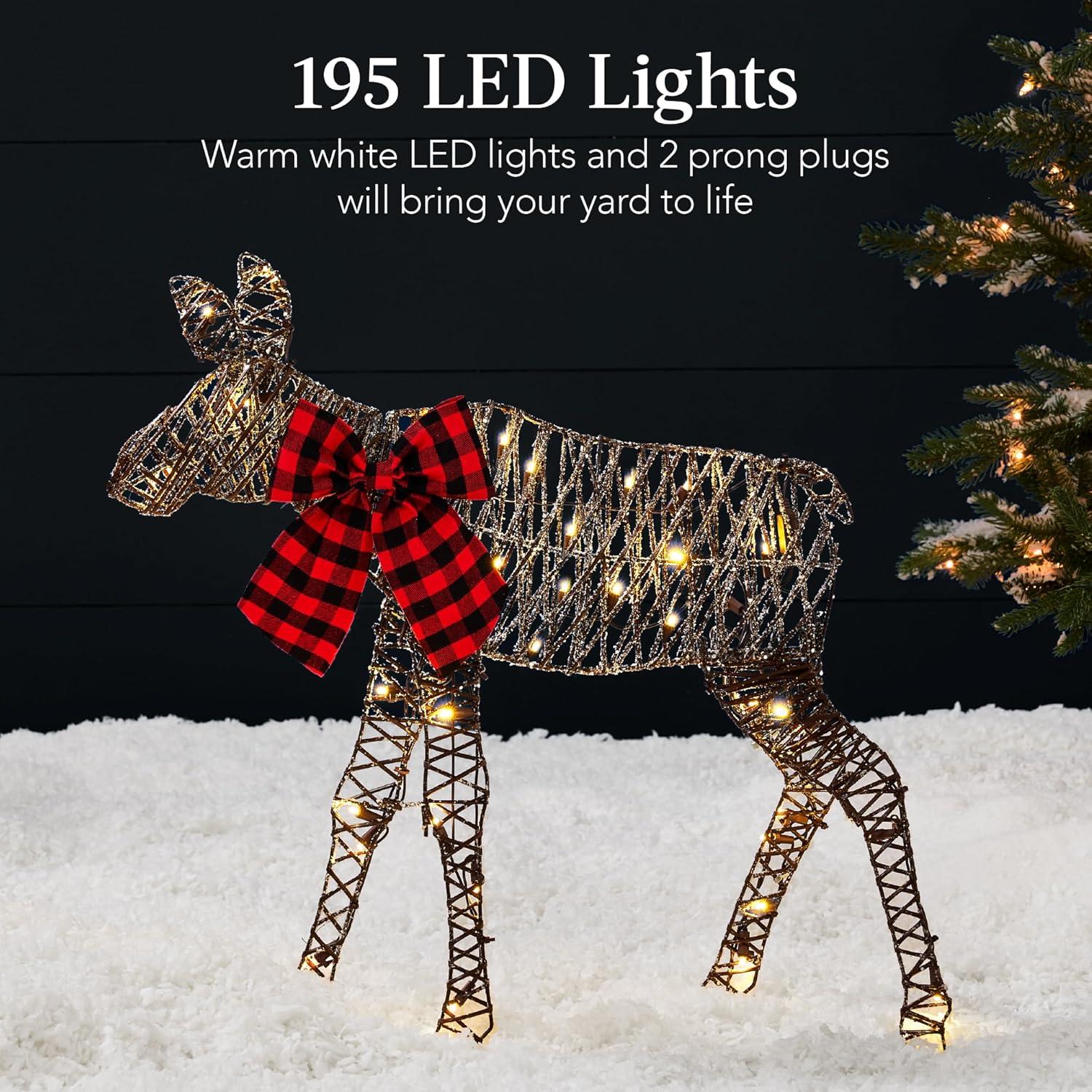 Best Choice Products 2D Moose Family Outdoor 2Pc Christmas Yard Décor, 4ft Lighted Yard Set Prelit All-Weather w/ 125 LEDs, Ground Stakes – Gold(Rattan – 3-Piece)