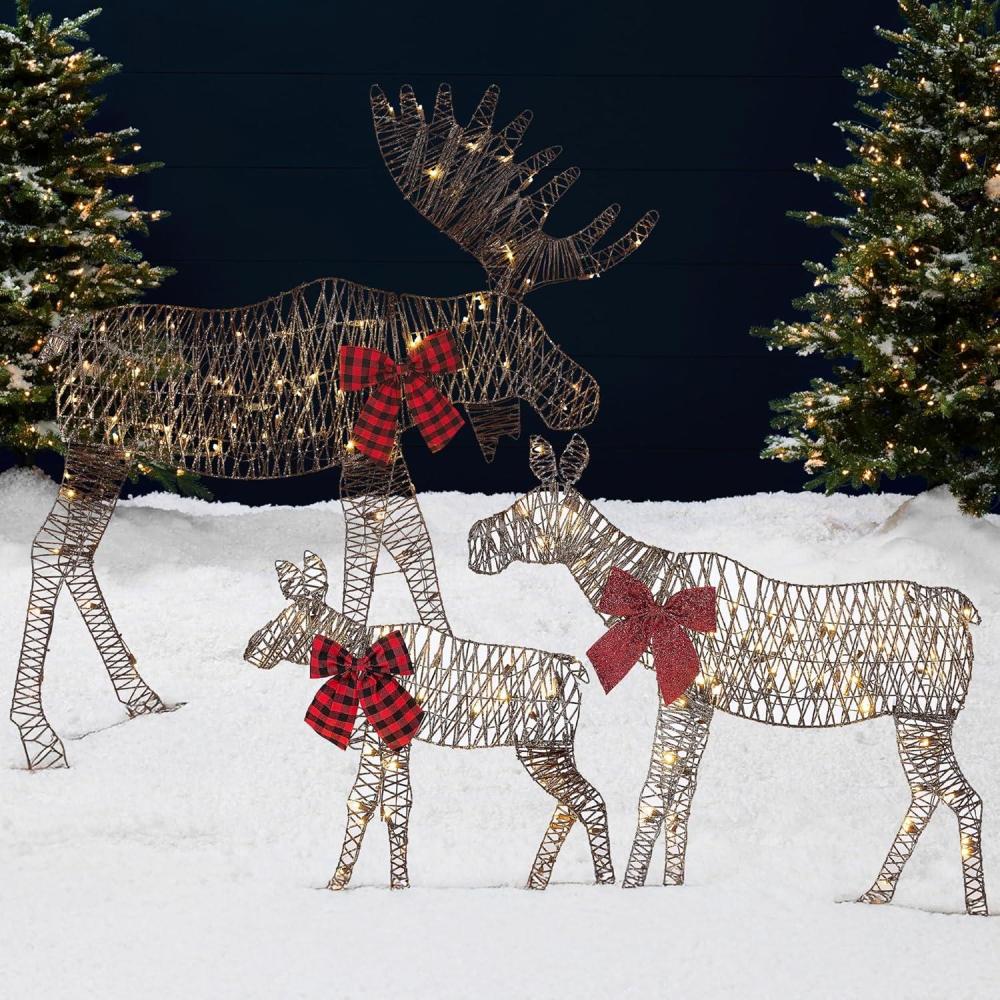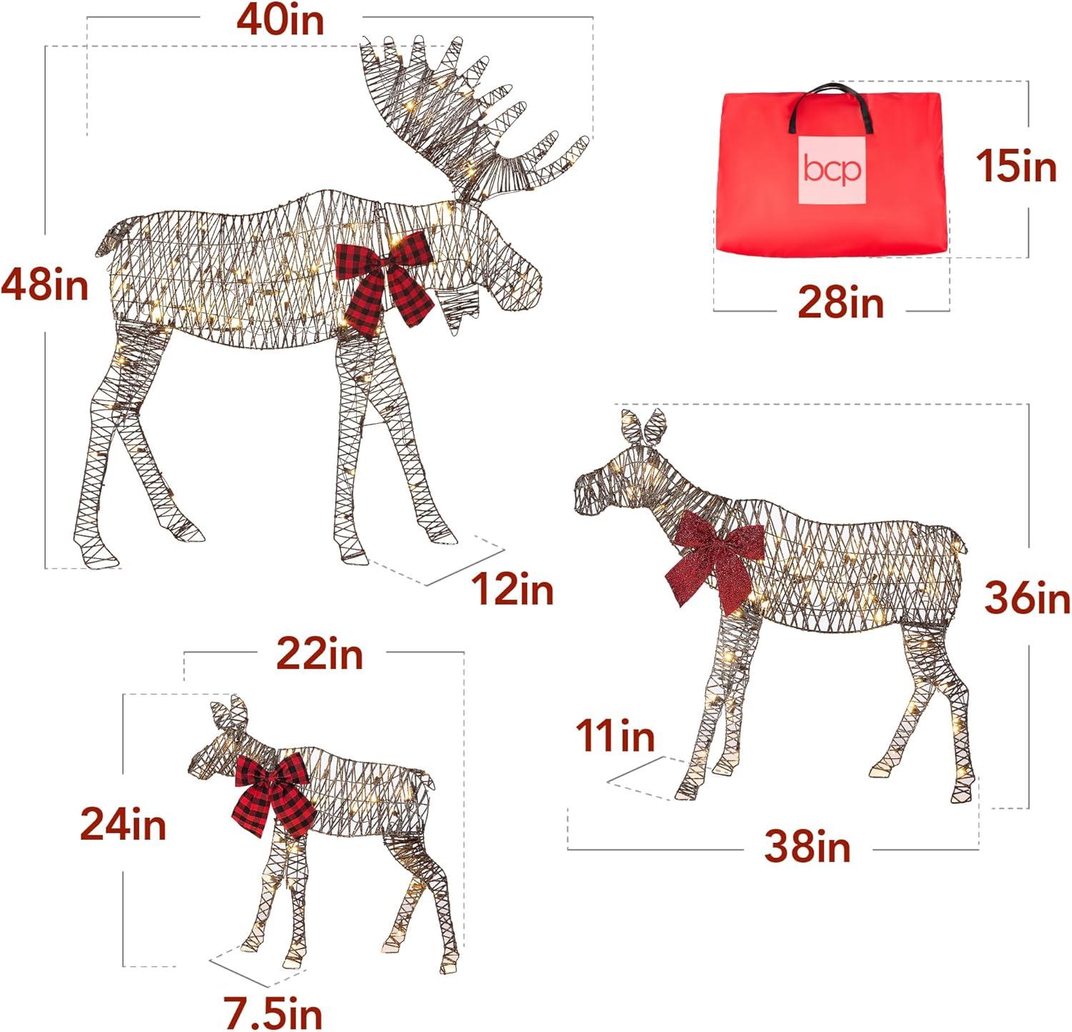 ELEGANT DETAILS: Celebrate the season with a heartwarming snapshot of a moose family, intricately designed with their matching, shimmering bows and fabric; BULL DIMENSIONS: 40″(L) x 12″(W) x 48″(H); CALF DIMENSIONS: 22.5″(L) x 7.5″(W) x 24″(H); STORAGE BAG: 27″(L) x 15″(W)