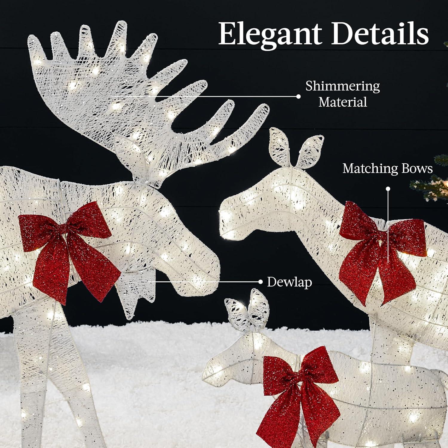 Best Choice Products 2D Moose Family Outdoor 2Pc Christmas Yard Décor, 4ft Lighted Yard Set Prelit All-Weather w/ 125 LEDs, Ground Stakes – Gold(White – 3-Piece)