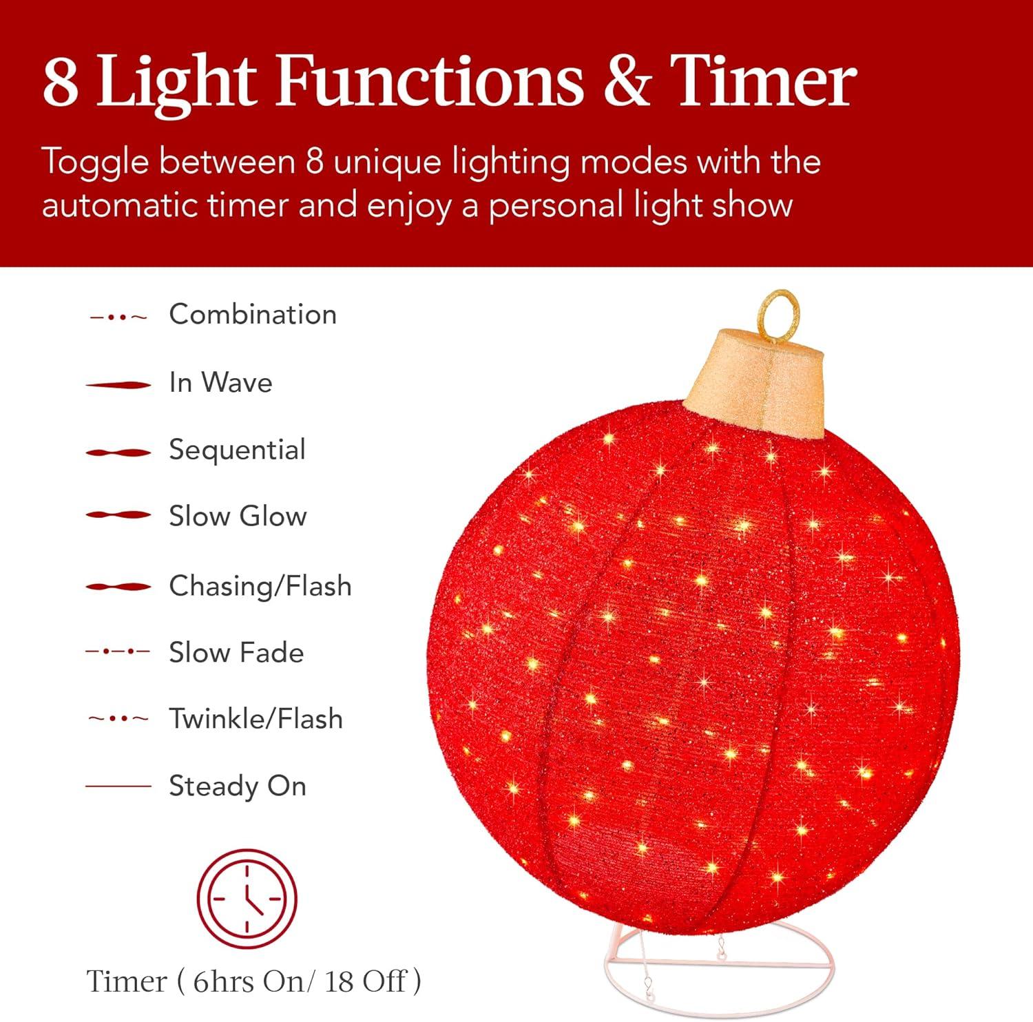 Best Choice Products 2pc Lighted Pop-Up Outdoor Christmas Ornament Set, Holiday Ball Decoration w/ 220 LED Lights, 8 Light Functions – Red/Gold(Red /Gold – Extra Large)