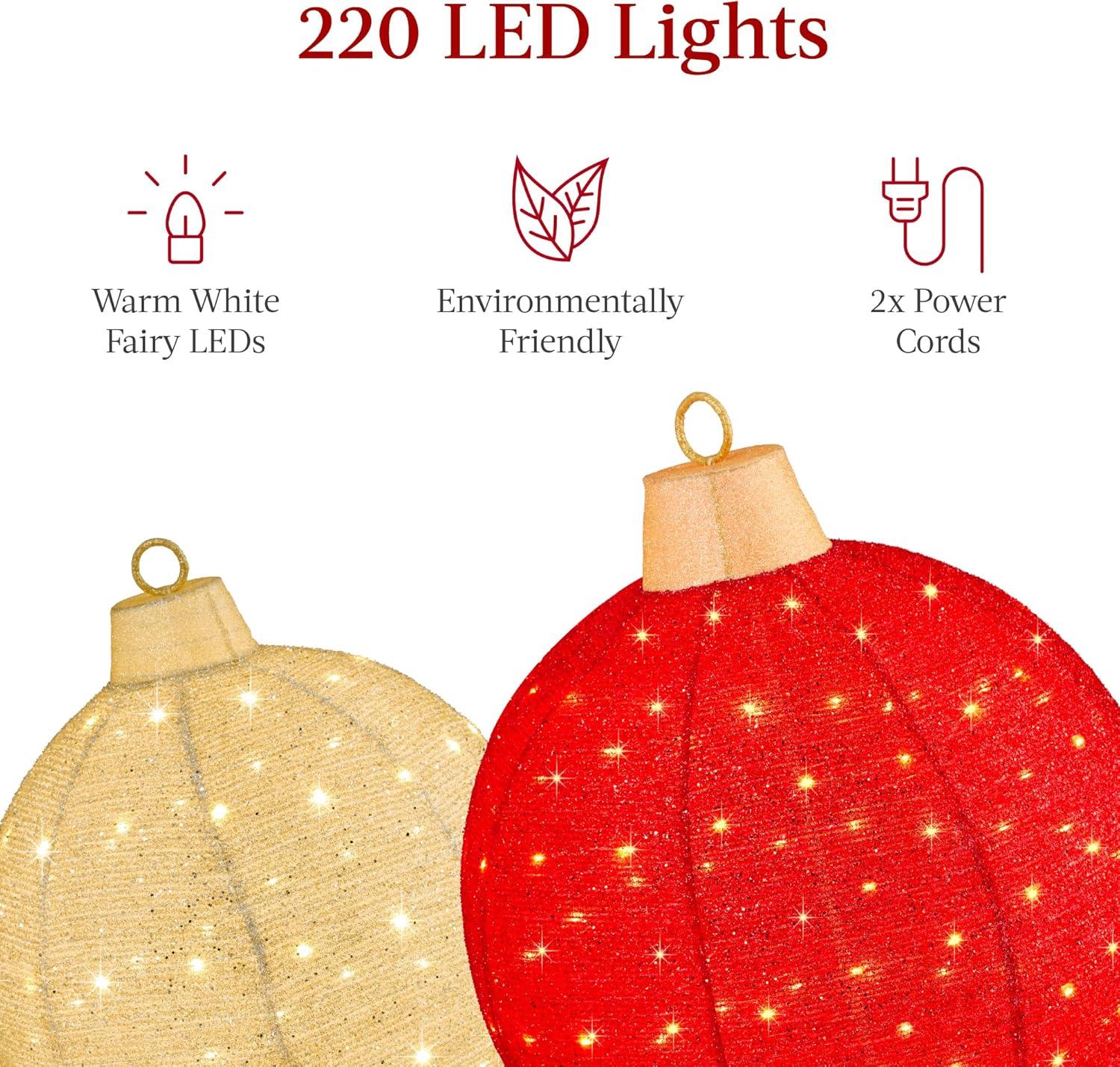 Best Choice Products 2pc Lighted Pop-Up Outdoor Christmas Ornament Set, Holiday Ball Decoration w/ 220 LED Lights, 8 Light Functions - Red/Gold(Red /Gold - Extra Large)
