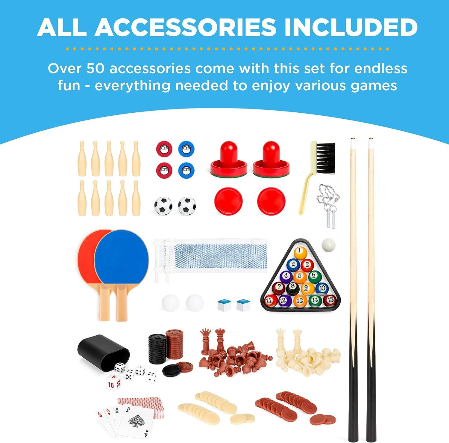 ALL ACCESSORIES INCLUDED: This set comes complete with over 50 accessories, so enjoyable competition is at your fingertips in a variety of ways!; OVERALL DIMENSIONS: 48″(L) x 24″(W) x 30.5″(H)
