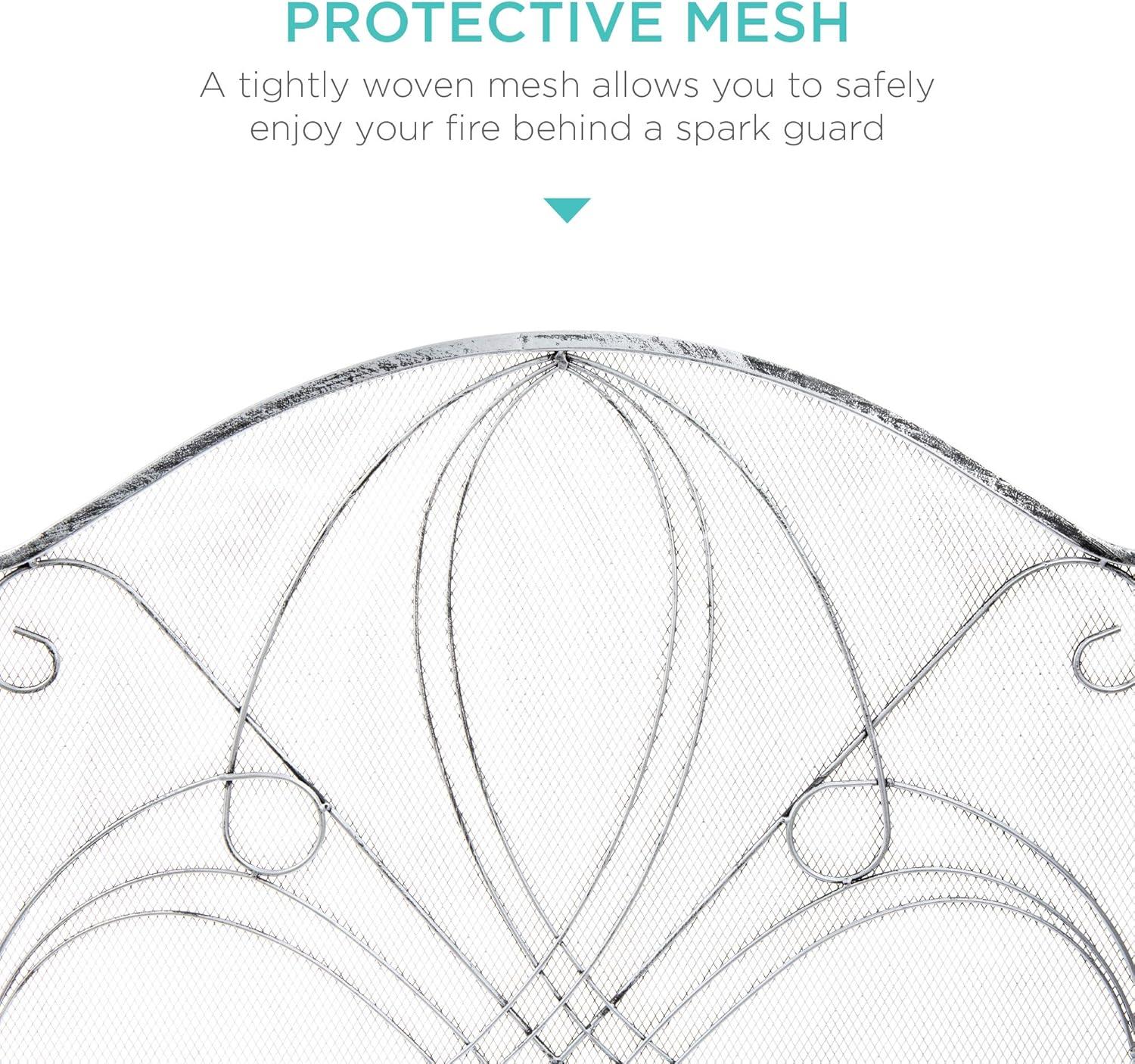 Best Choice Products 3-Panel 55x33in Solid Wrought Iron See-Through Metal Fireplace Screen, Spark Guard Safety Protector w/Decorative Scroll – Copper(Pewter)