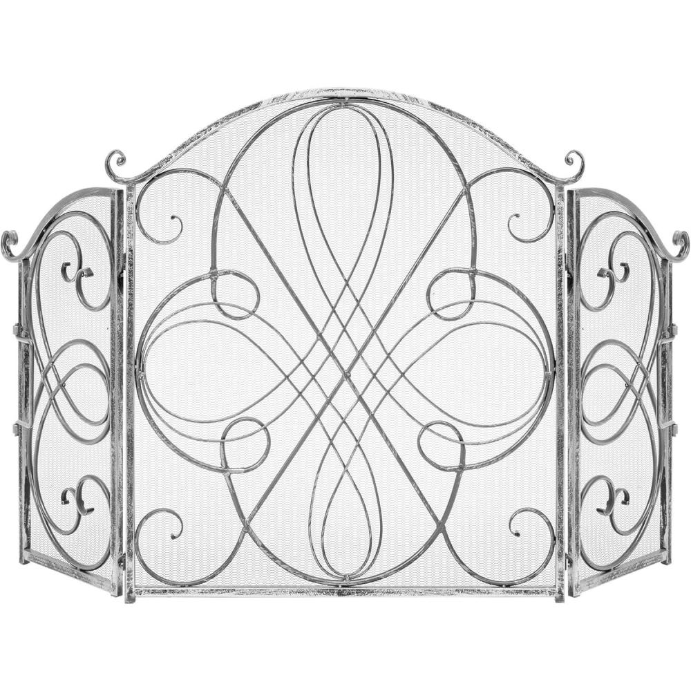 imageBest Choice Products 3Panel 55x33in Solid Wrought Iron SeeThrough Metal Fireplace Screen Spark Guard Safety Protector wDecorative Scroll  CopperPewter