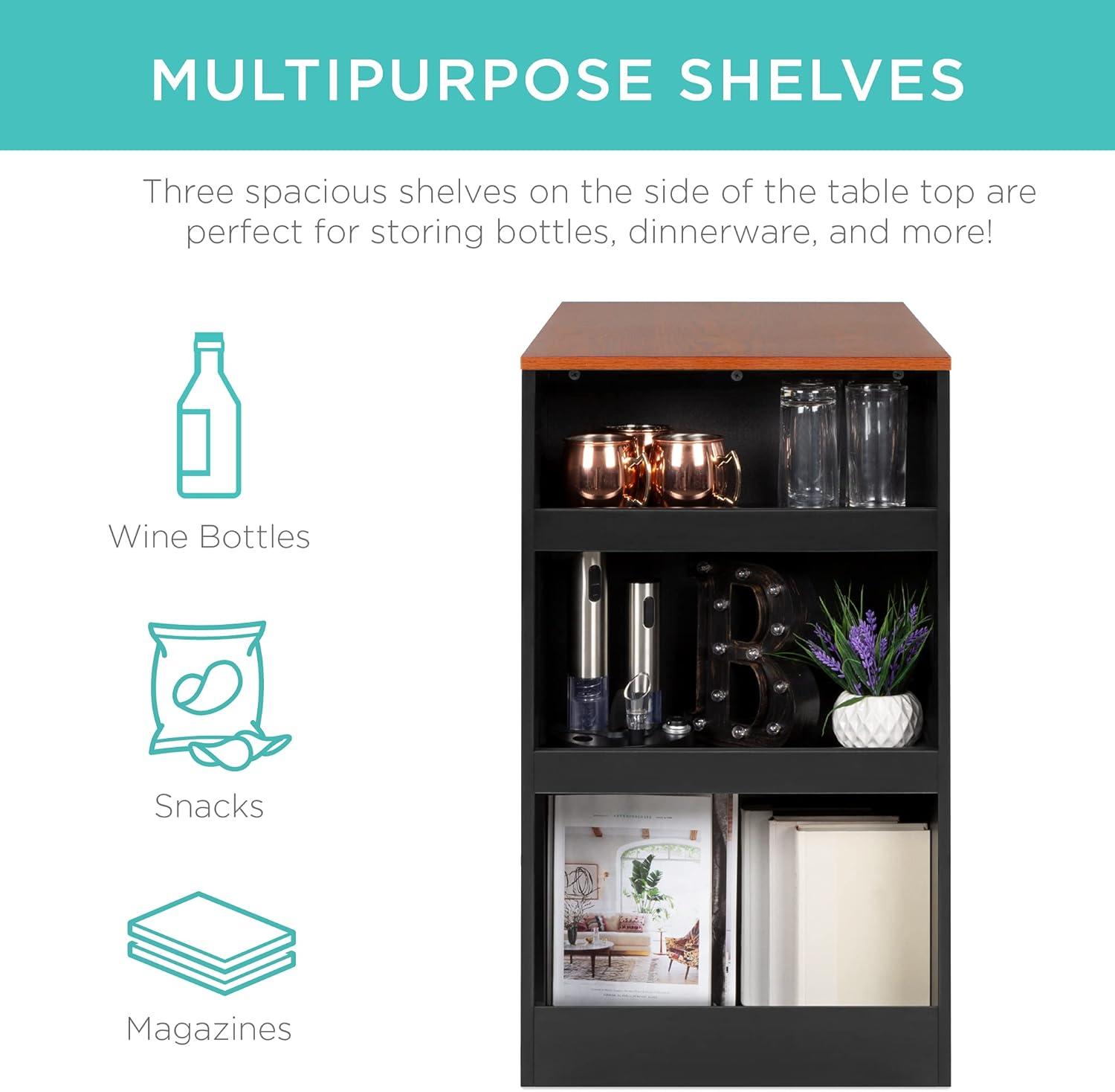 OPTIMAL TABLE STORAGE: 3 deep, multipurpose shelves provide a convenient, spacious location to store dinnerware, cookbooks, bottles, and more!