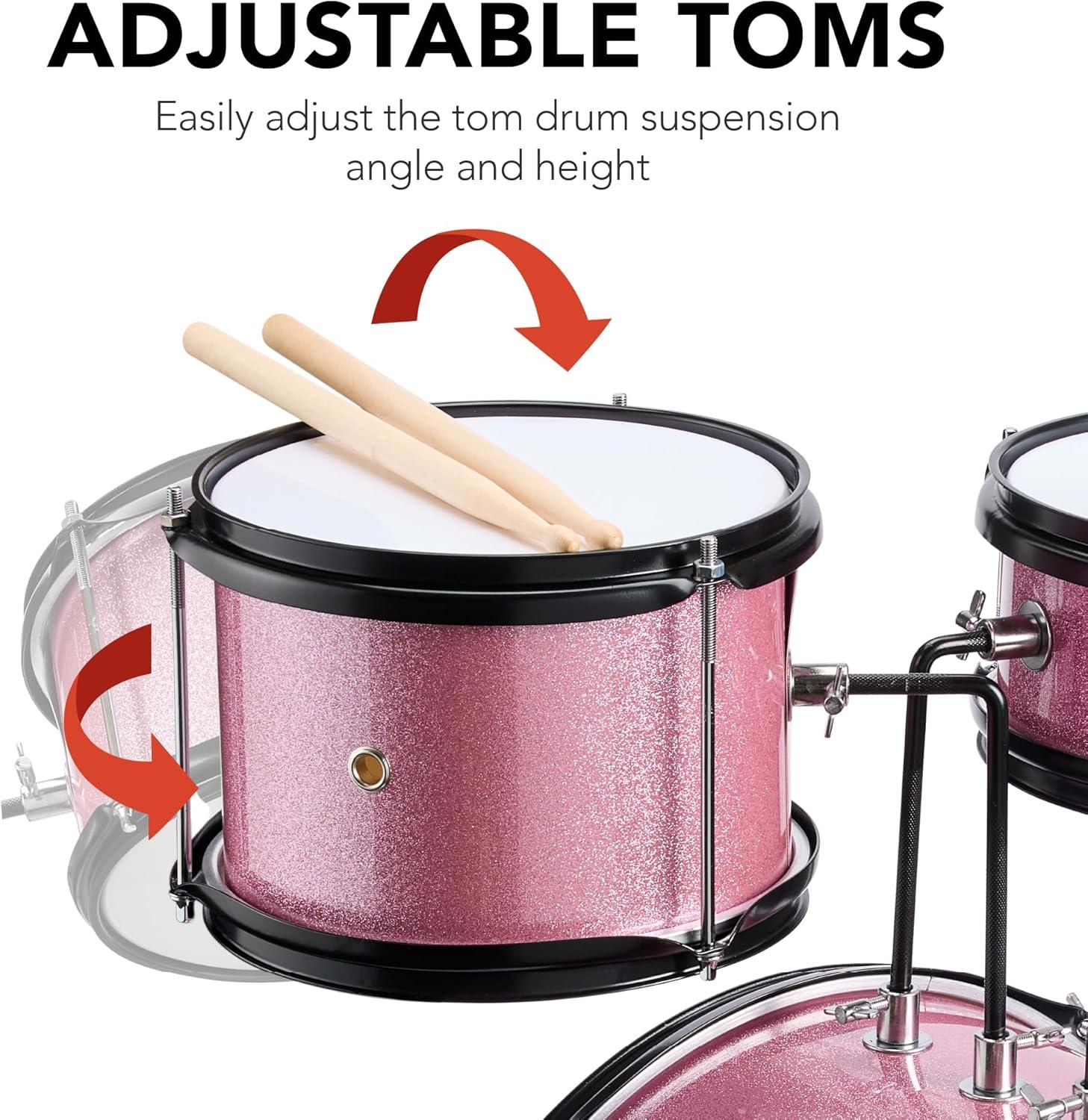 Best Choice Products 3-Piece Beginner Drum Set for Kids Juniors, w/Throne Stool, Cymbal, Drum Sticks, Bass Drum Pedal, 2 Toms - Blue(Pink Sparkle)