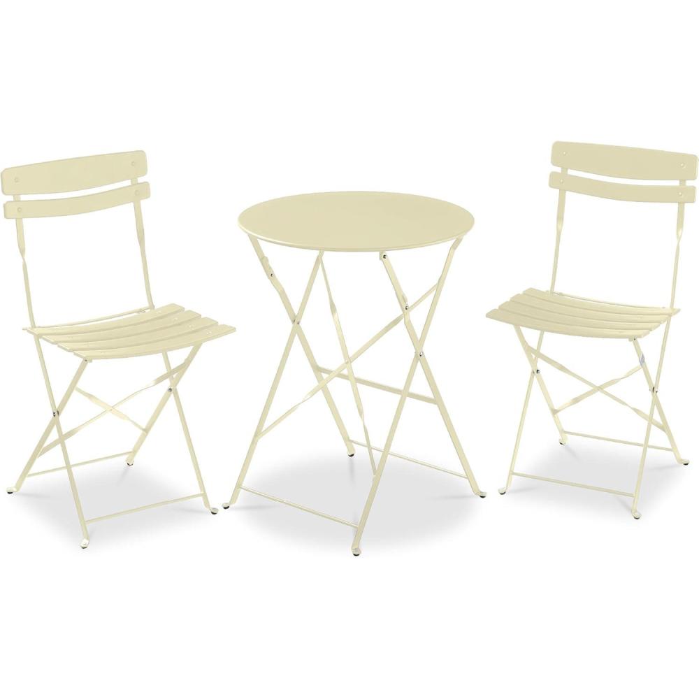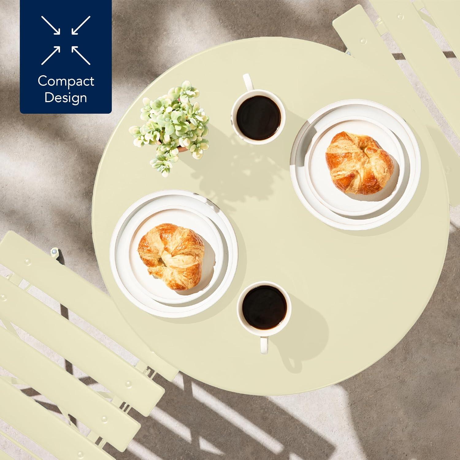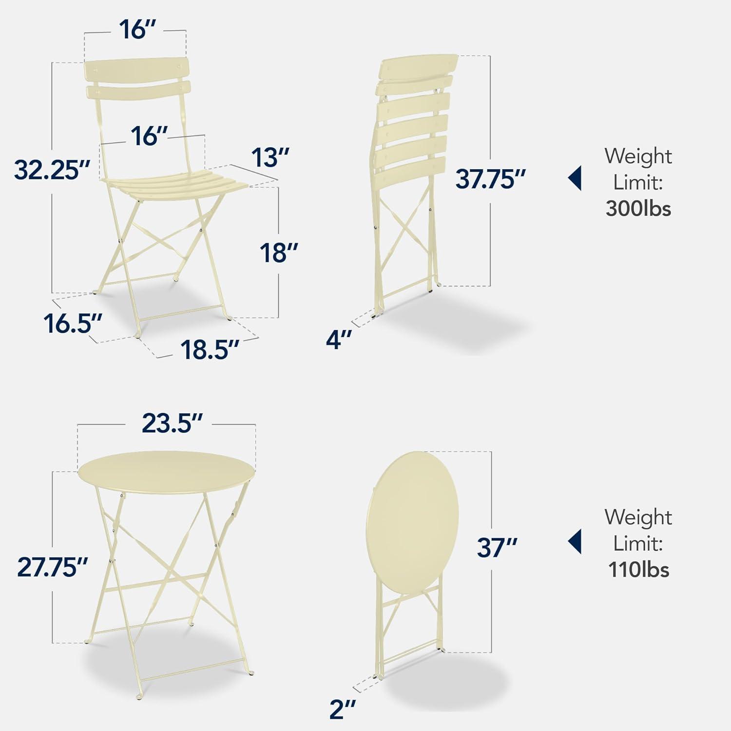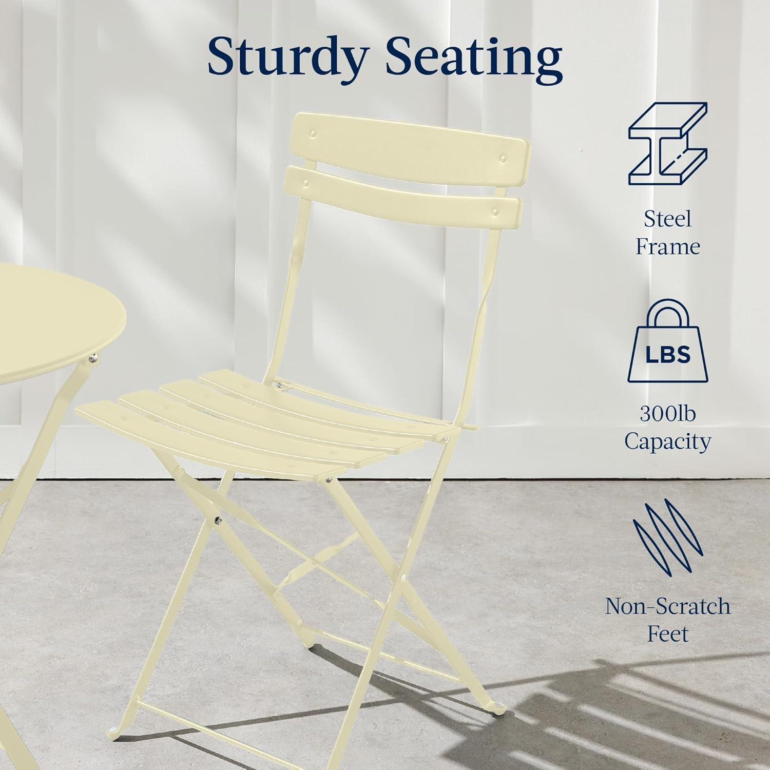 Best Choice Products 3-Piece Bistro Set, Space Saving Folding Design, Solid Steel, Outdoor Patio Furniture Set w/ 2 Chairs, Bistro Table - Sage(Cream)