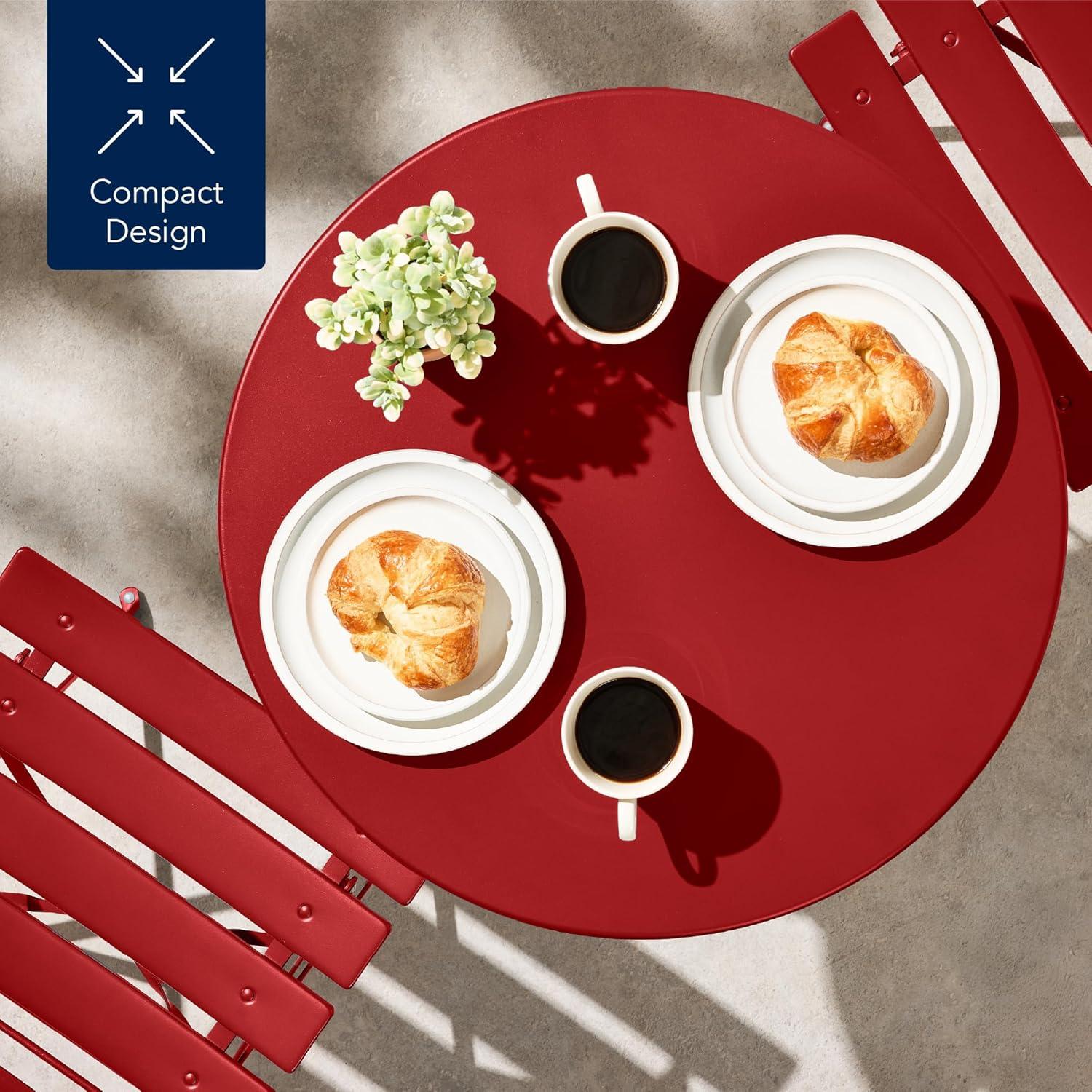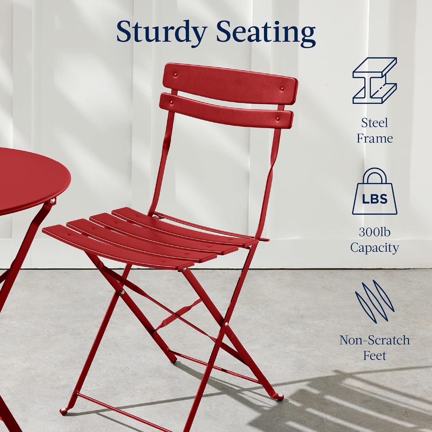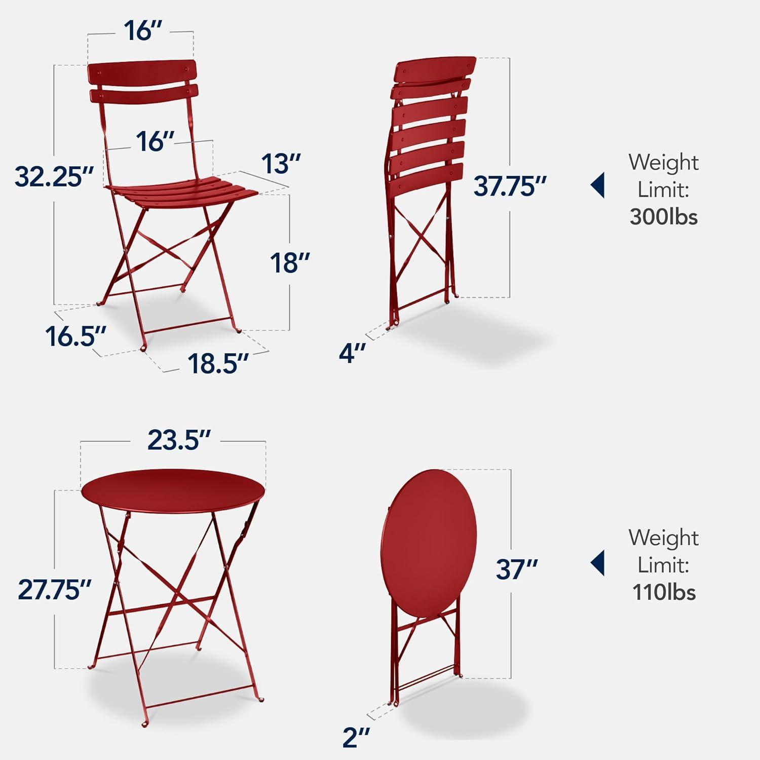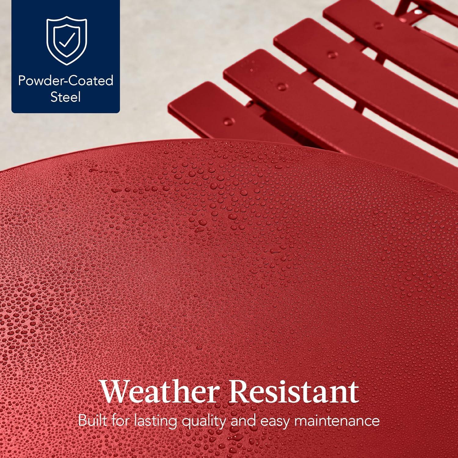 Best Choice Products 3-Piece Bistro Set, Space Saving Folding Design, Solid Steel, Outdoor Patio Furniture Set w/ 2 Chairs, Bistro Table - Sage(Red)