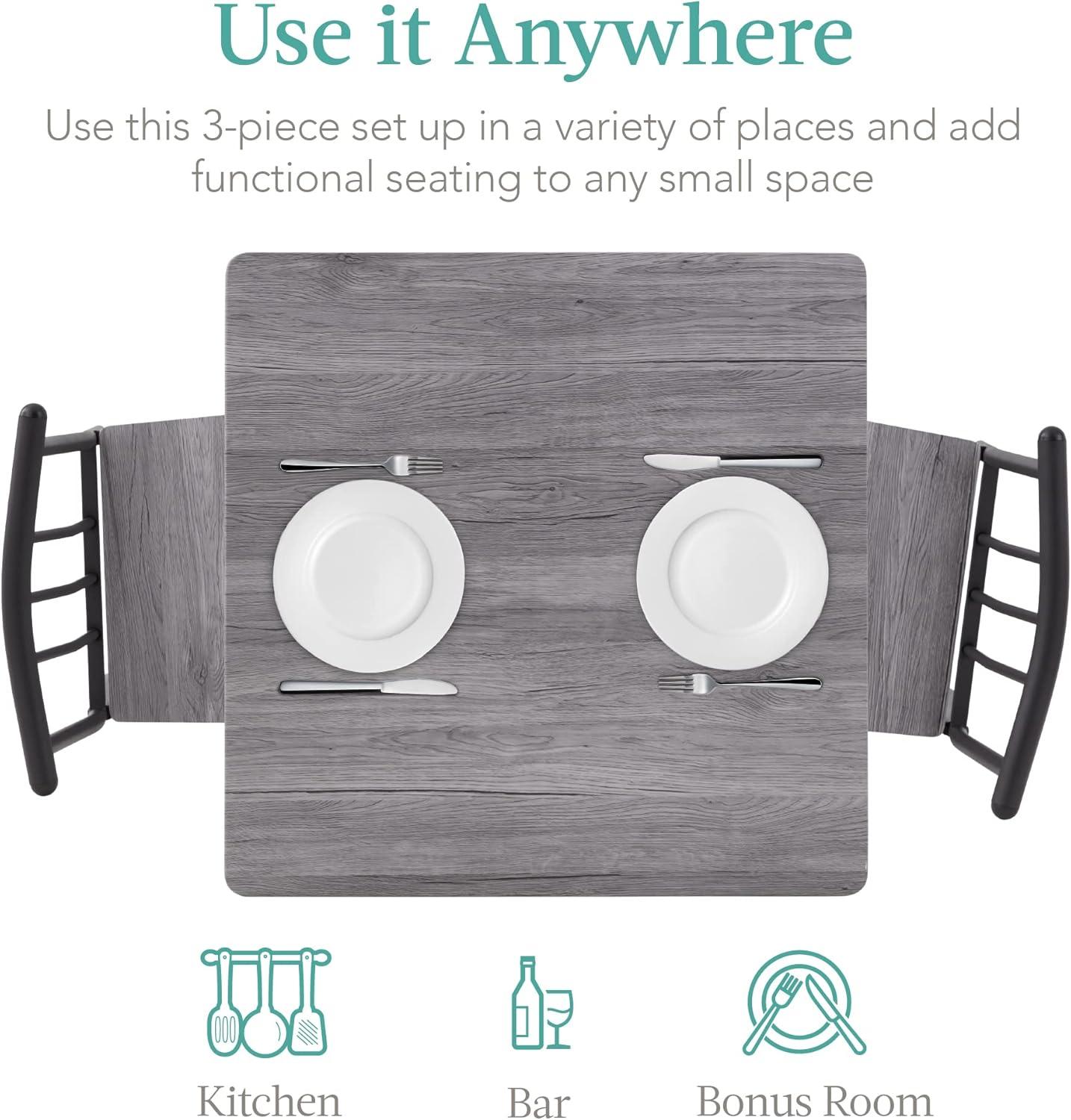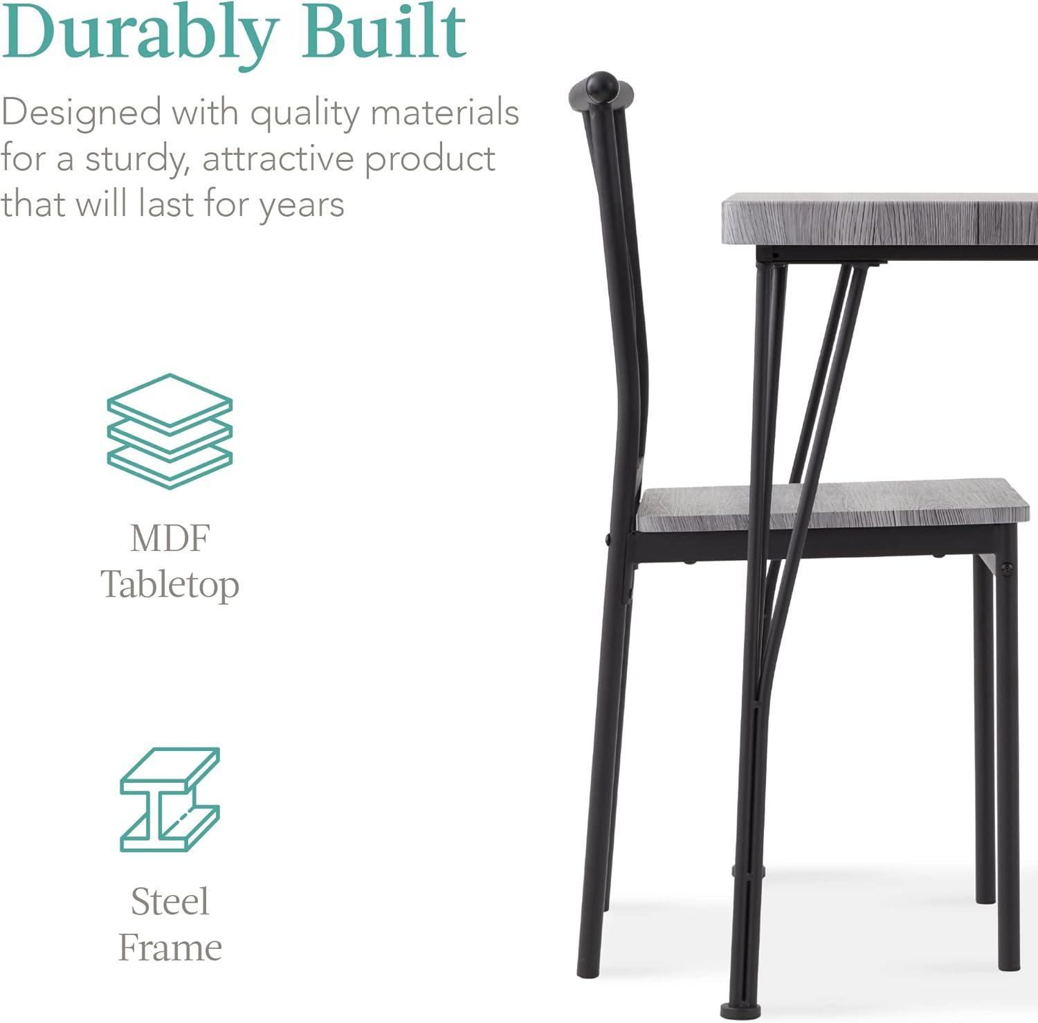 Best Choice Products 3-Piece Dining Set Modern Dining Table Set, Metal and Wood Square Dining Table for Kitchen, Dining Room, Dinette, Breakfast Nook w/ 2 Chairs – Gray(Grey)