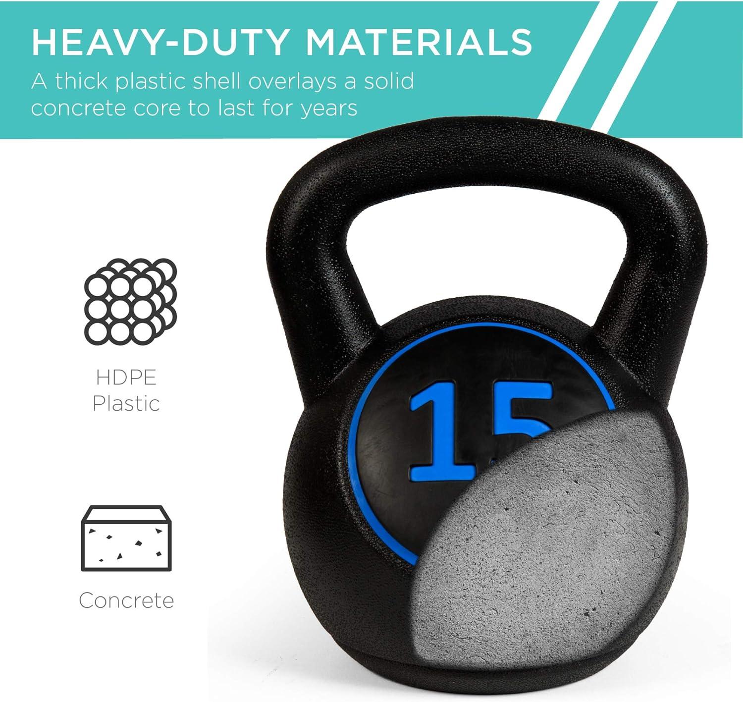 Best Choice Products 3-Piece Kettlebell Set with Storage Rack, HDPE Coated Exercise Fitness Concrete Weights for Home Gym, Strength Training, HIIT Workout 5lb, 10lb, 15lb