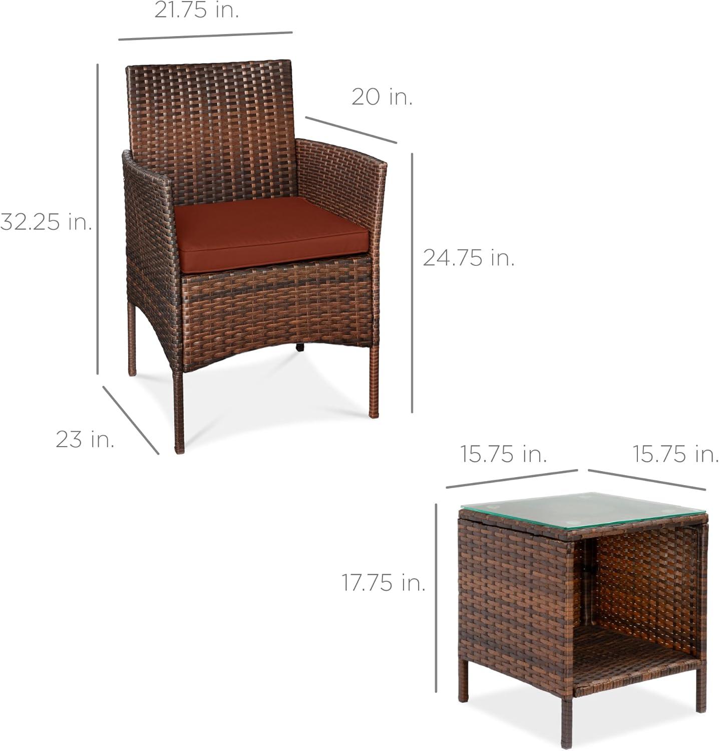 Best Choice Products 3-Piece Outdoor Wicker Conversation Bistro Set, Space Saving Patio Furniture for Garden w/Side Table - Gray/Navy(Brown/Dark Rust)