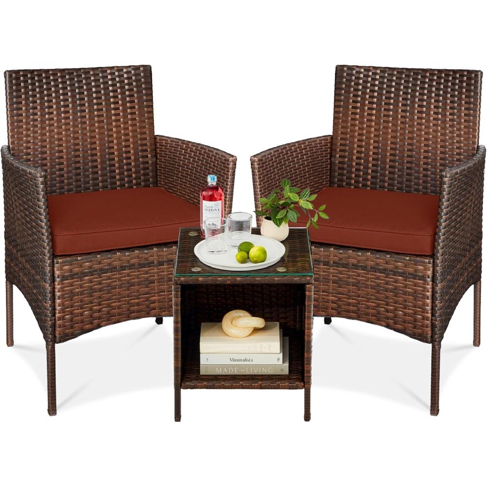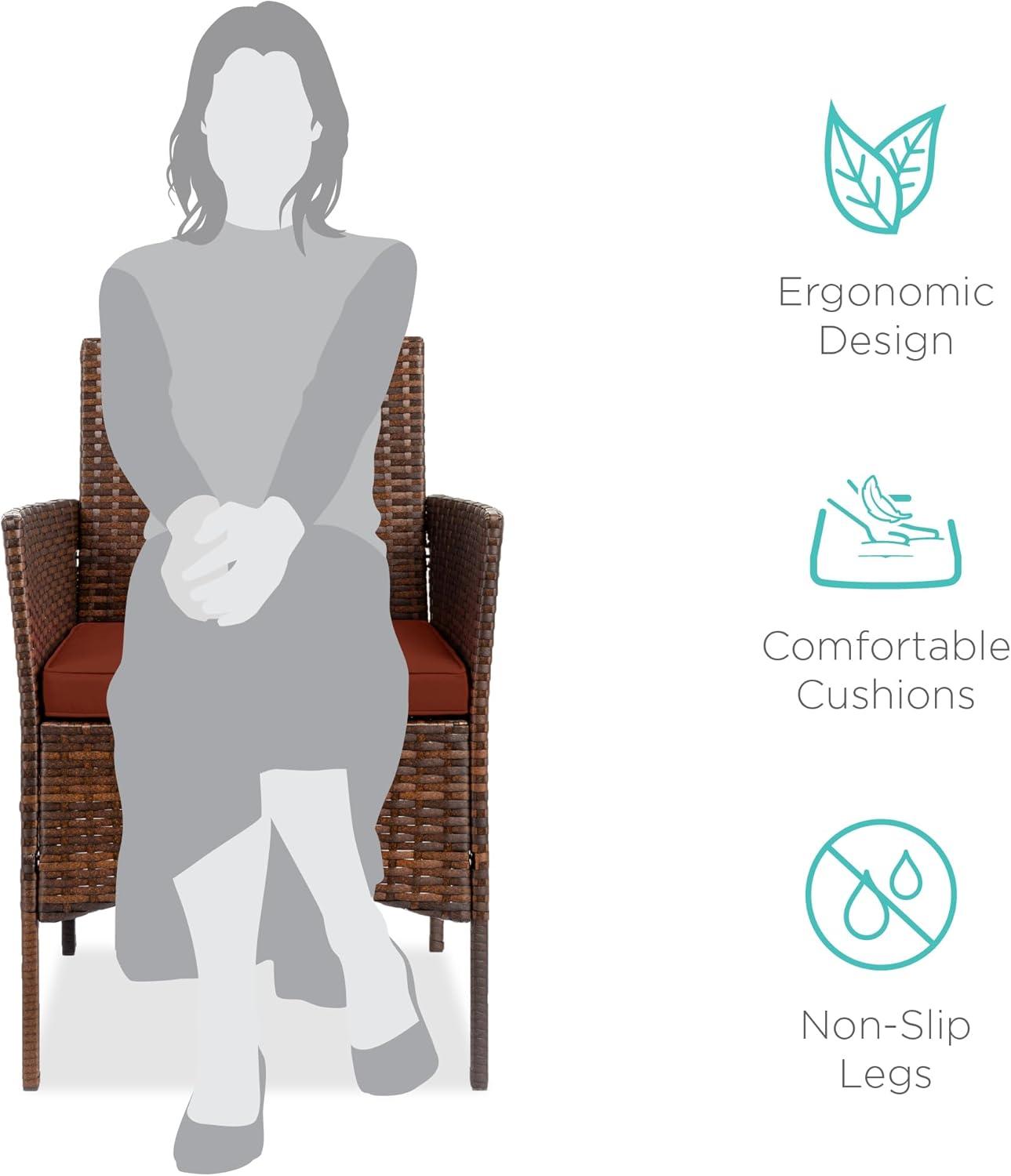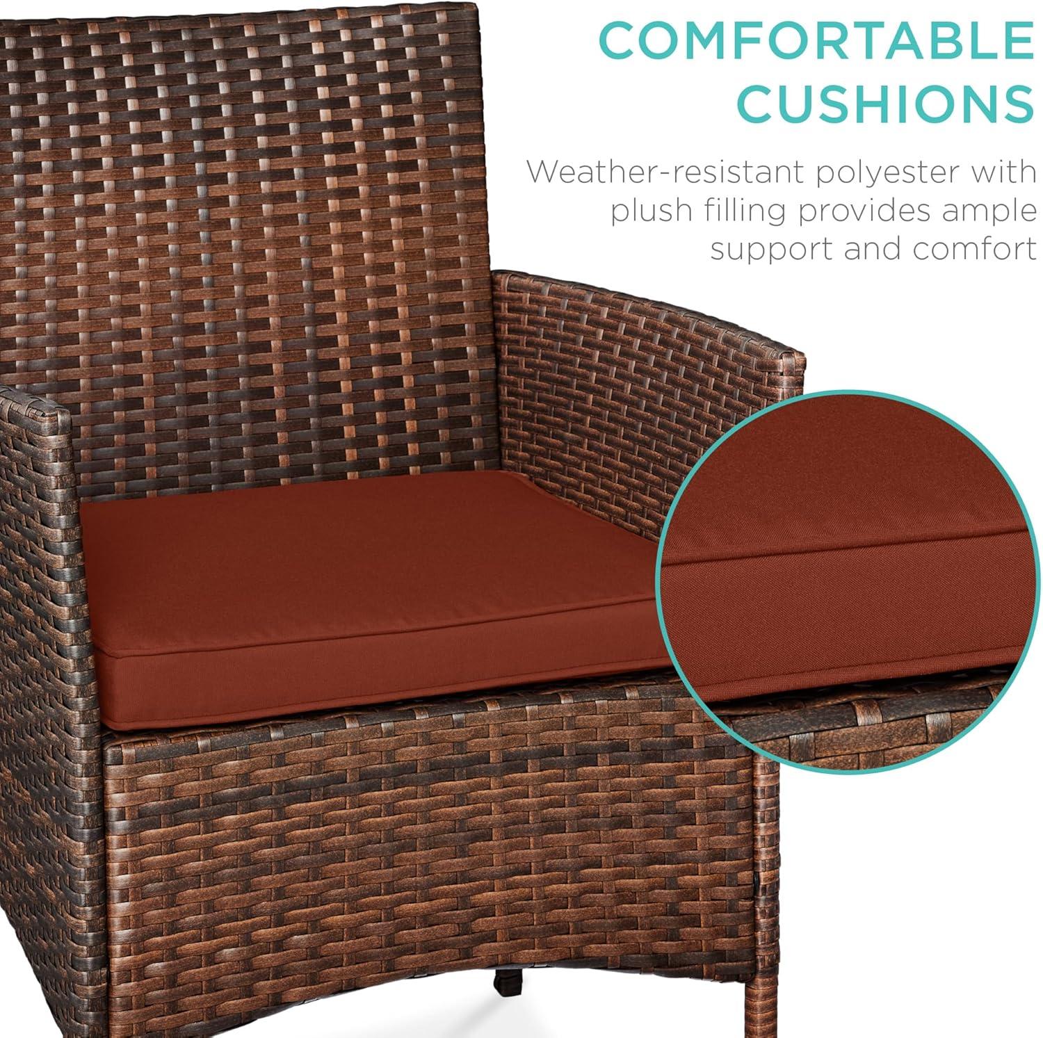 Best Choice Products 3-Piece Outdoor Wicker Conversation Bistro Set, Space Saving Patio Furniture for Garden w/Side Table – Gray/Navy(Brown/Dark Rust)